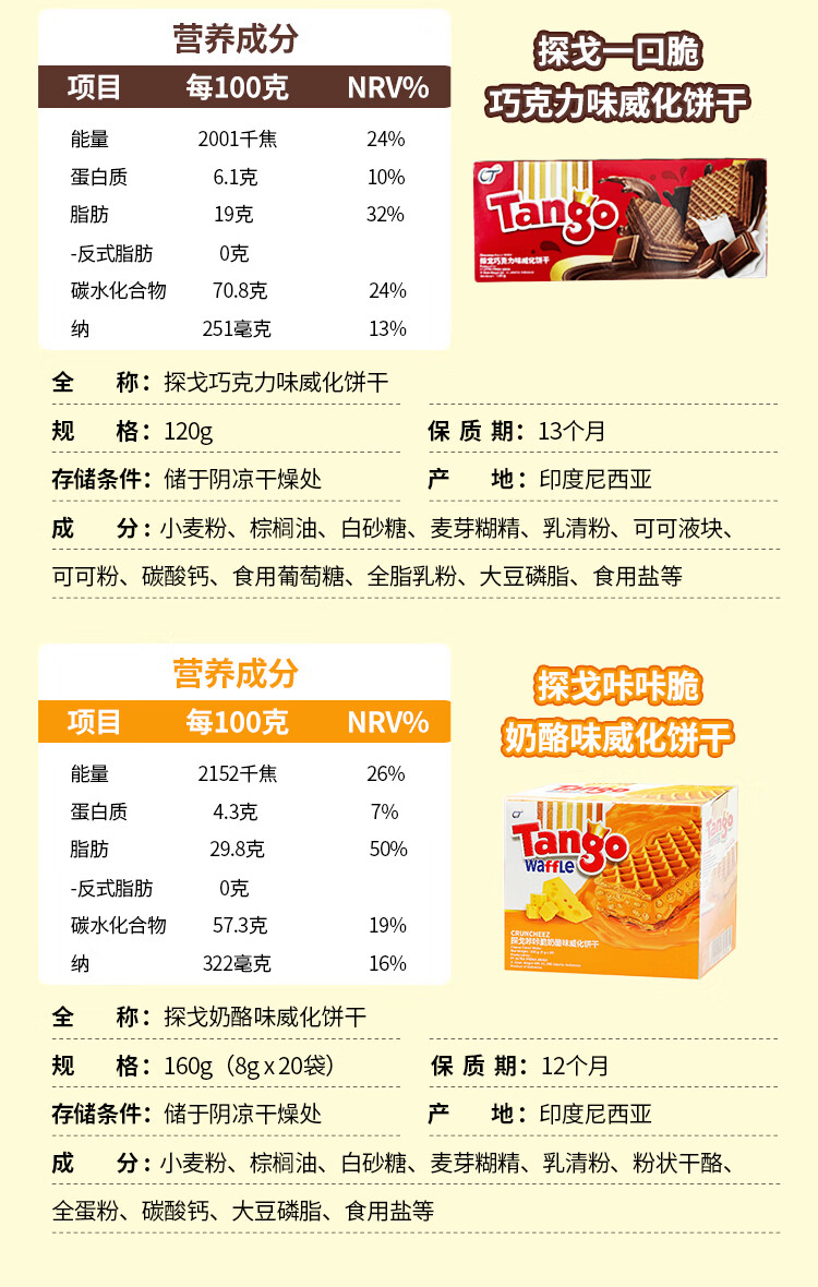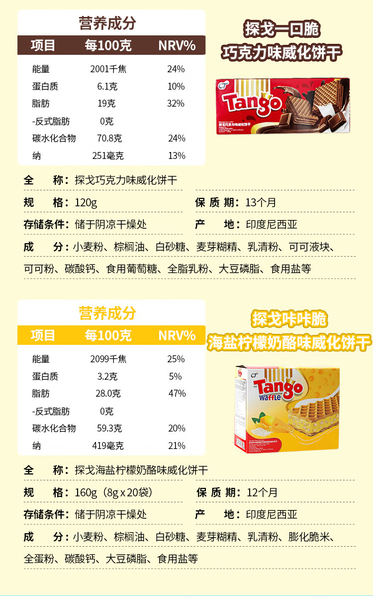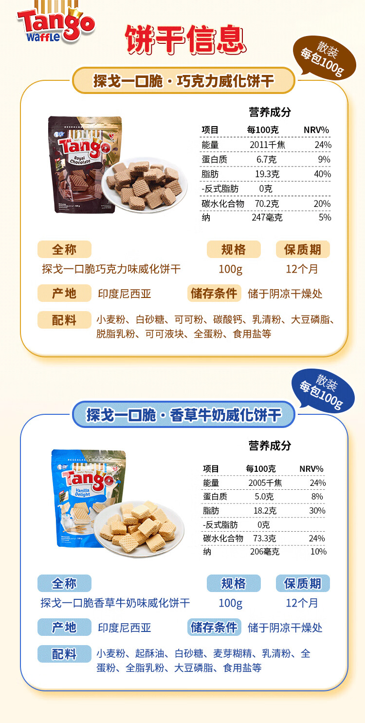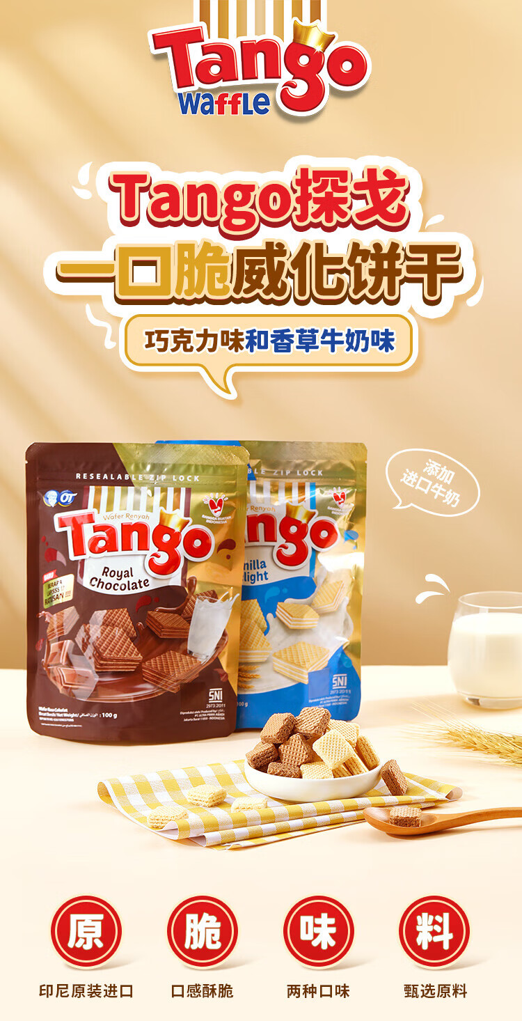 探戈印尼进口威化饼干早餐饼干午后点心100g 巧克力味 100g*2袋200g