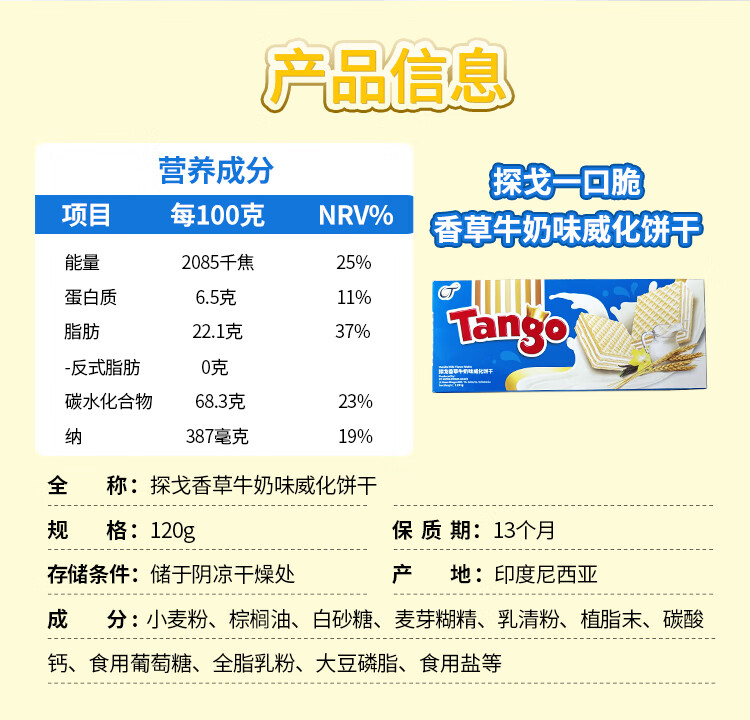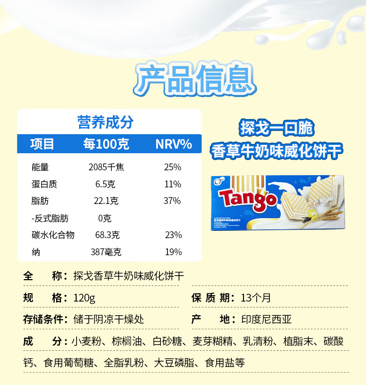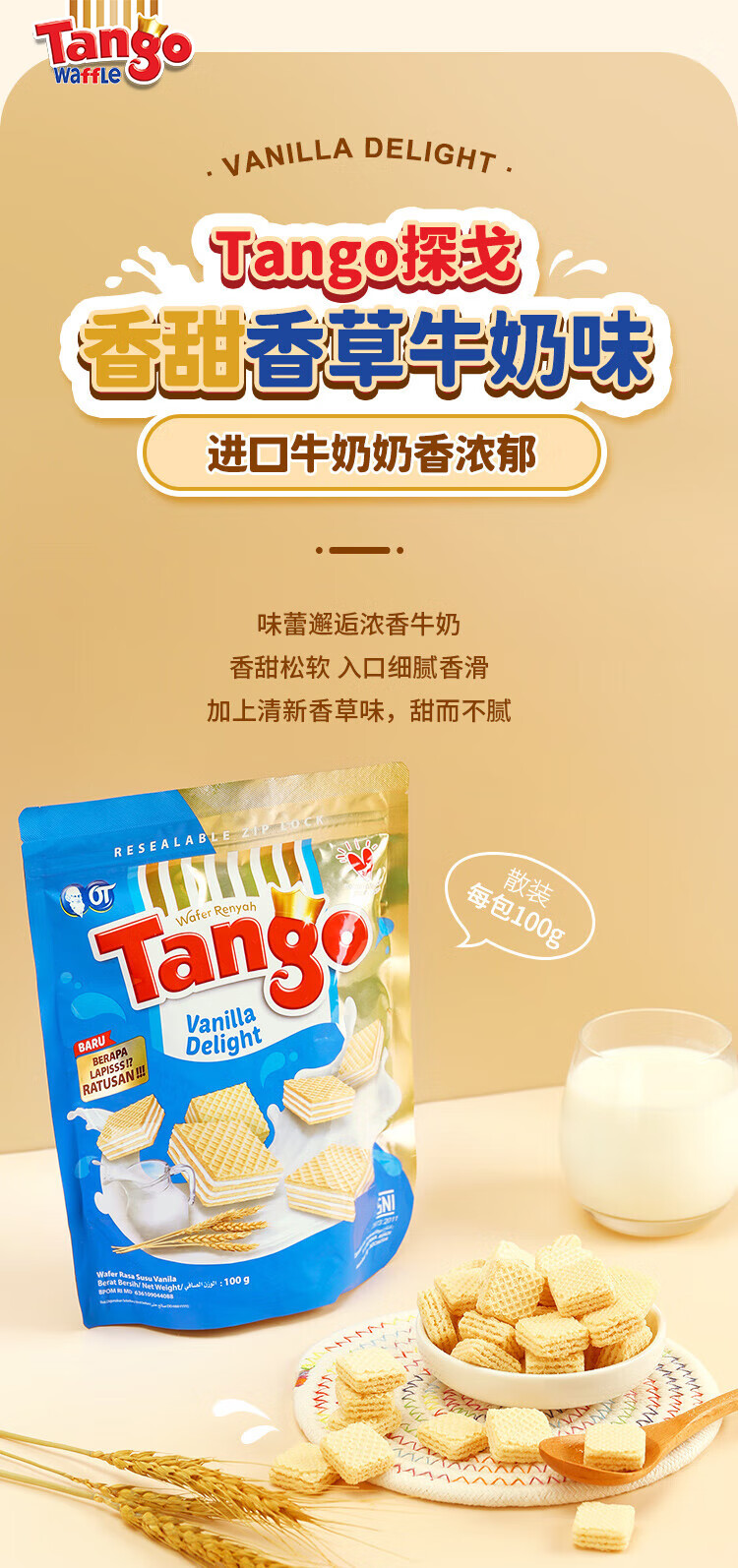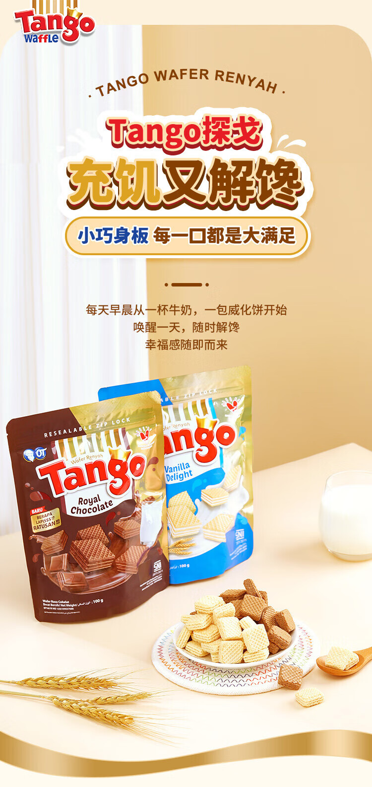 探戈印尼进口威化饼干早餐饼干午后点心100g 巧克力味 100g*2袋200g