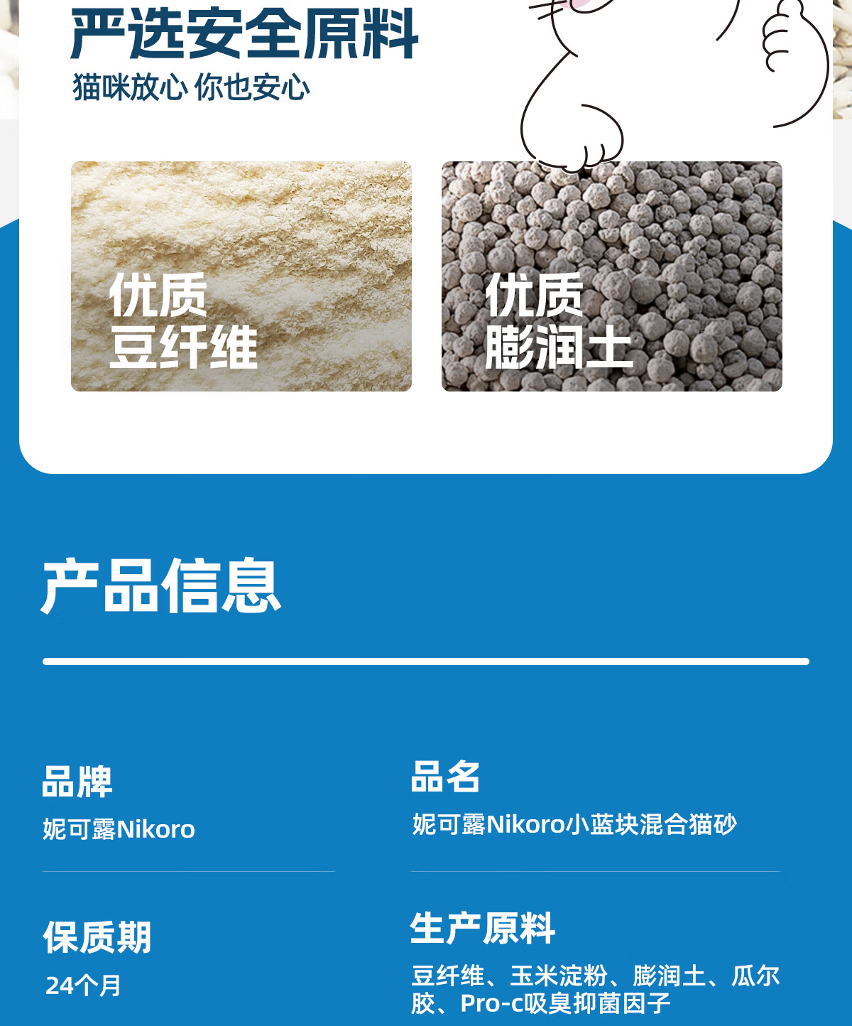 妮可露Nikoro经典小蓝块混合猫砂豆腐砂膨润土猫砂可冲厕3.6kg*4袋