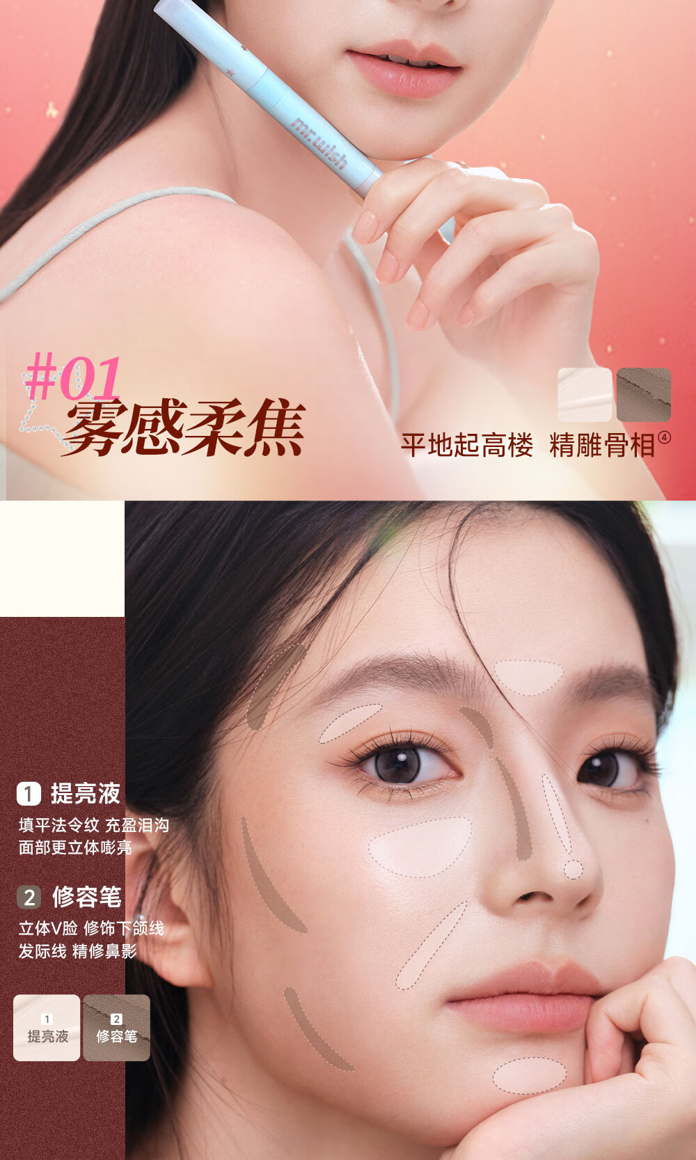 心愿先生多用棒腮红玩色眼影修容修容提亮细腻提亮送女友新年礼物 雾感柔焦(01)