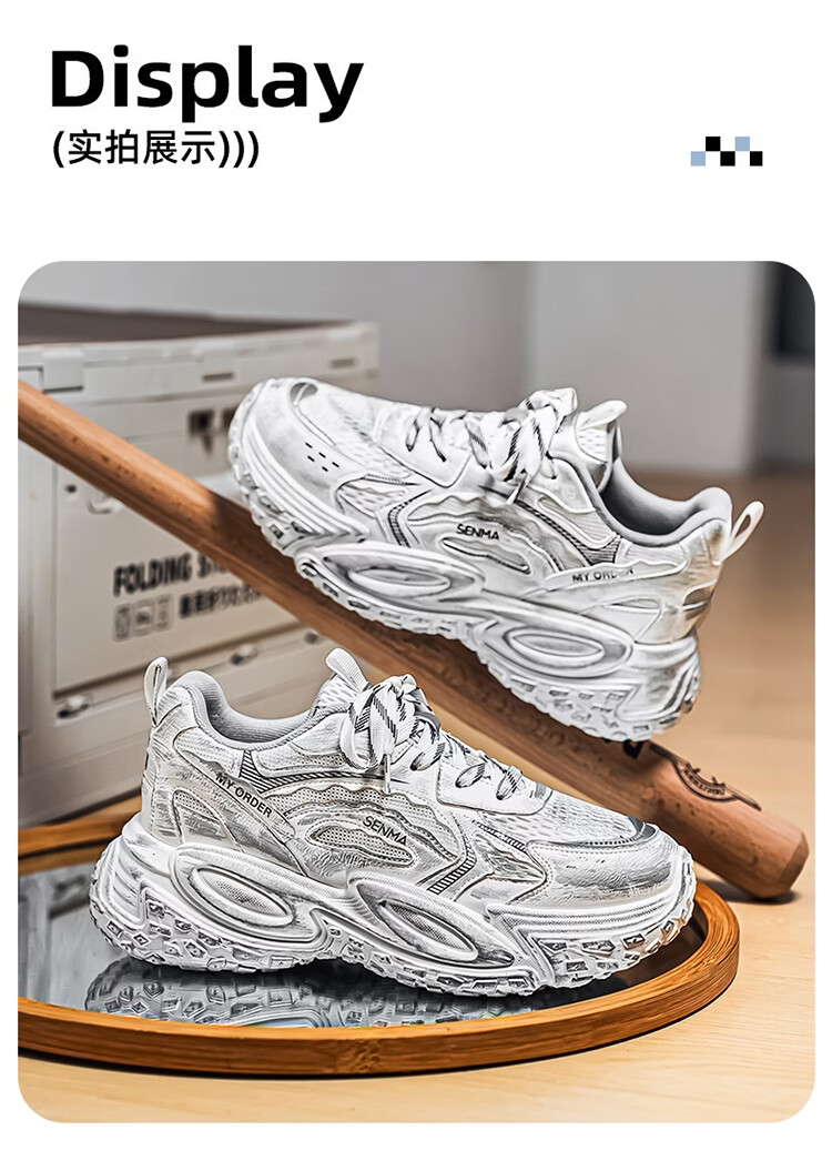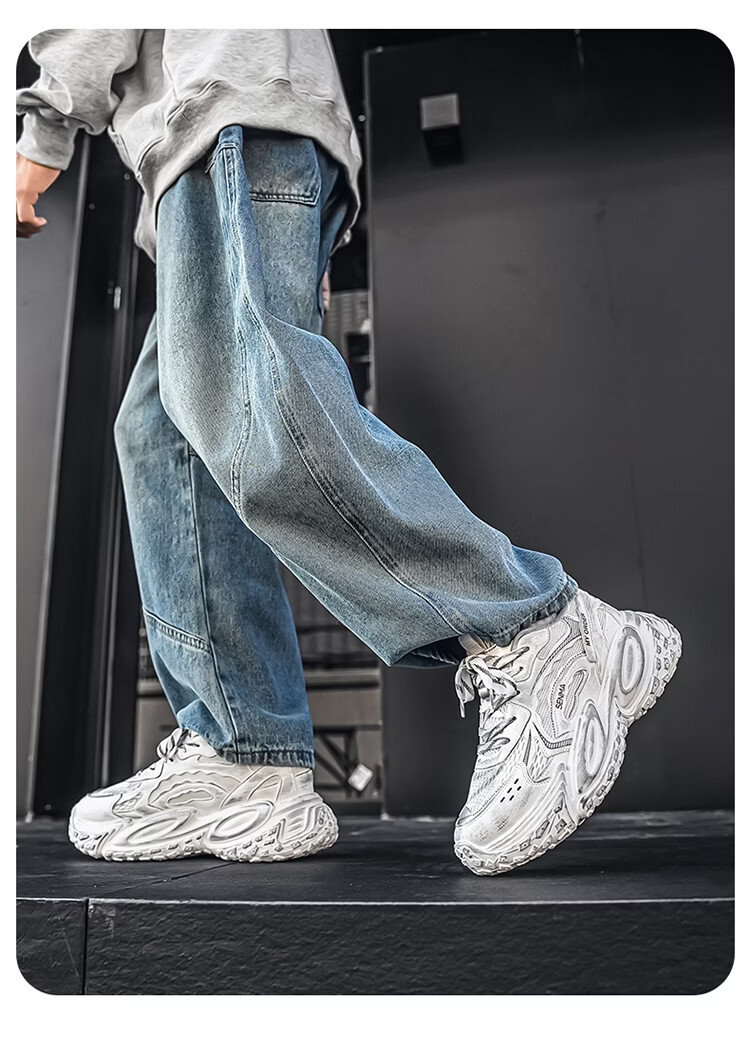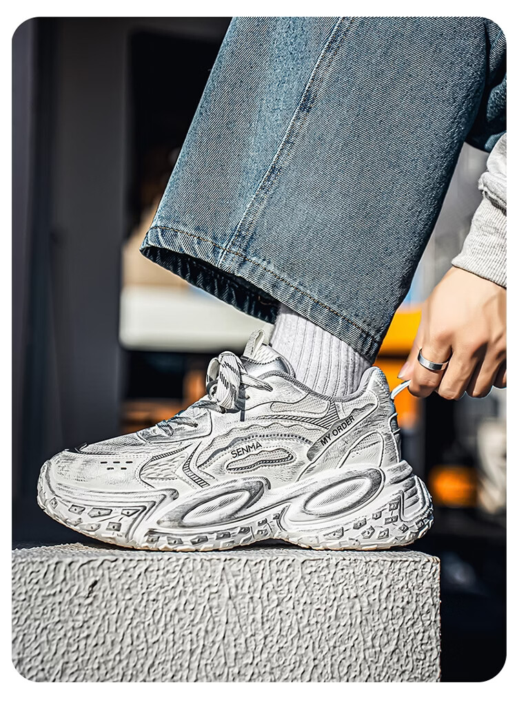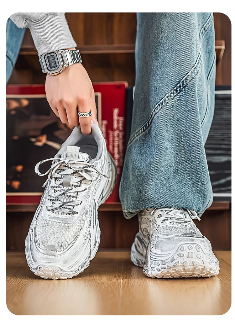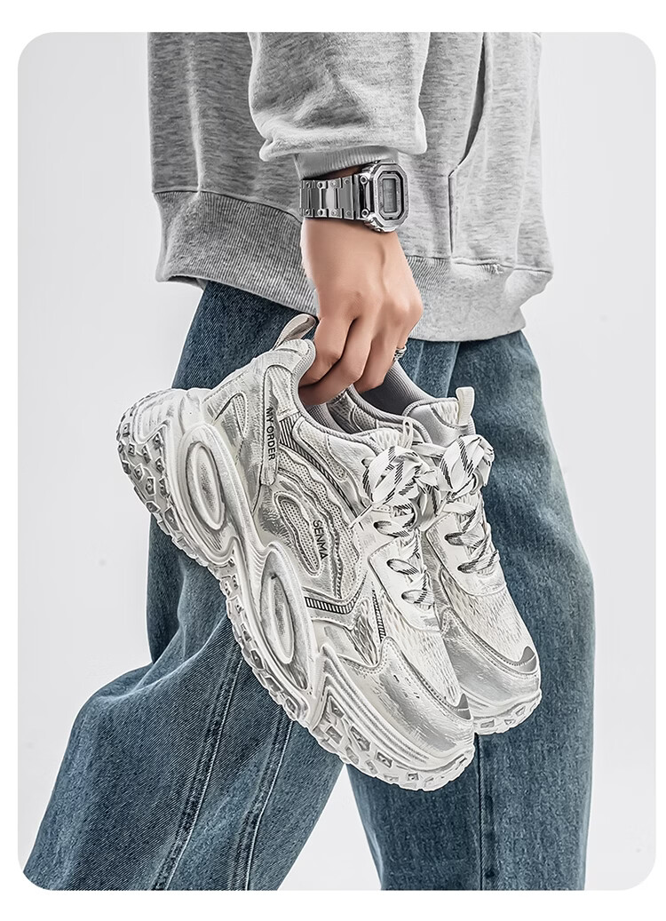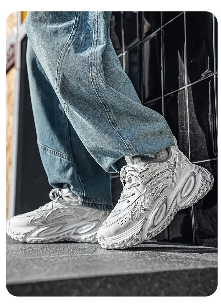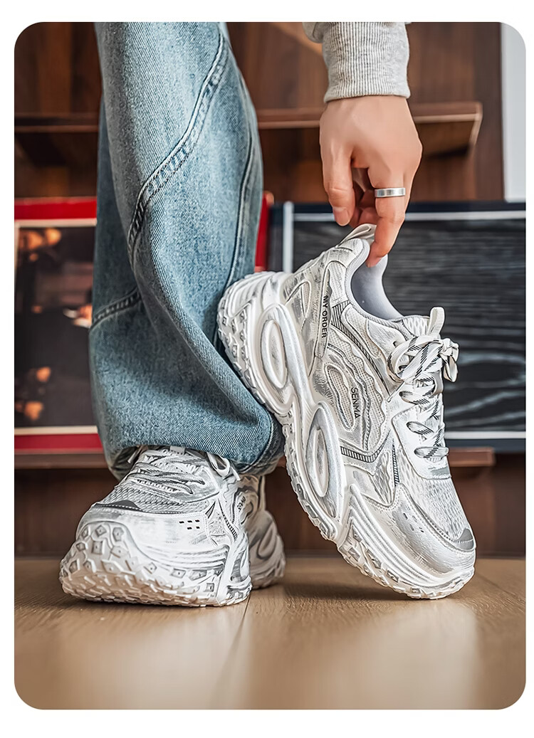 森馬男鞋2026年春季潮流百搭运动就行男士跑步厚底增网红爆款老爹潮鞋 白银【基础款】 39 标准码数/现货秒发