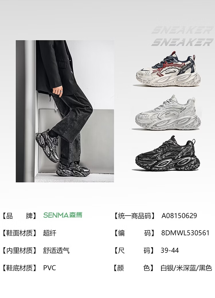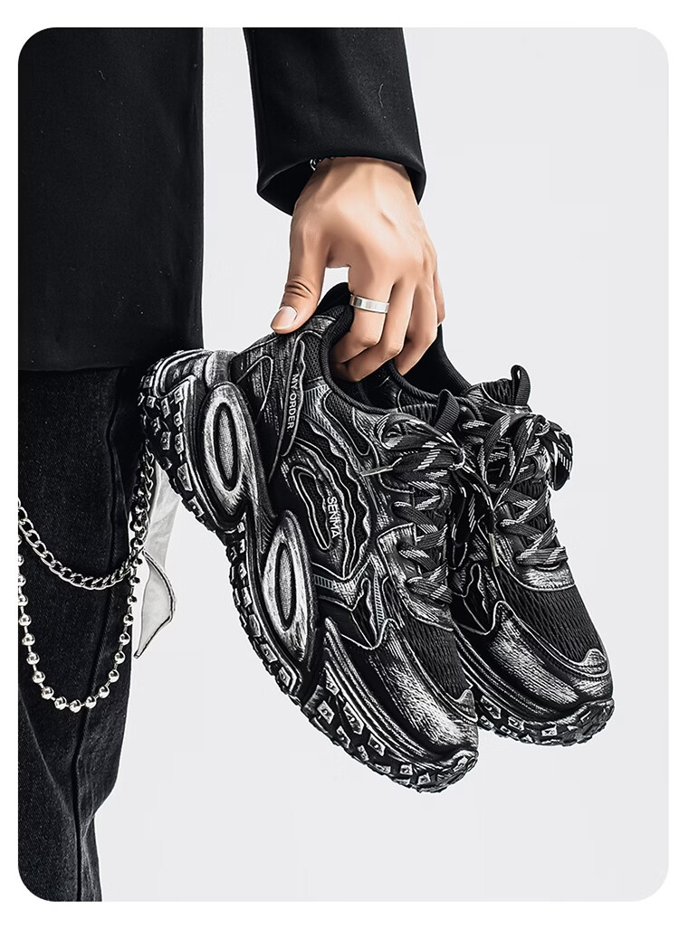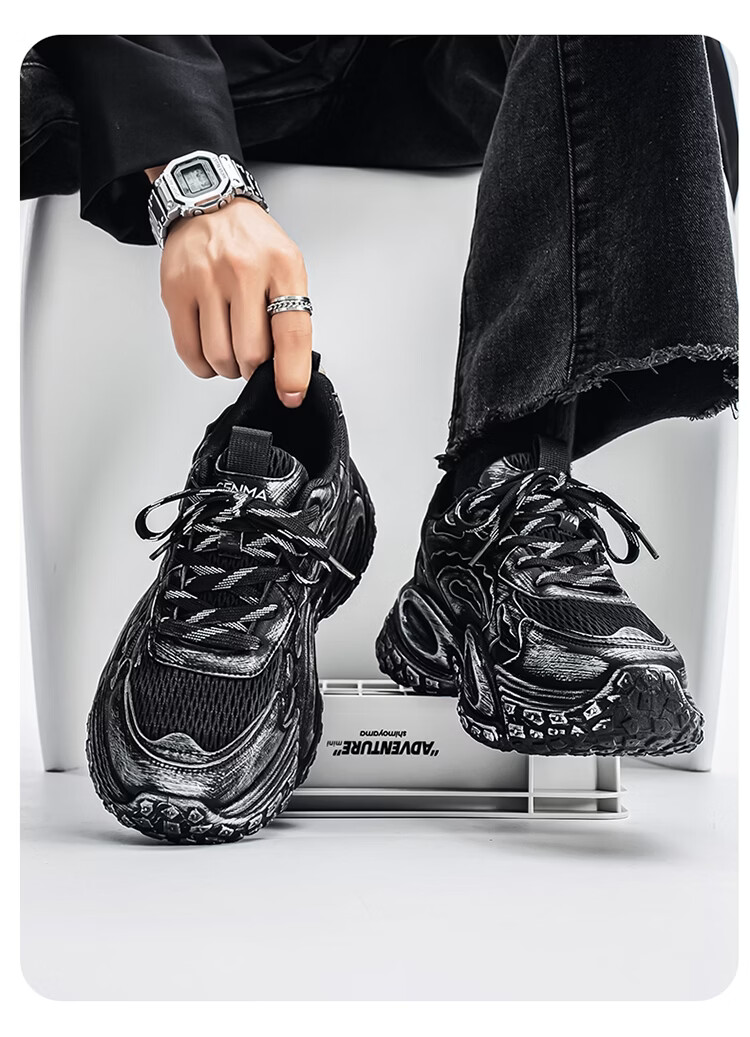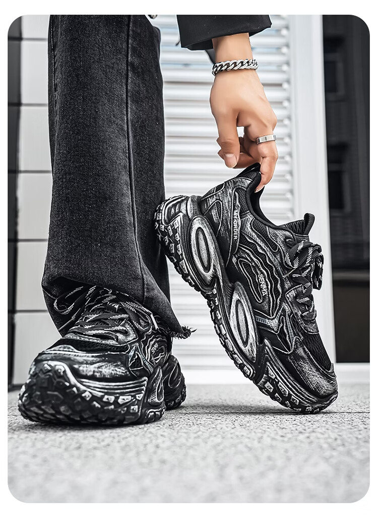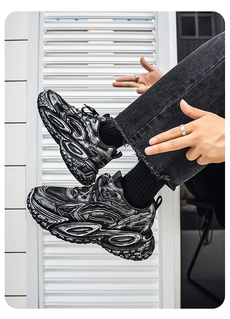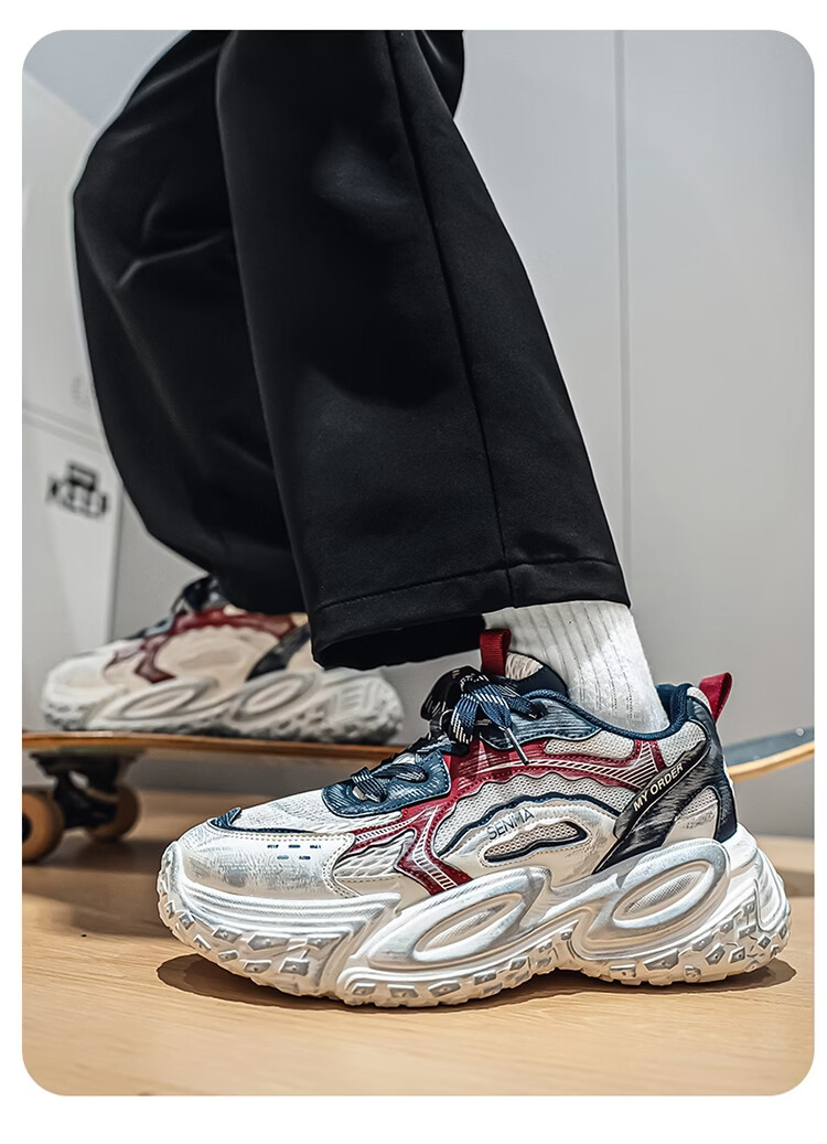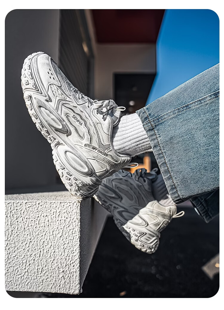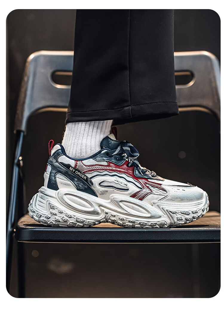 森馬男鞋2026年春季潮流百搭运动就行男士跑步厚底增网红爆款老爹潮鞋 白银【基础款】 39 标准码数/现货秒发