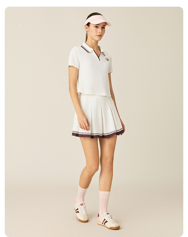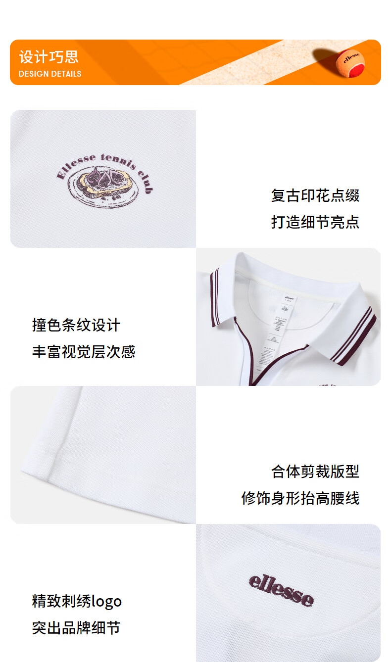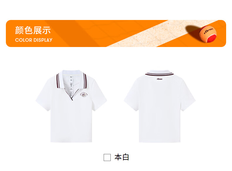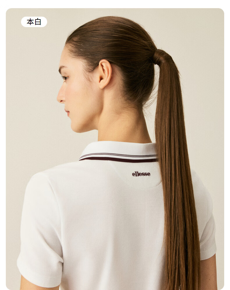 ellesse小贝壳26春新品网球服运动撞色修身复古印花polo短袖女 本白 S