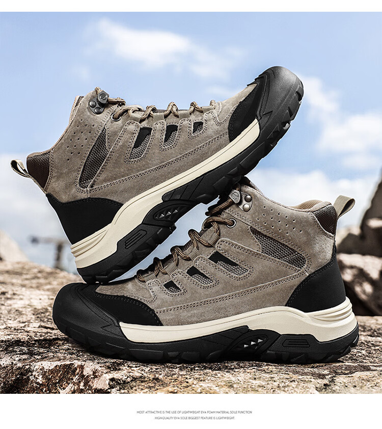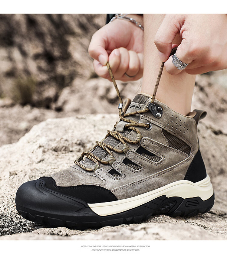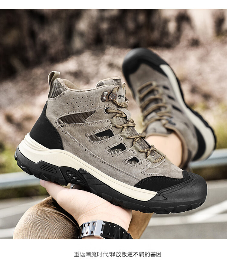 森馬男鞋2026新款春季户外防滑耐磨徒步登山鞋男士厚底防滑休闲老爹鞋 卡其【基础款】 39 标准码数/现货秒发