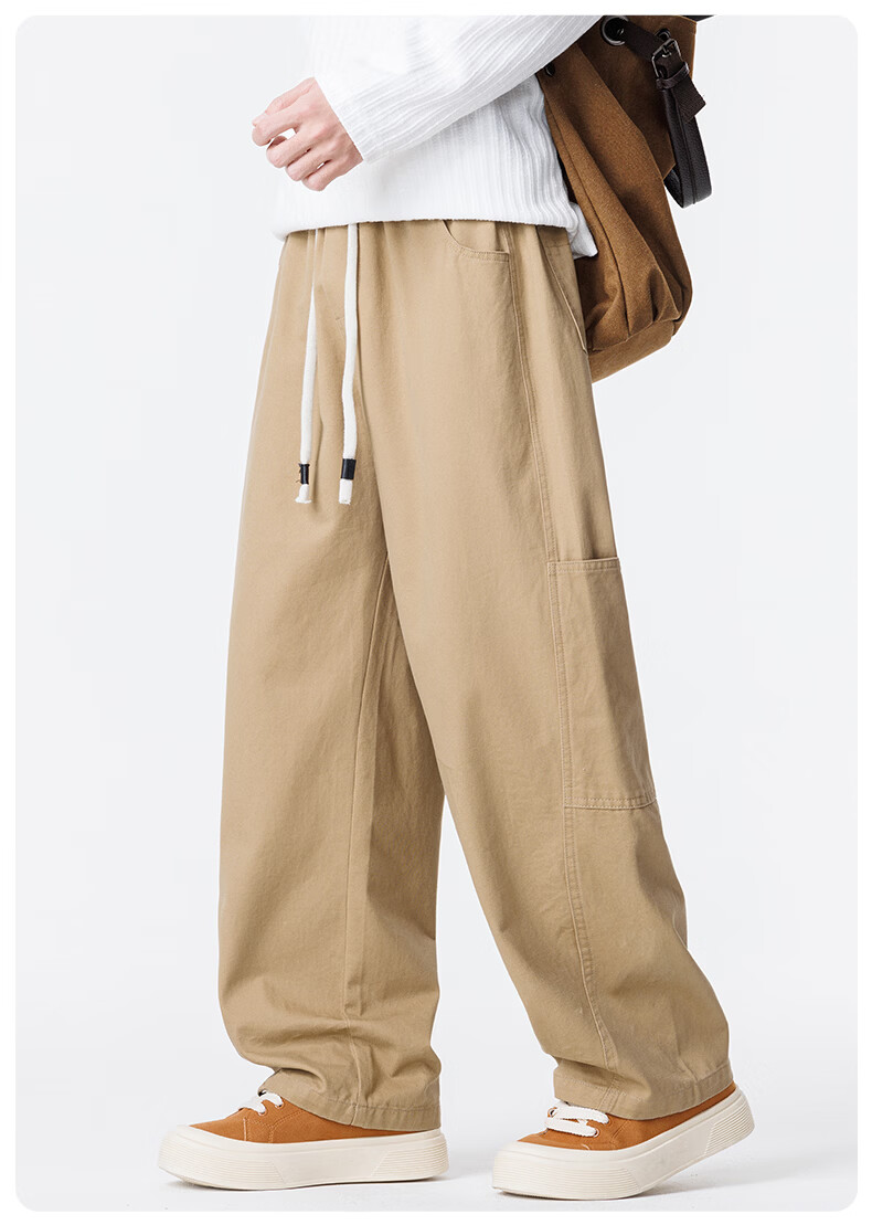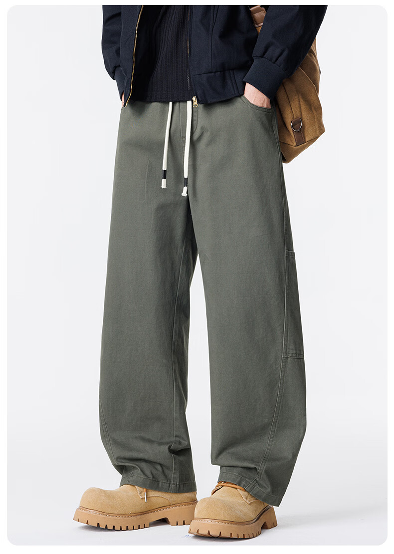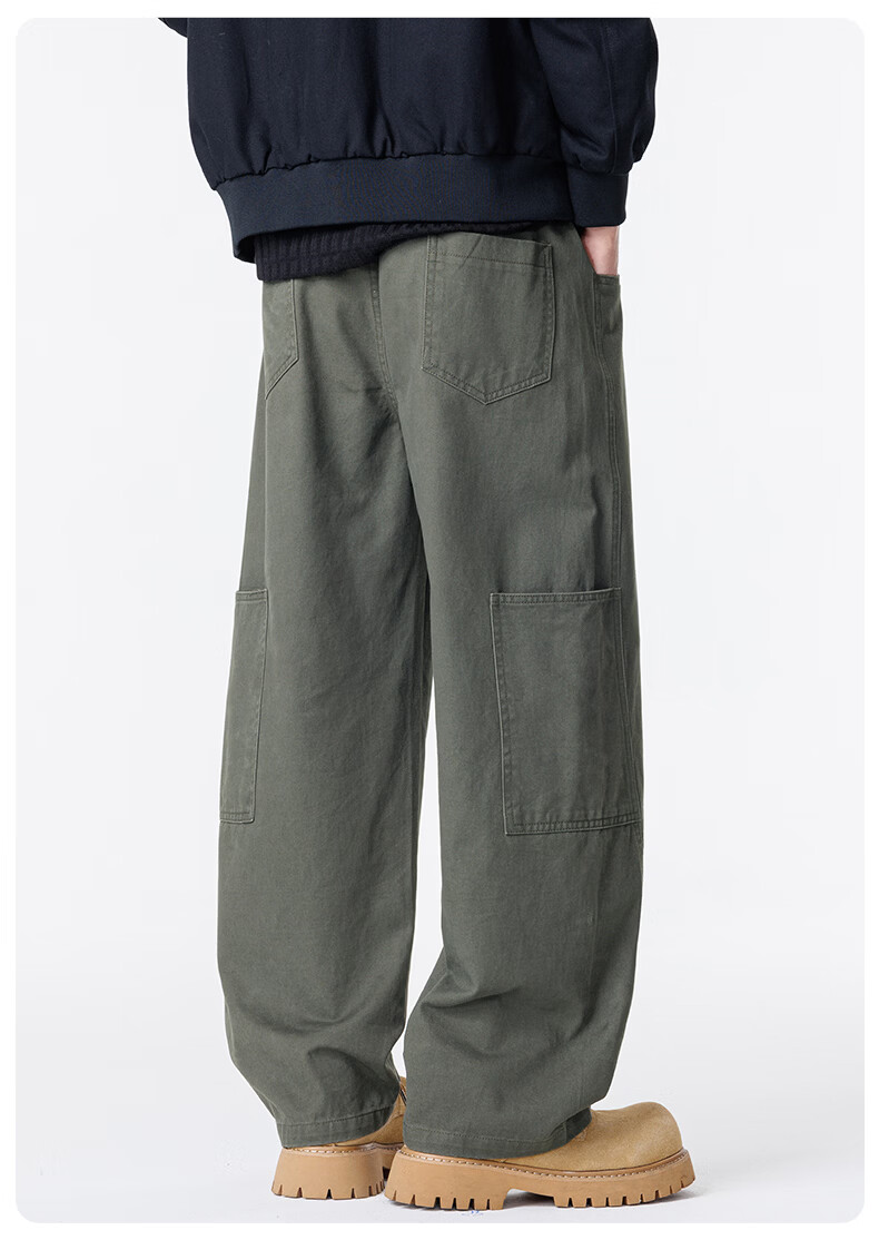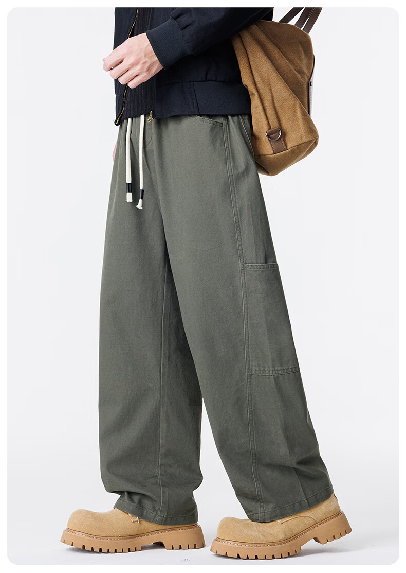 真维斯工装裤男春夏季宽松百搭阔腿休闲裤男新款潮牌纯棉舒适直筒长裤男 军绿 M