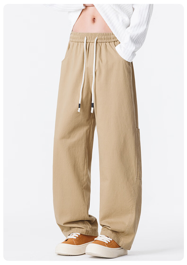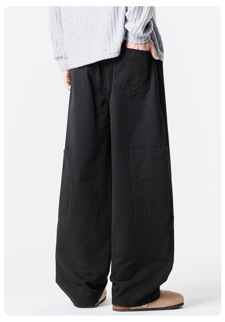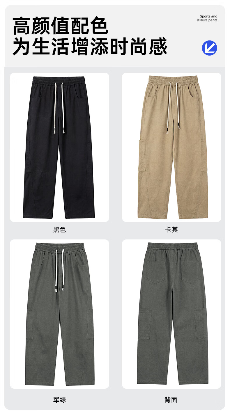 真维斯工装裤男春夏季宽松百搭阔腿休闲裤男新款潮牌纯棉舒适直筒长裤男 军绿 M