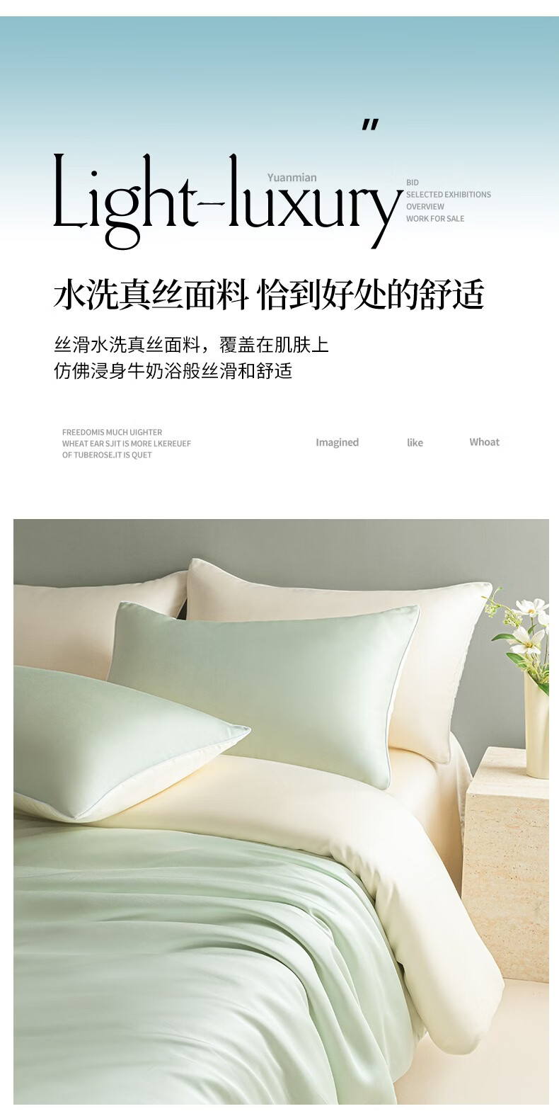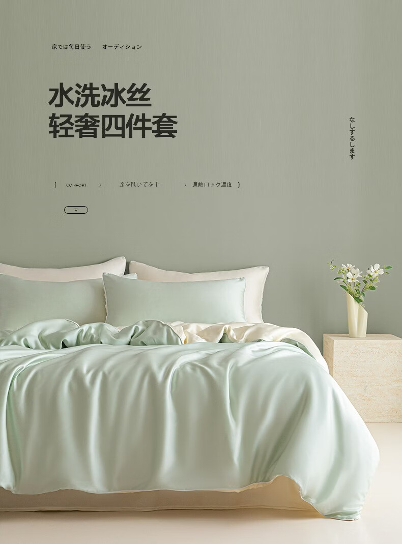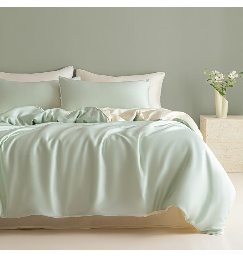 雅鹿水洗真丝床上四件套夏季冰丝轻奢床单笠被套200x230cm凉感三件套 麻绳款-雾霾灰+碧湖兰 【凉而不冰 丝滑裸睡】 1.8m 床单款 四件套-被套180*220cm