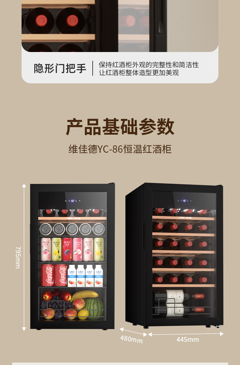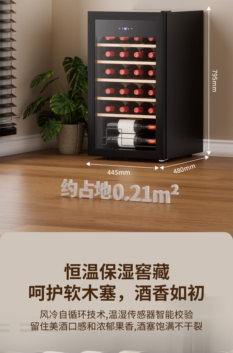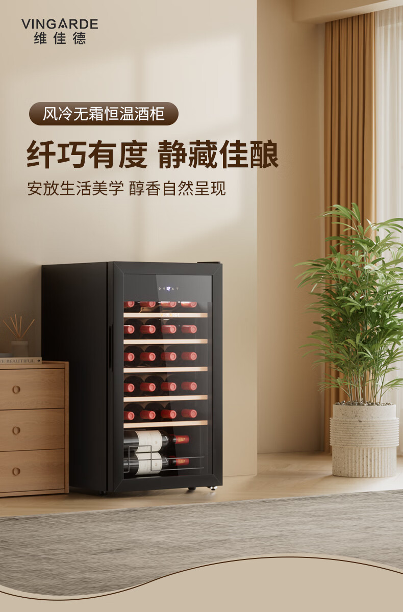 维佳德(VINGARDE)红酒柜恒温酒柜家用客厅办公室多功能葡萄酒冷藏柜小型冰吧冰箱保鲜柜茶叶柜风冷无霜压缩机YC-86 红酒柜【一级能效|风冷无霜】5榉木层架 25瓶