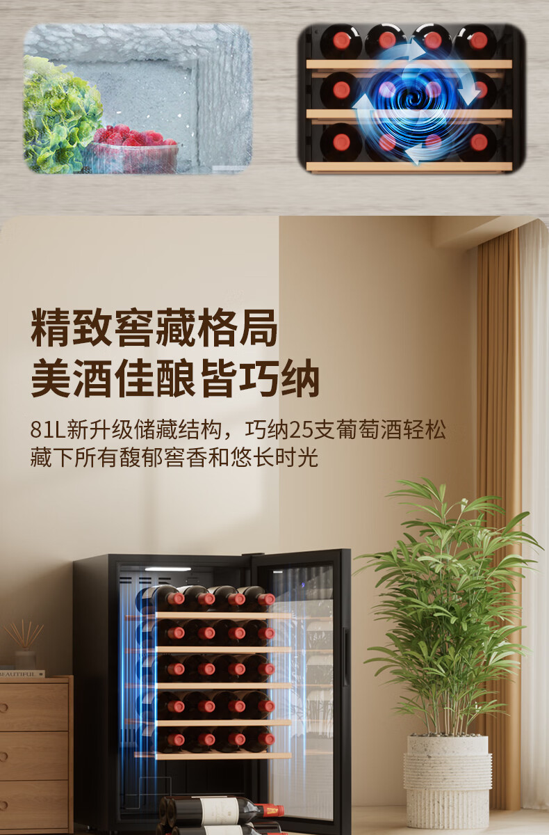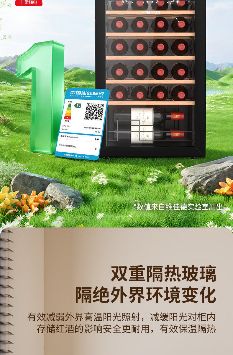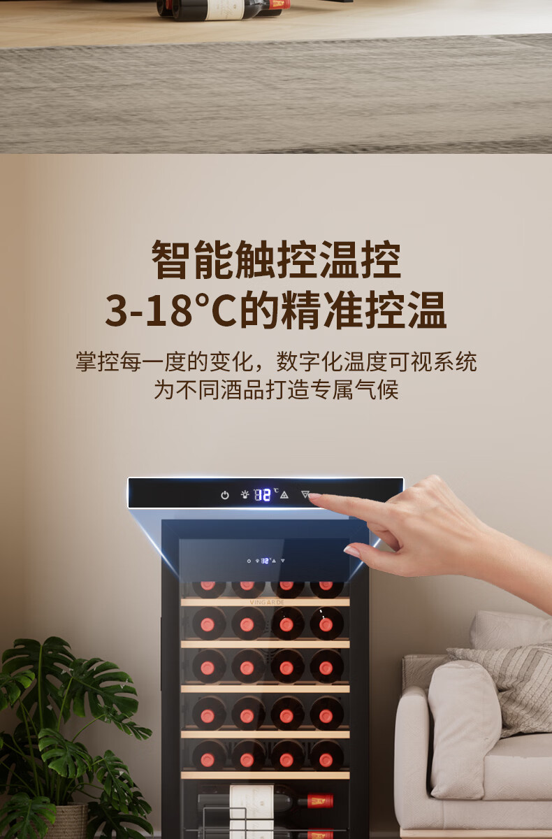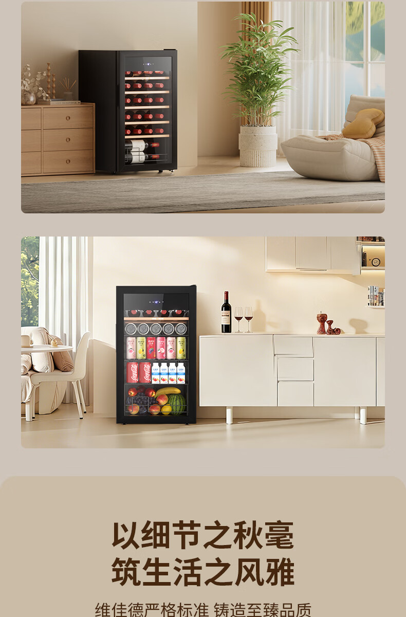 维佳德(VINGARDE)红酒柜恒温酒柜家用客厅办公室多功能葡萄酒冷藏柜小型冰吧冰箱保鲜柜茶叶柜风冷无霜压缩机YC-86 红酒柜【一级能效|风冷无霜】5榉木层架 25瓶