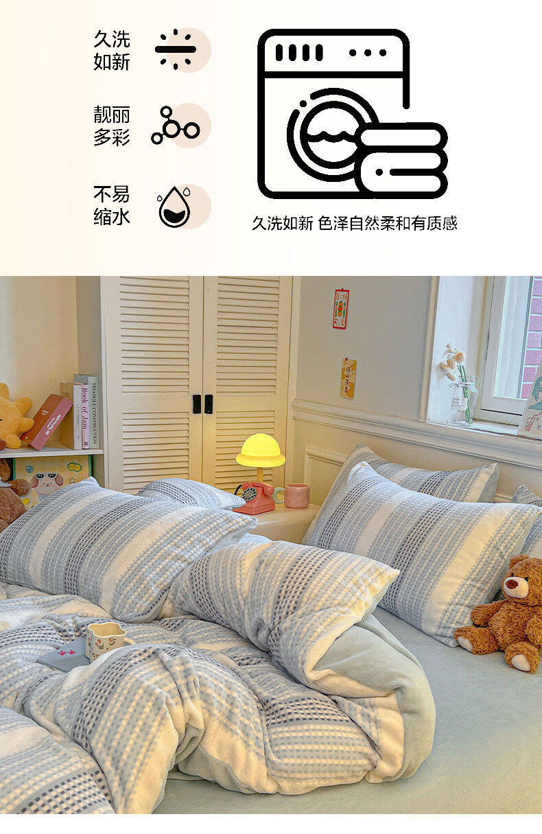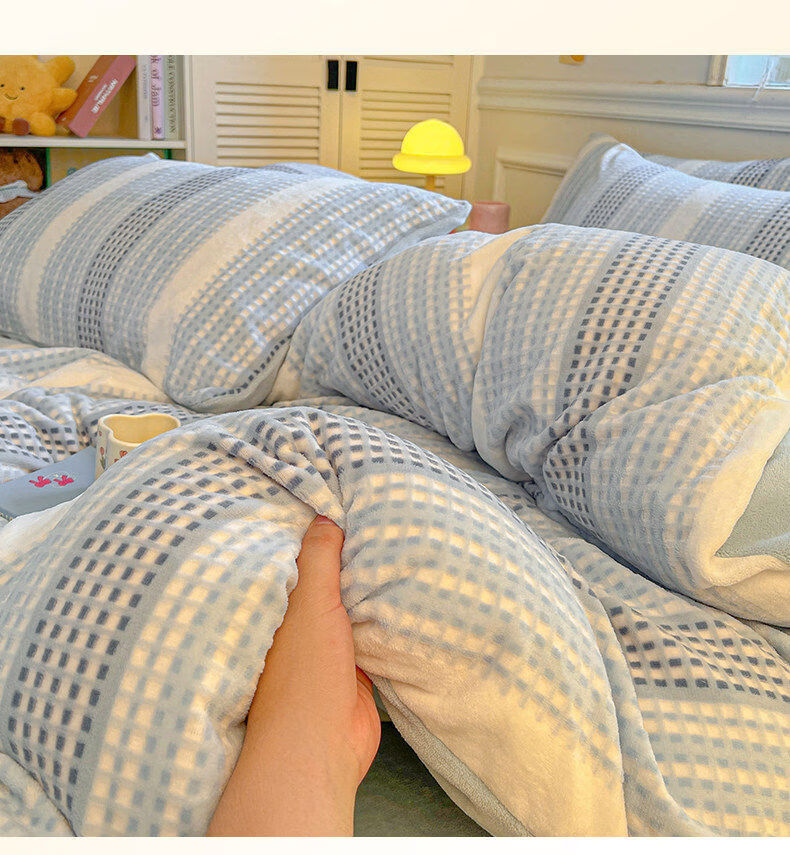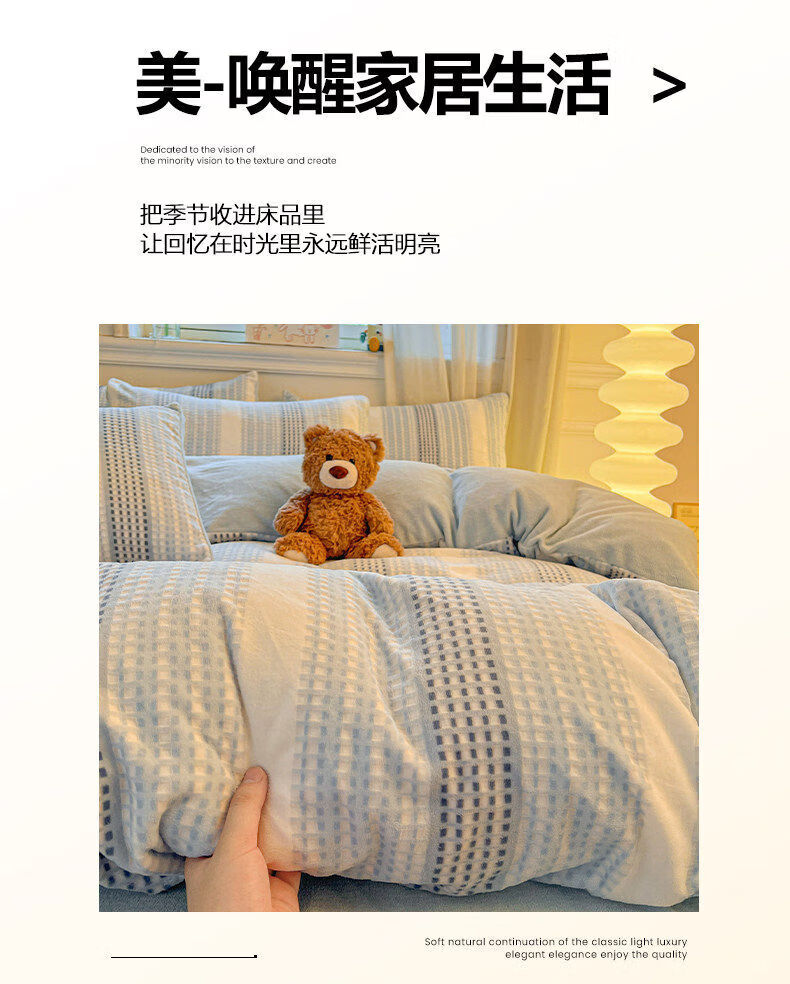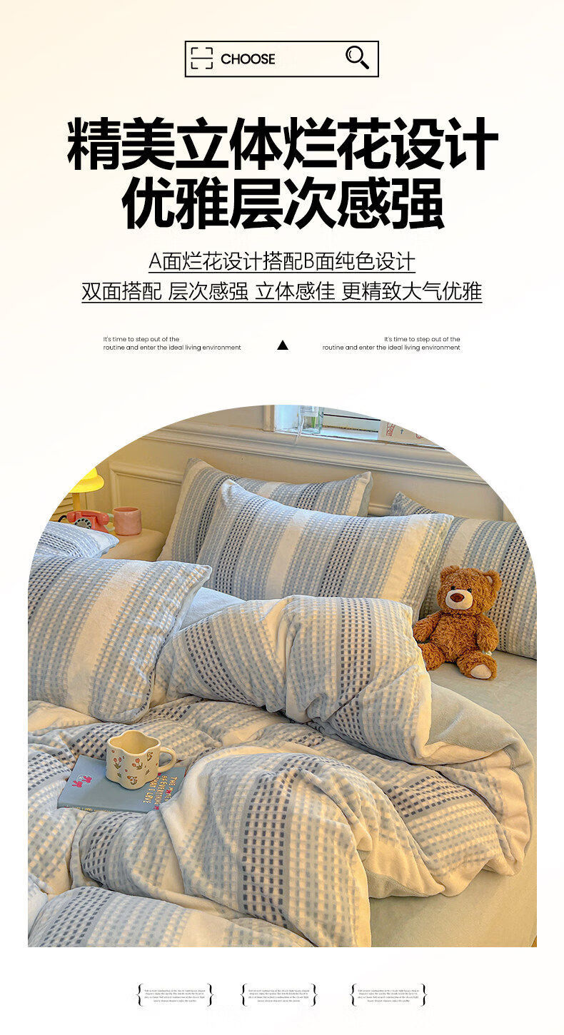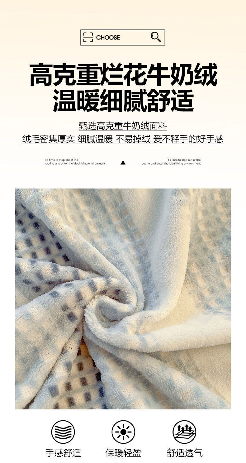 猫人(MiiOW)冬季保暖雕花牛奶绒床上四件套珊瑚绒家用床单被套罩床品三件套 暖格-咖【加厚牛奶绒丨保暖裸睡】 1.2m 床单款 三件套-150*200cm被套