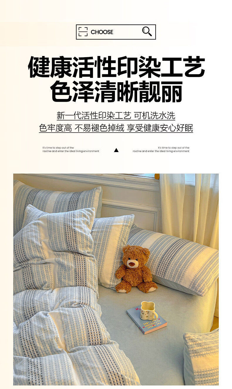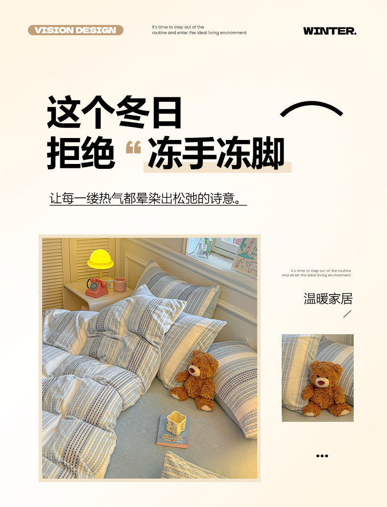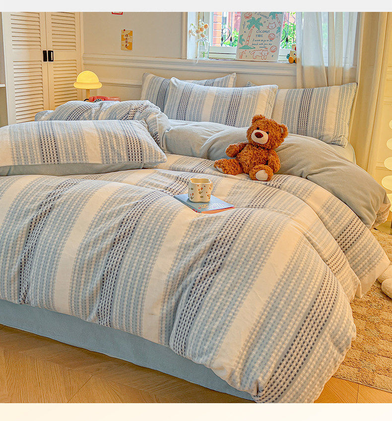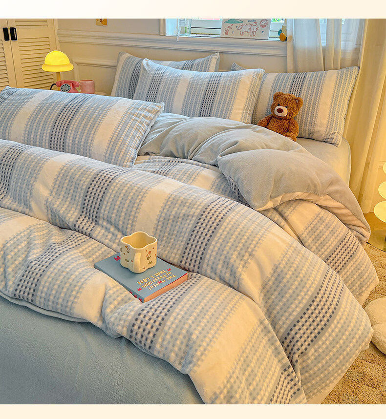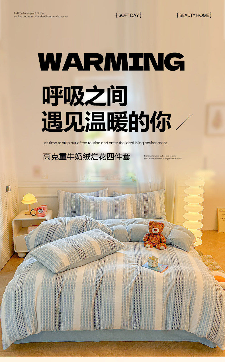 猫人(MiiOW)冬季保暖雕花牛奶绒床上四件套珊瑚绒家用床单被套罩床品三件套 暖格-咖【加厚牛奶绒丨保暖裸睡】 1.2m 床单款 三件套-150*200cm被套