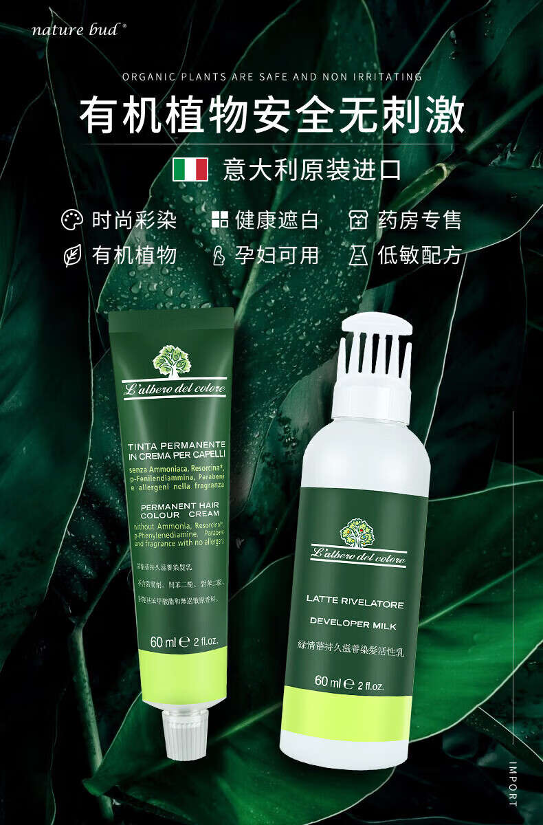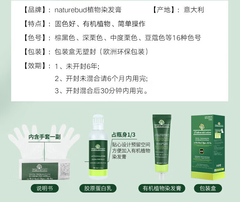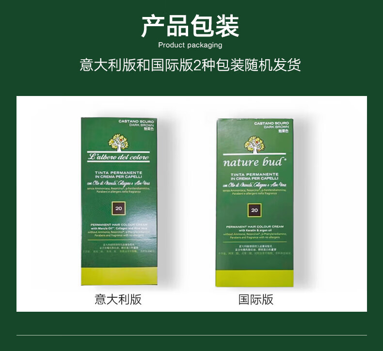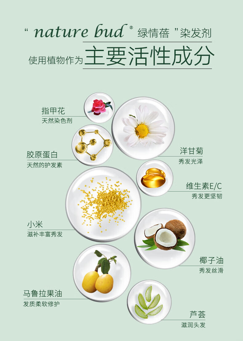 nature bud染发膏健康有机植物女孕妇可用无氨护发绿情蓓染发剂20#深栗色