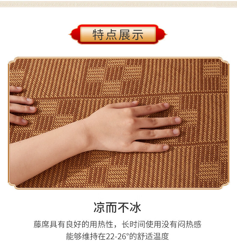 纤苏新款坐垫椅子垫中式凳子座垫四季透气加厚屁股垫子办公室专用椅垫 竹席坐垫(茶红色) 40X40CM