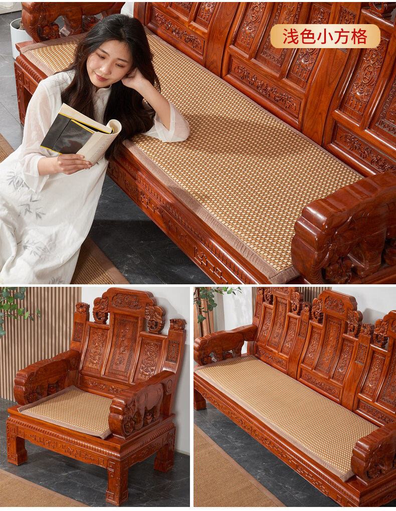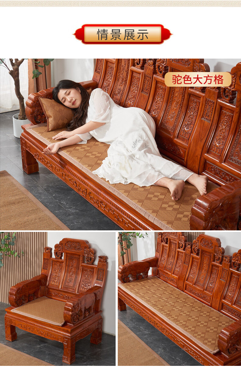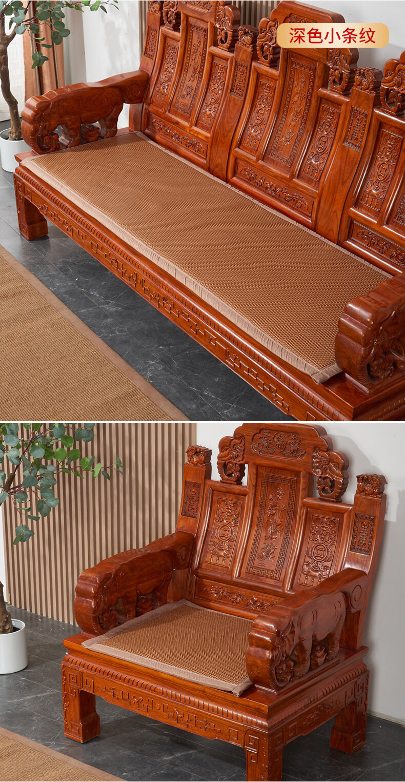 正圣夏季凉席沙发垫四季通用防滑2026年新款红木实木沙发坐垫老式椅垫 锦绣红棕(3cm海绵) 三人座50*170cm
