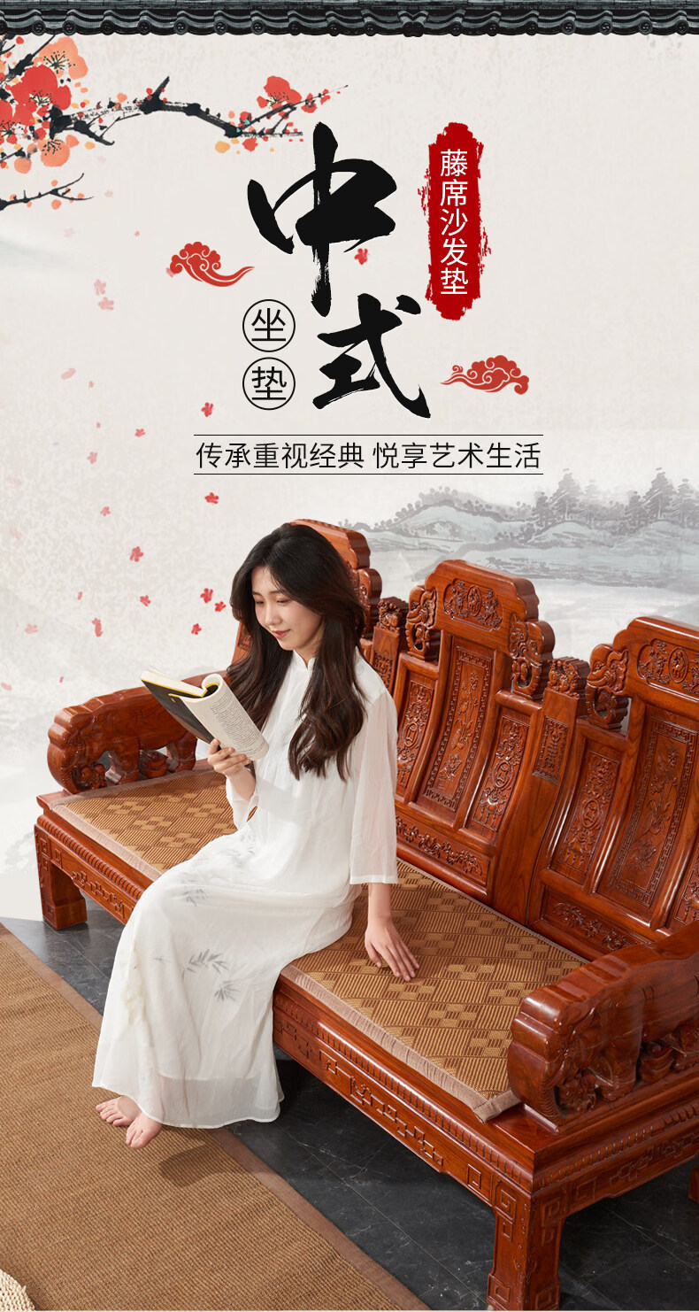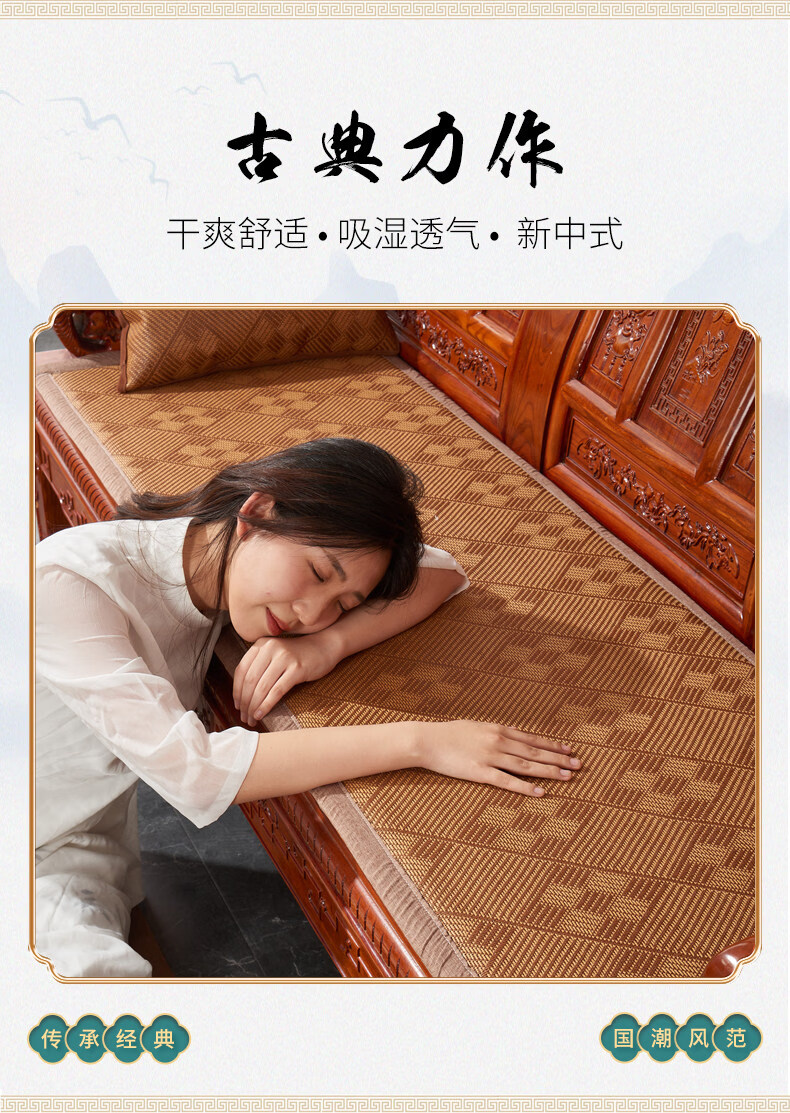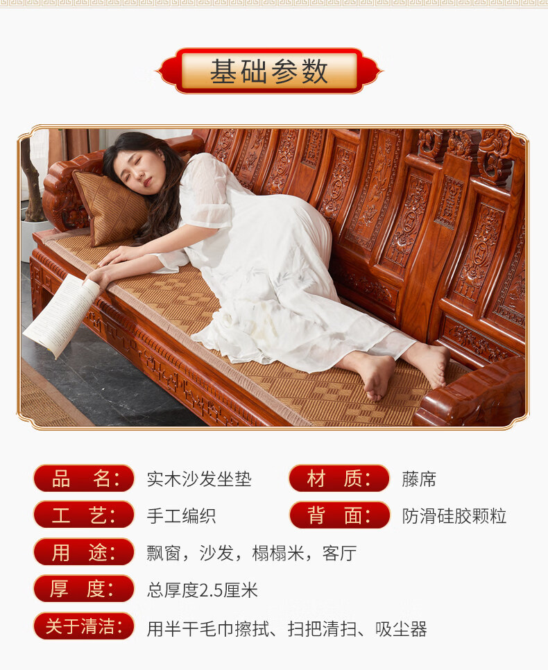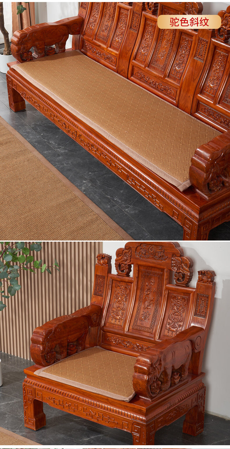 正圣夏季凉席沙发垫四季通用防滑2026年新款红木实木沙发坐垫老式椅垫 锦绣红棕(3cm海绵) 三人座50*170cm