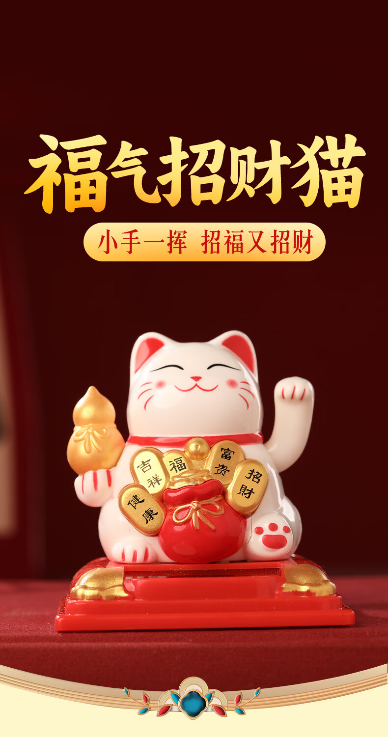慈元阁迷你招财猫太阳能汽车摆件卡通招财进宝工位办公桌聚宝盆小摆件 【迷你2.5寸】葫芦招财猫