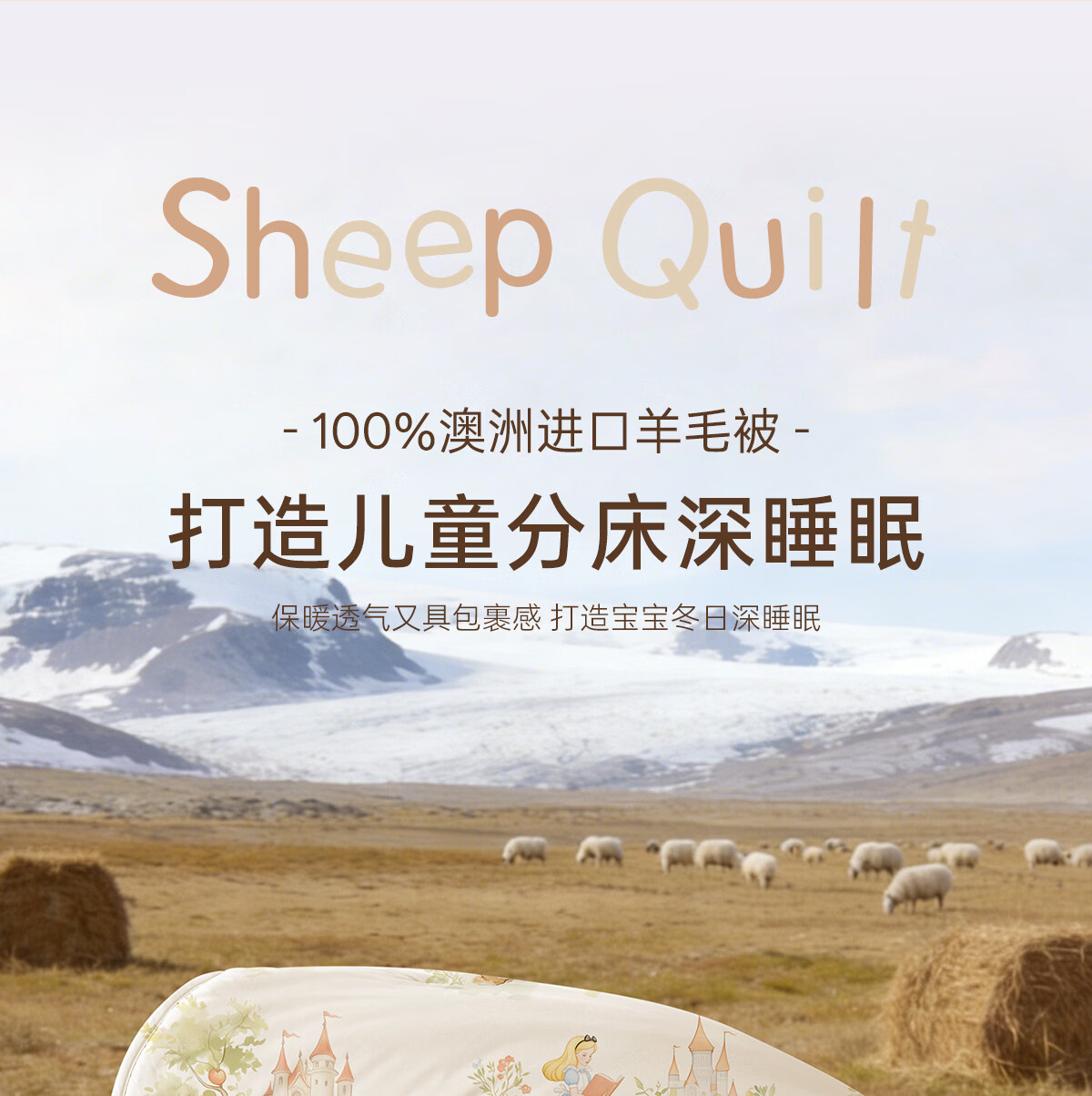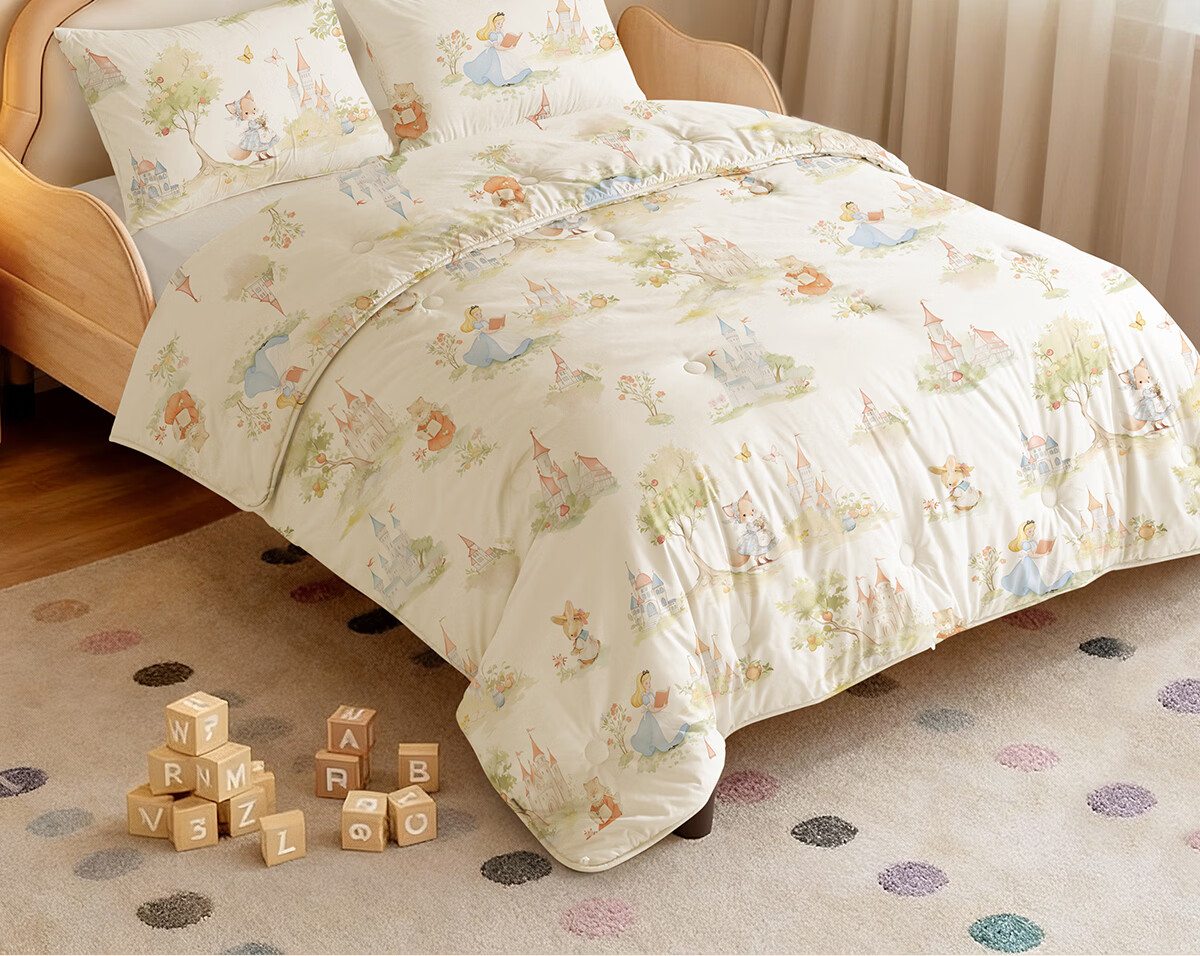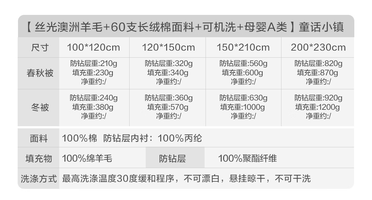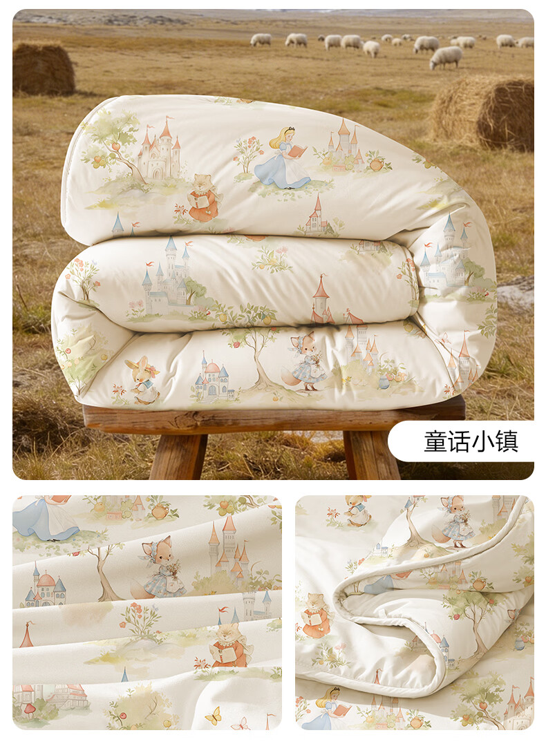 博洋宝贝(Beyond Kids)澳洲进口儿童羊毛被子60支纯棉冬被加厚保暖被芯A类长绒棉秋冬季 60支长绒棉澳洲羊毛春秋被—童话小镇 100*120cm
