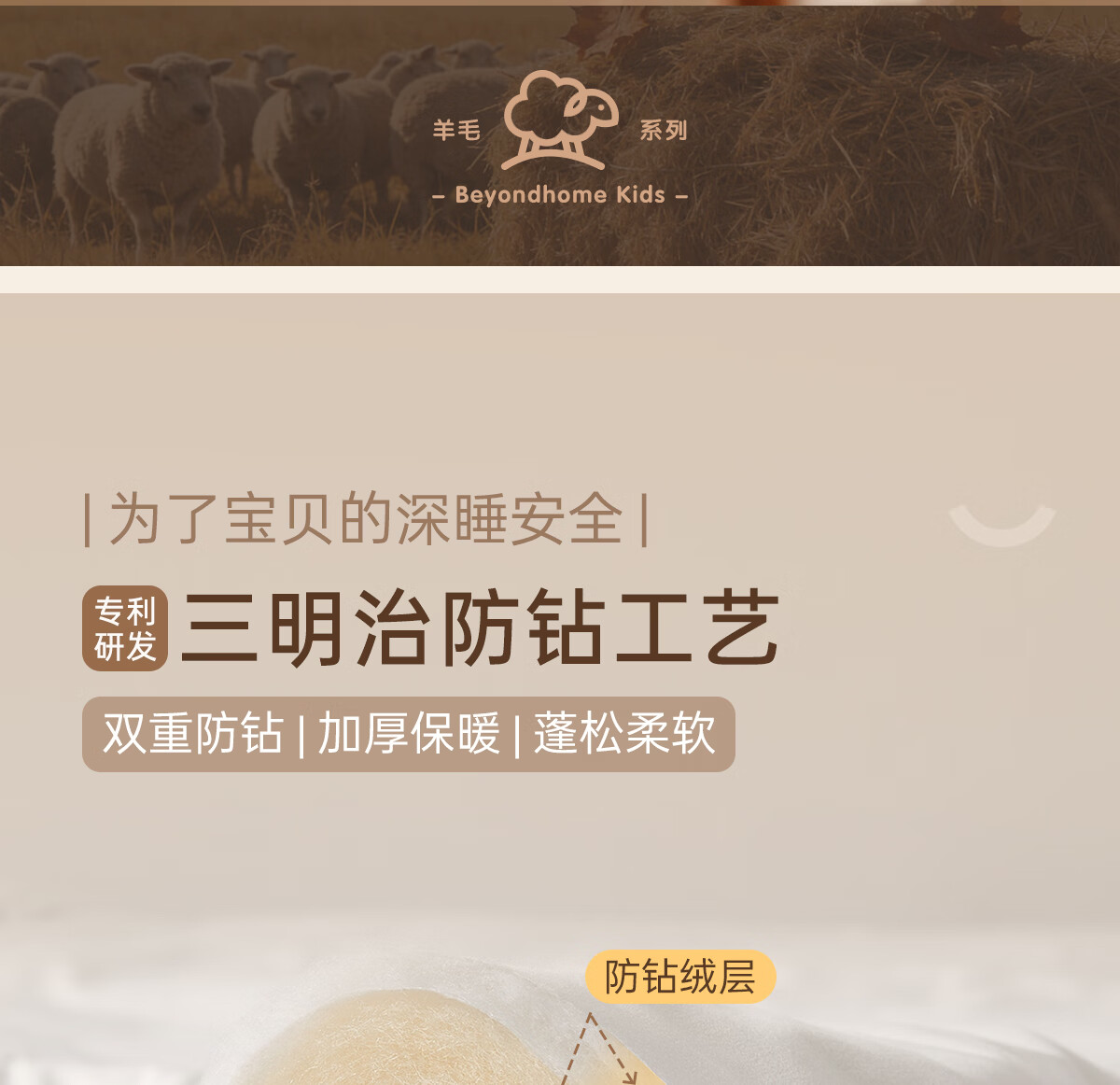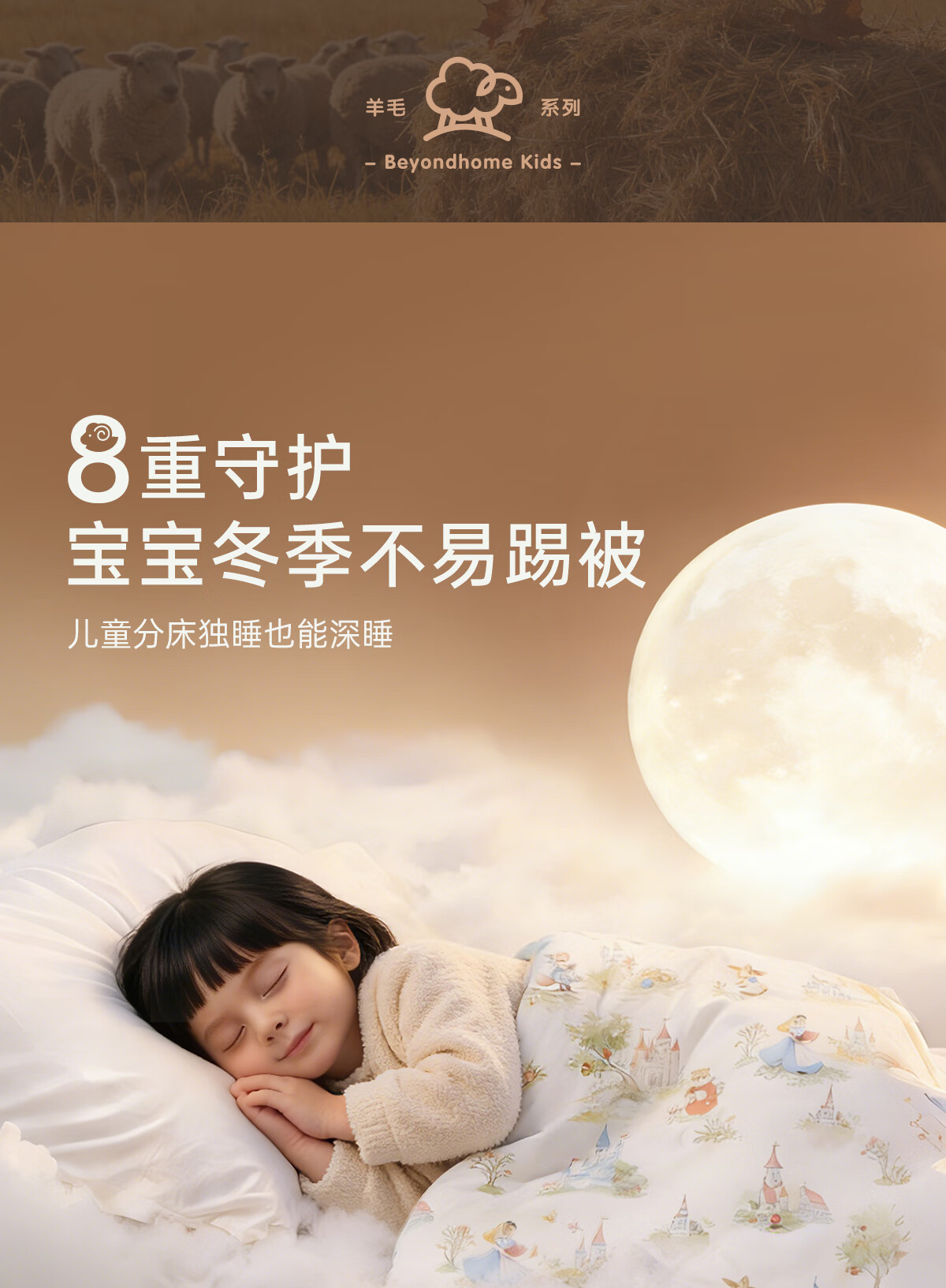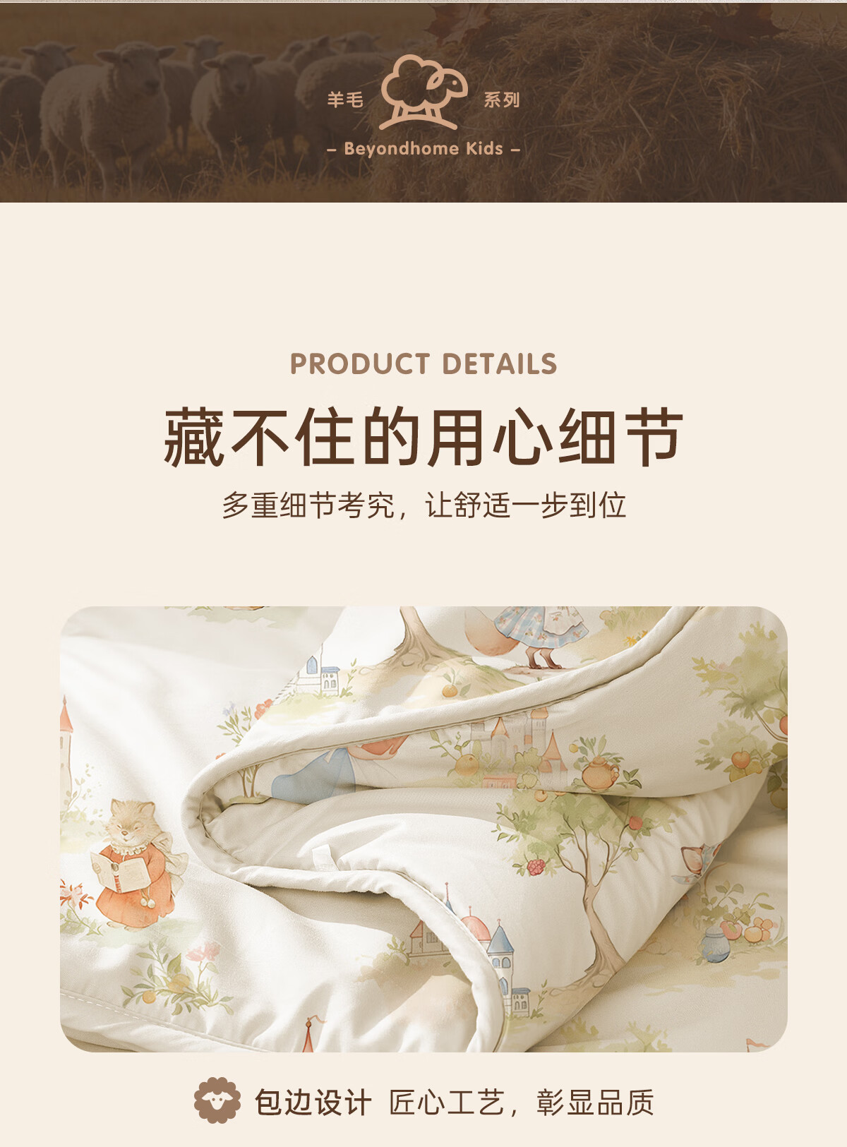 博洋宝贝(Beyond Kids)澳洲进口儿童羊毛被子60支纯棉冬被加厚保暖被芯A类长绒棉秋冬季 60支长绒棉澳洲羊毛春秋被—童话小镇 100*120cm