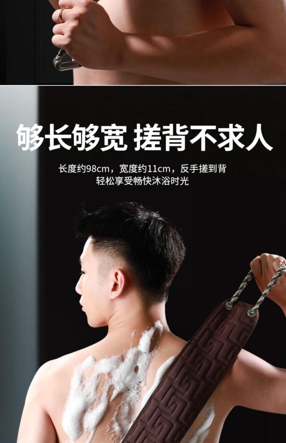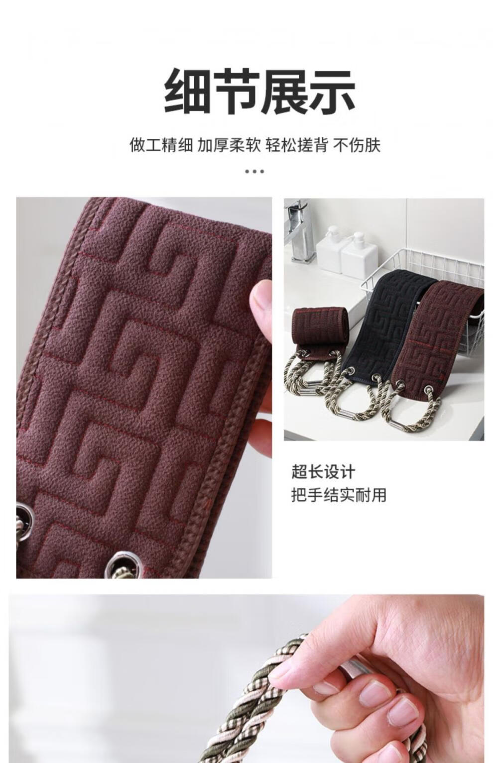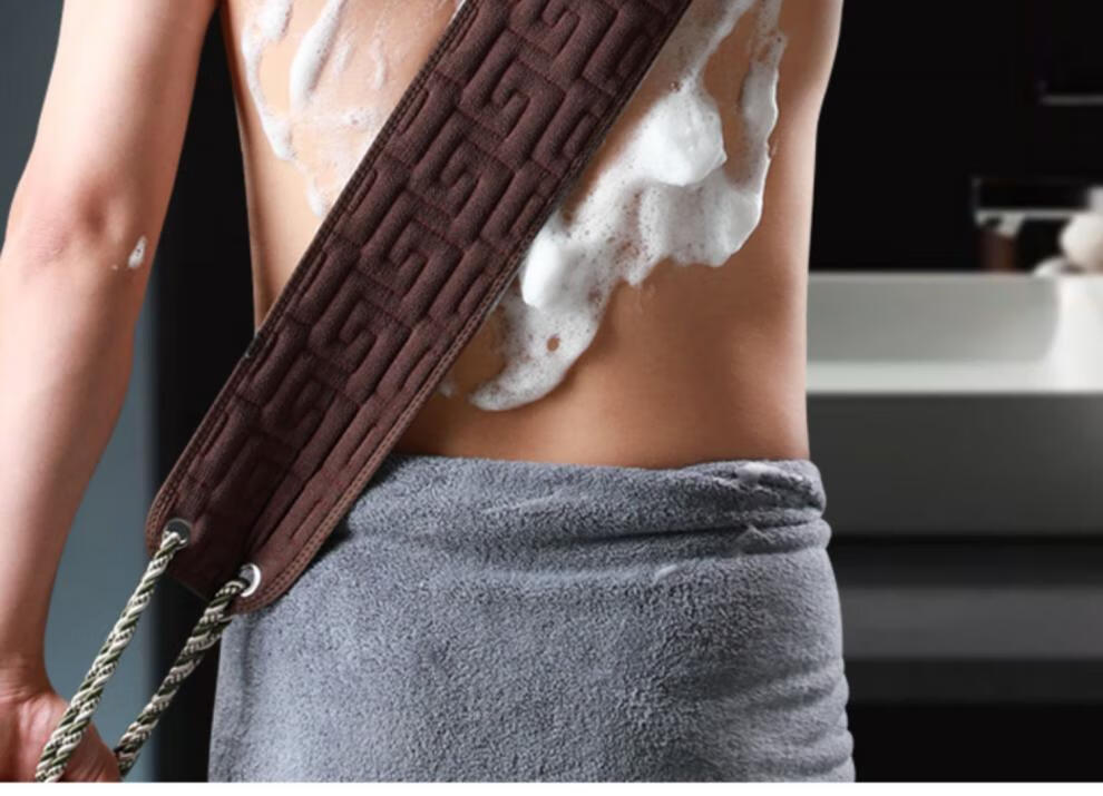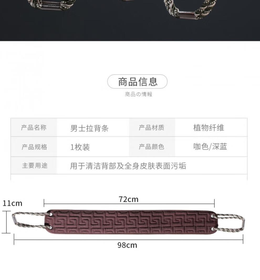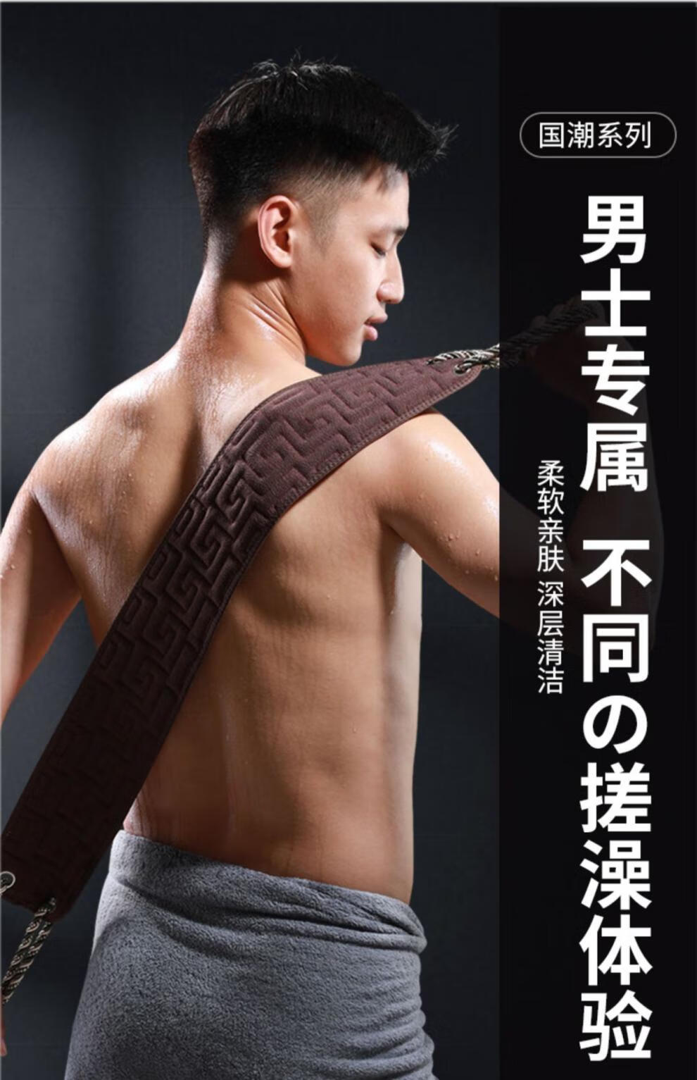 兮儿男士搓澡巾搓后背长条强力粗砂搓泥擦不求人家用洗澡搓背浴室加厚 咖色/男士拉背条【加固拉手/久拉不坏】