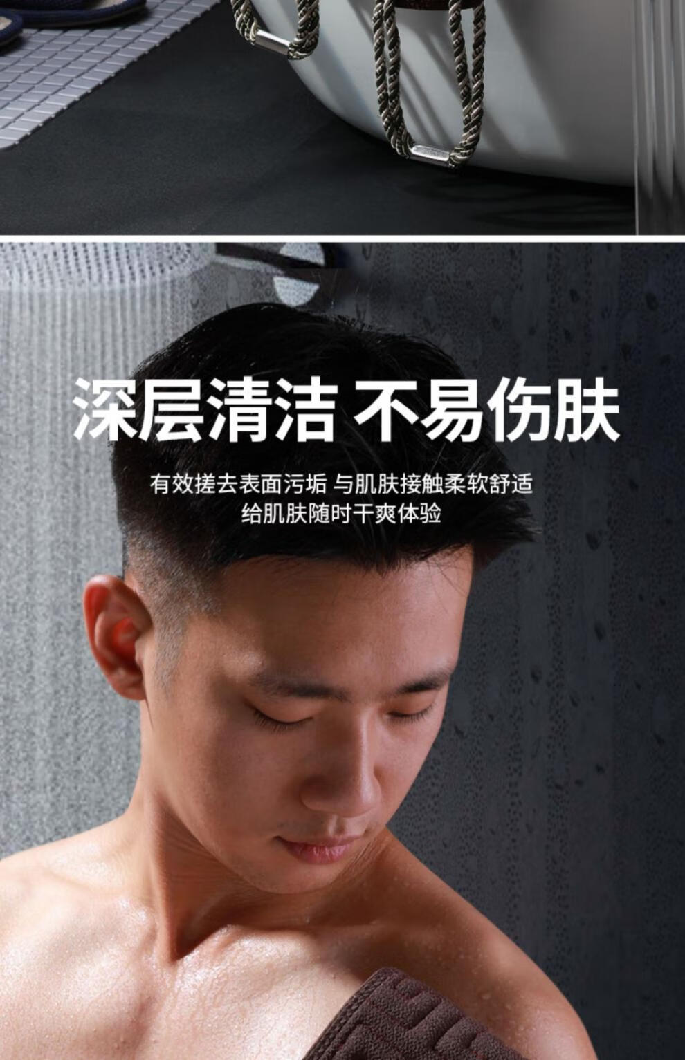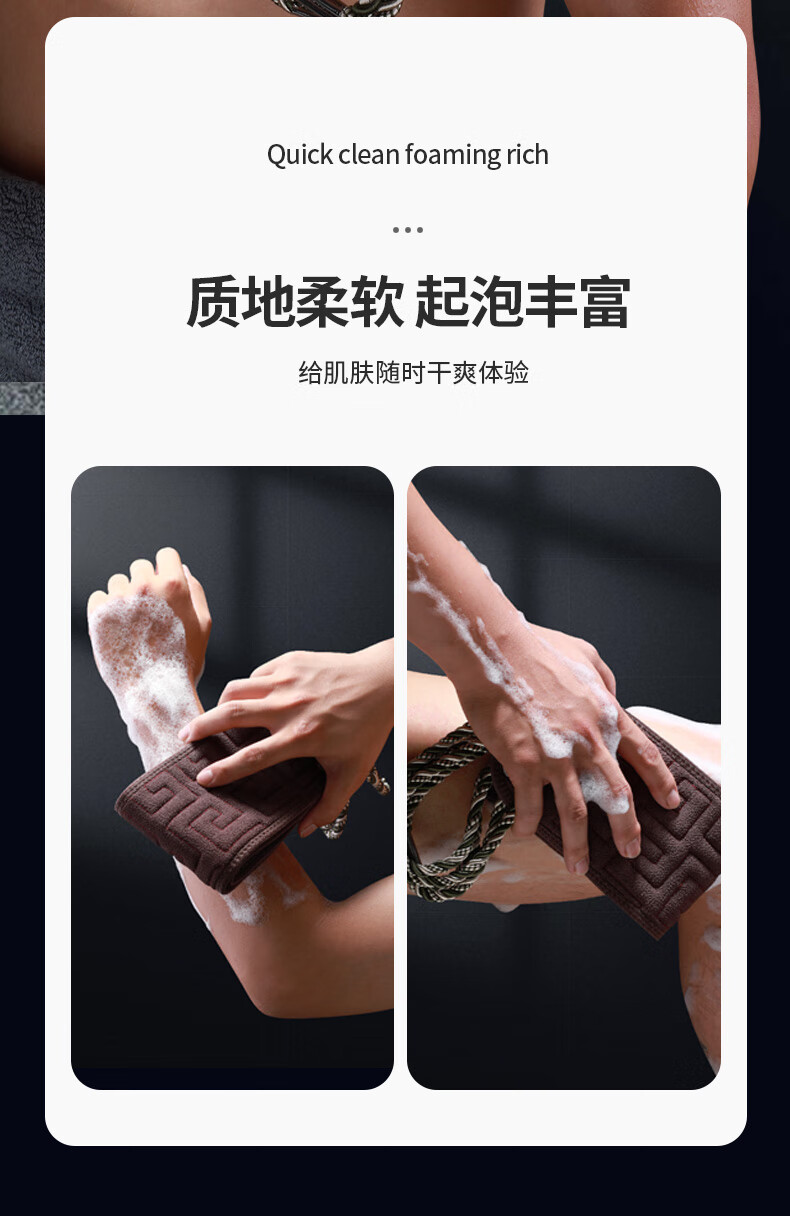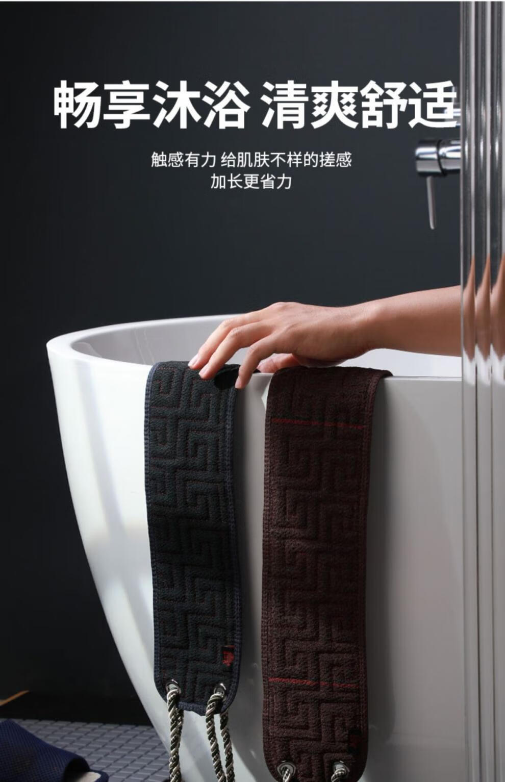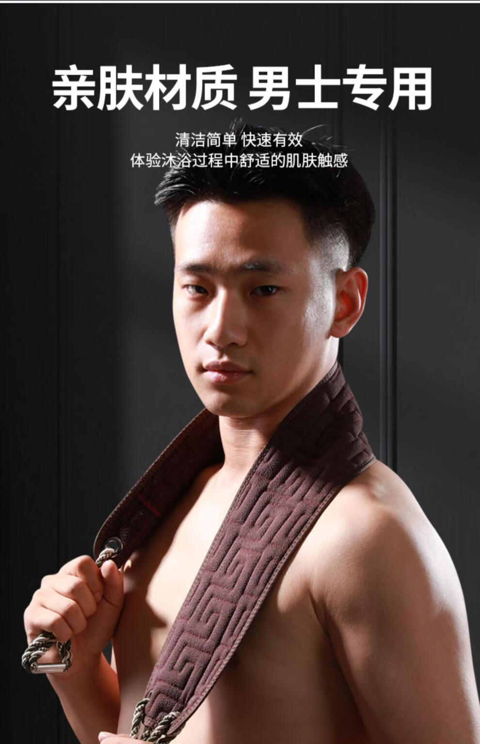 兮儿男士搓澡巾搓后背长条强力粗砂搓泥擦不求人家用洗澡搓背浴室加厚 咖色/男士拉背条【加固拉手/久拉不坏】
