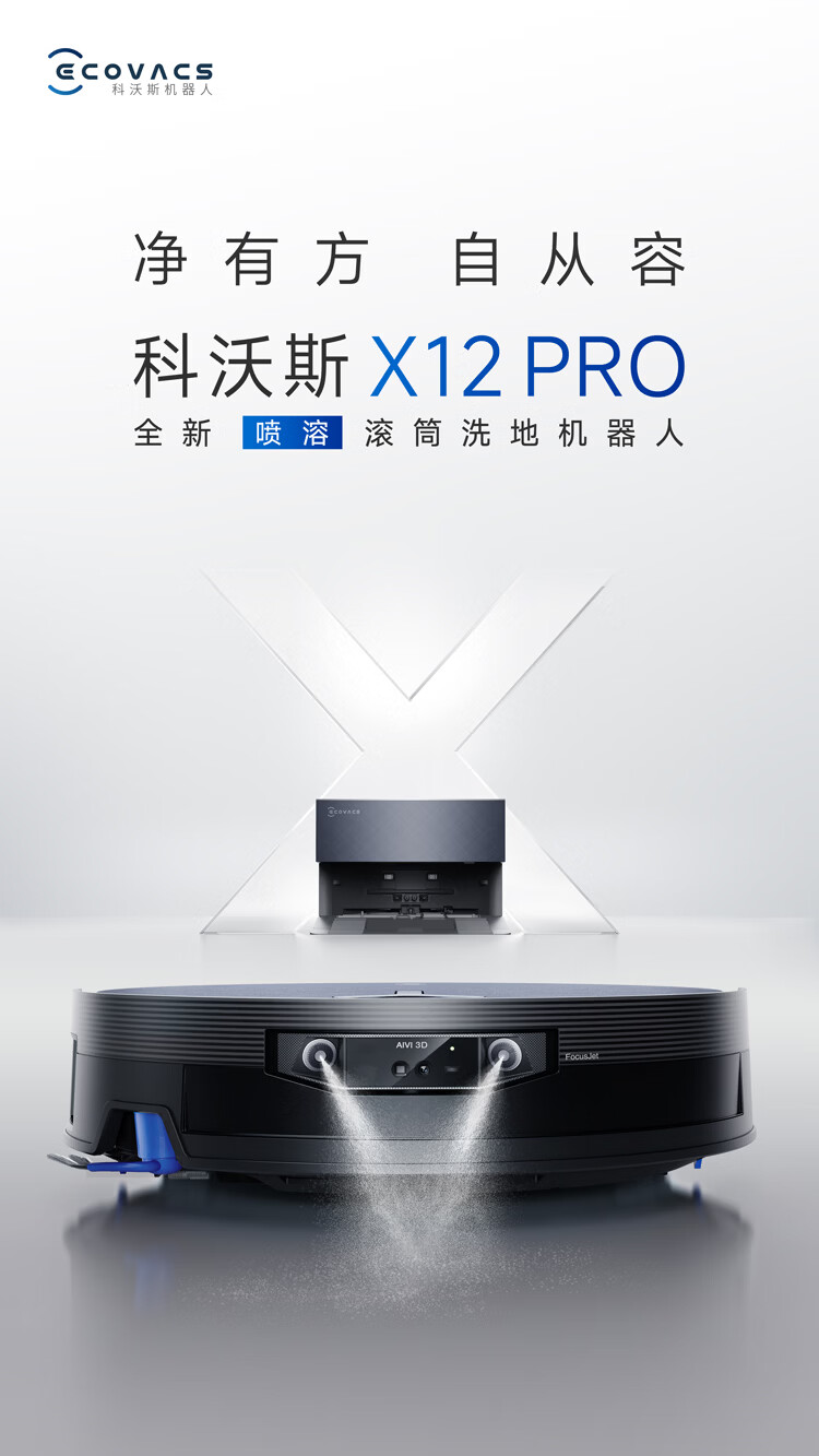 科沃斯X12 PRO扫地机器人【重磅新品】扫拖一体厨房油污克星大户型无限续航防缠绕自动清洗集尘上下水版