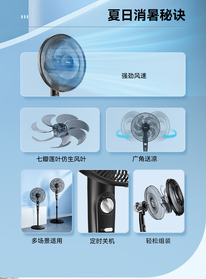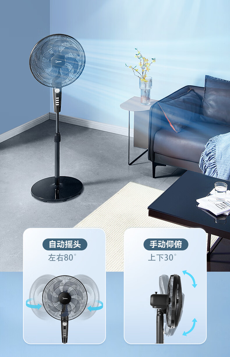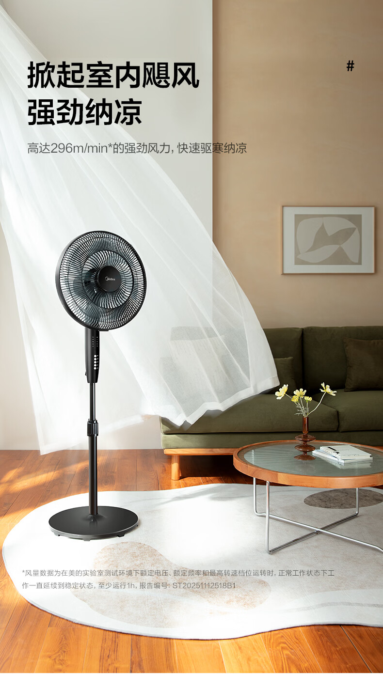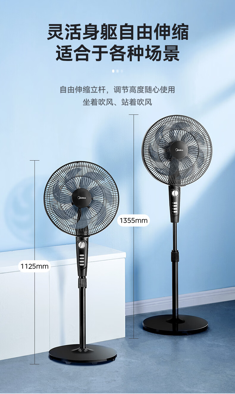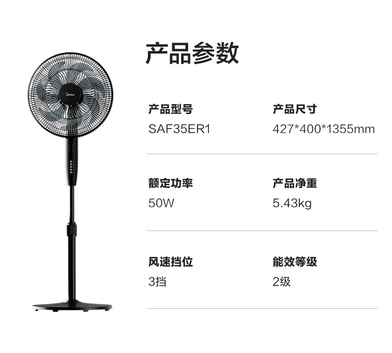 美的(Midea)电风扇落地扇家用大风量 远距离强风送凉电电扇 立式落地风扇家用卧室客厅办公 可选升级2级能效 【黑色按键】热销百万台35MA