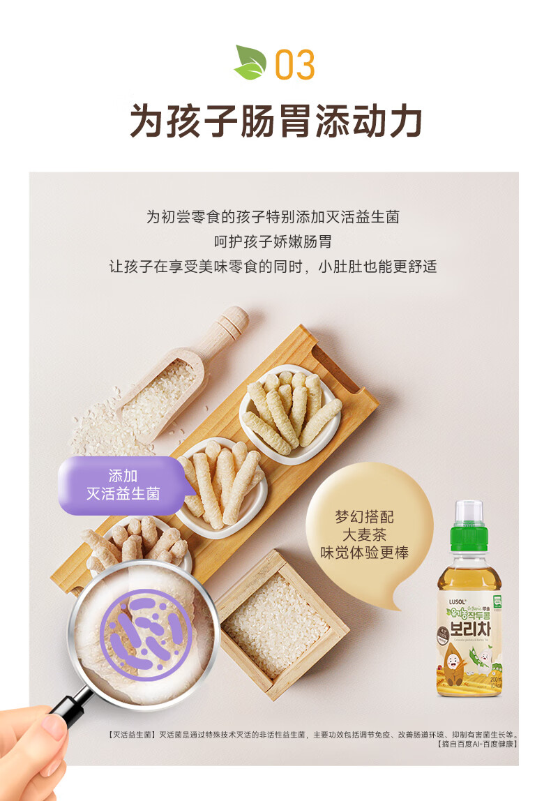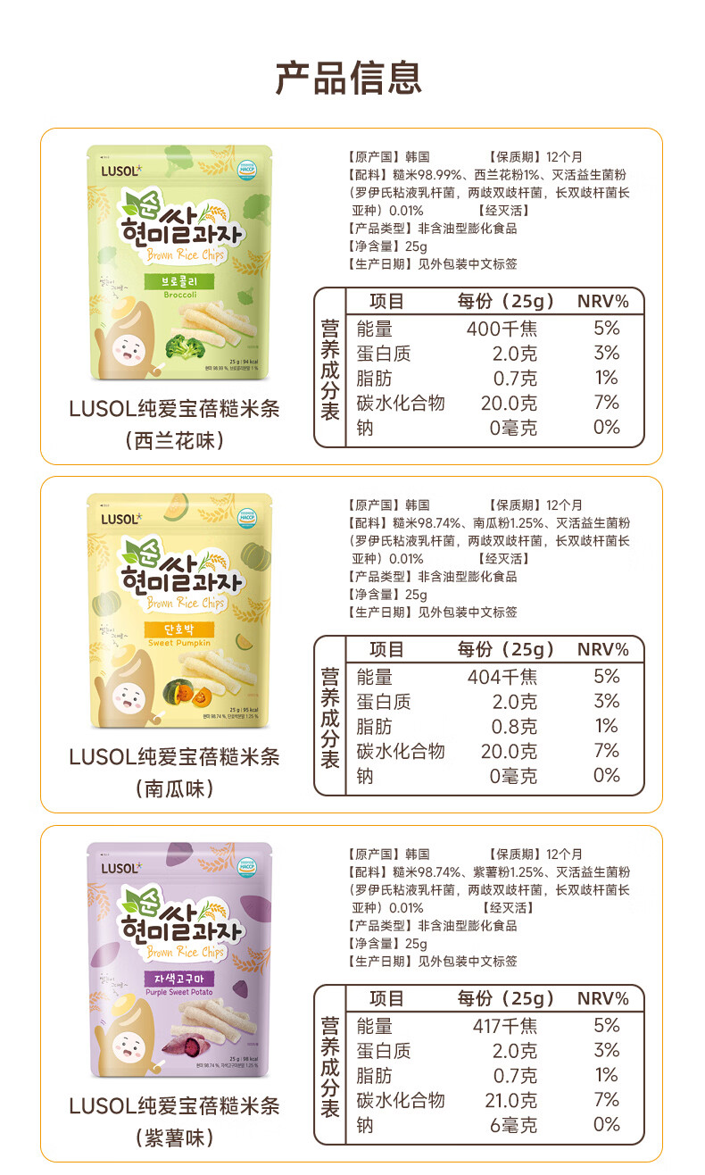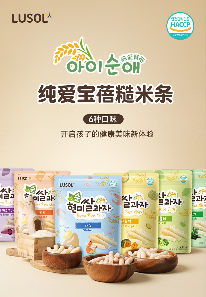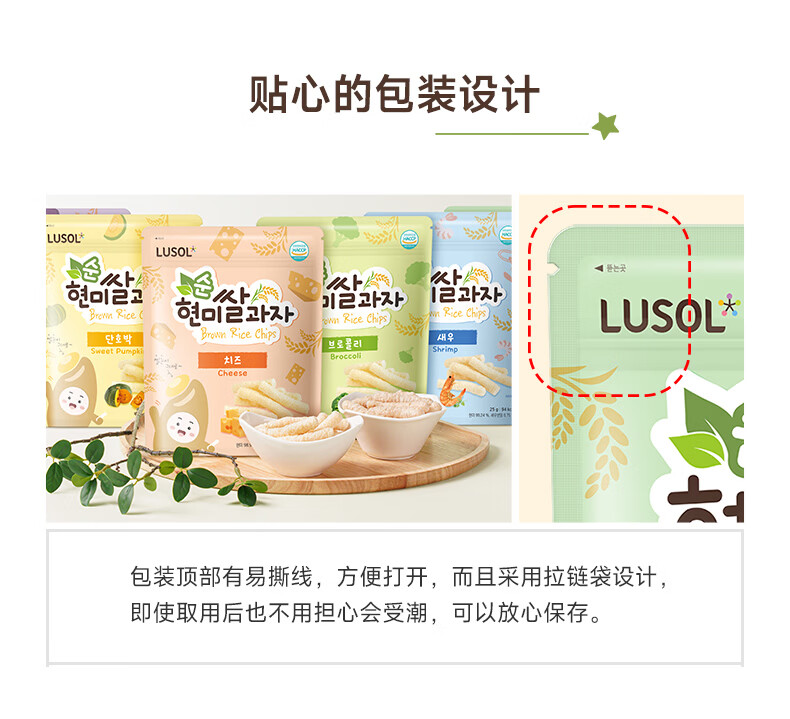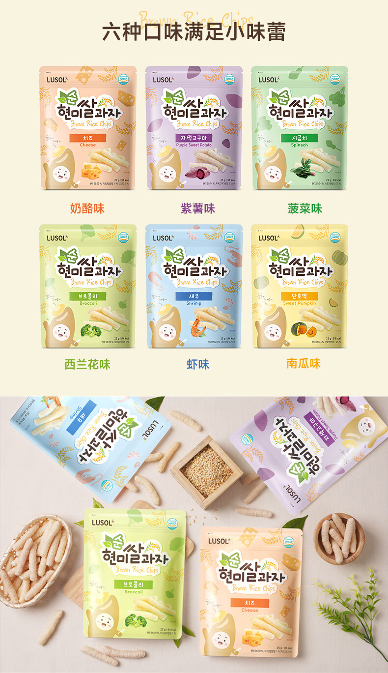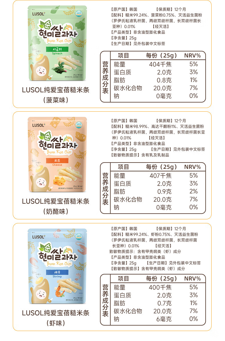 纯爱宝蓓LUSOL韩国进口糙米条儿童零食无添加糖盐非油炸健康添加益生菌25g 菠菜味1袋 25g