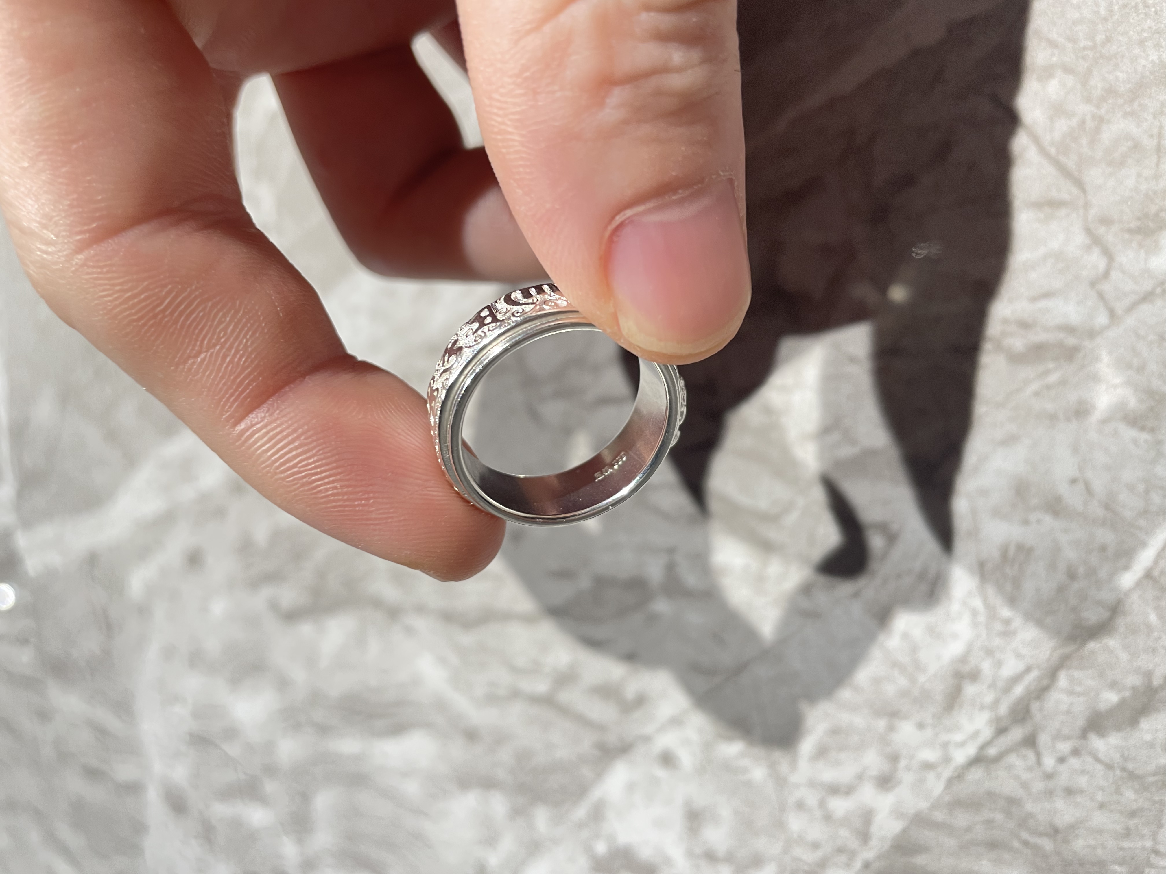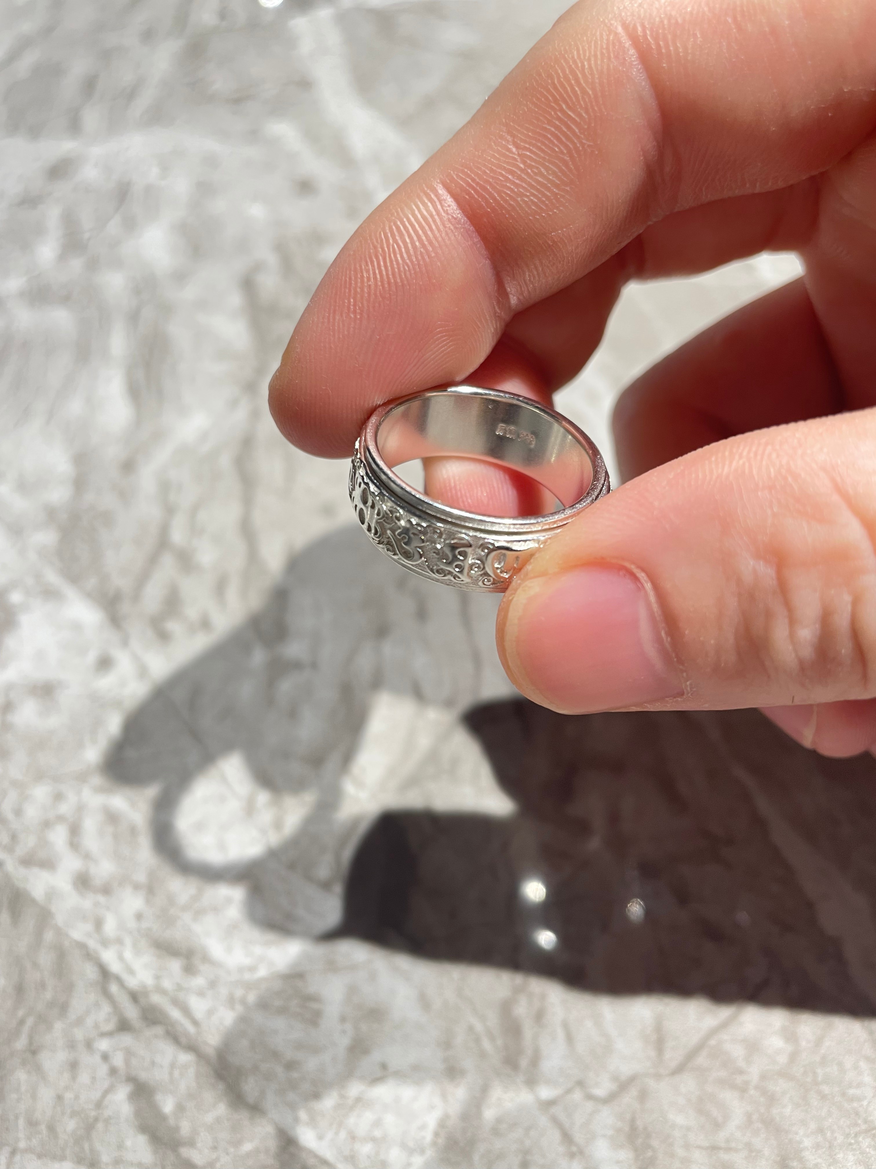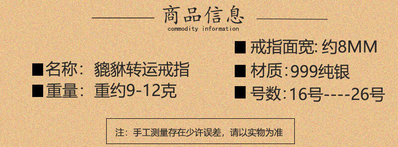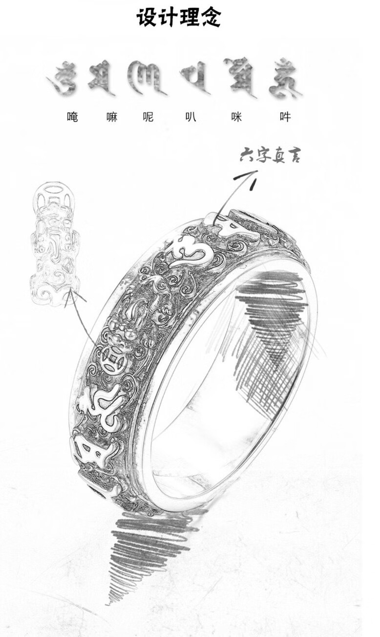 老银匠六字真言999纯银戒指男士国潮貔貅可转动单身旋转食指环网红尾戒 17号【手指周长约57MM】