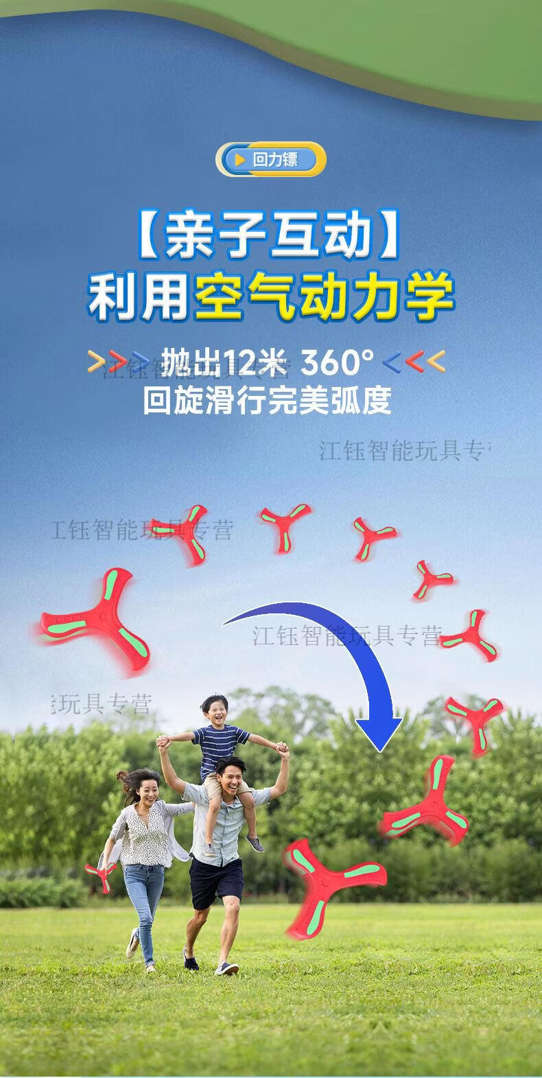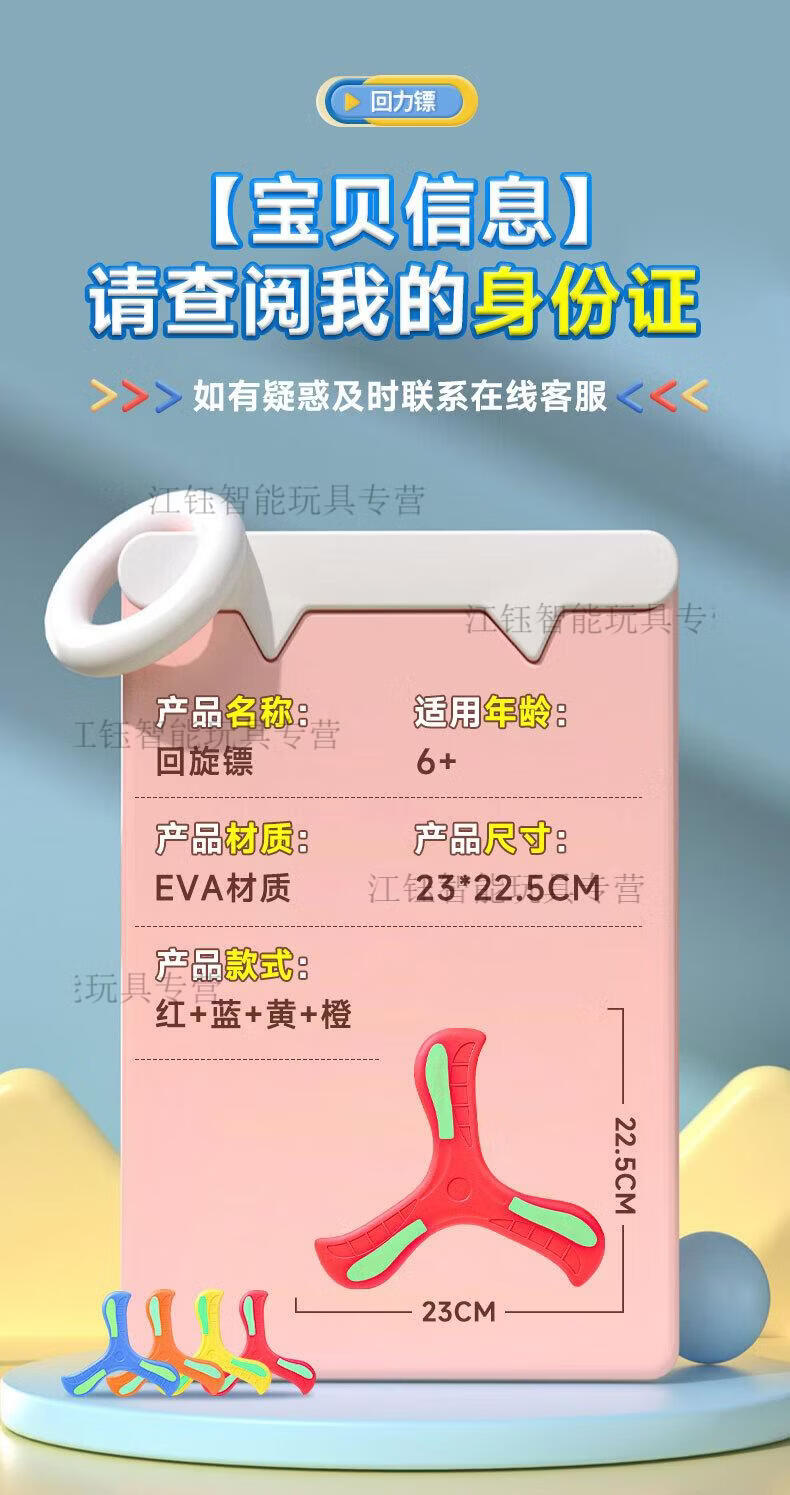 卡佰索立始夜光回旋镖2个装蓝黄亲子飞盘儿童户外玩具正品保障 98%选择(2个装)红色+蓝色夜光