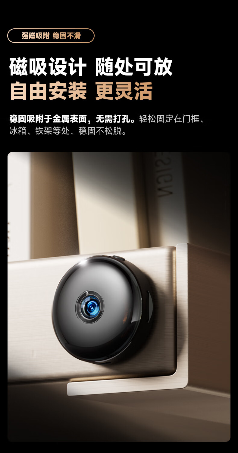 九目黑科技摄像头圆形监控摄像头录音笔运动相机 直录版内存卡存储 手机读卡器读取视频 圆形直录高清版【高清画质+磁吸】 带32G卡 直录版-不用下载APP+无网录像录音