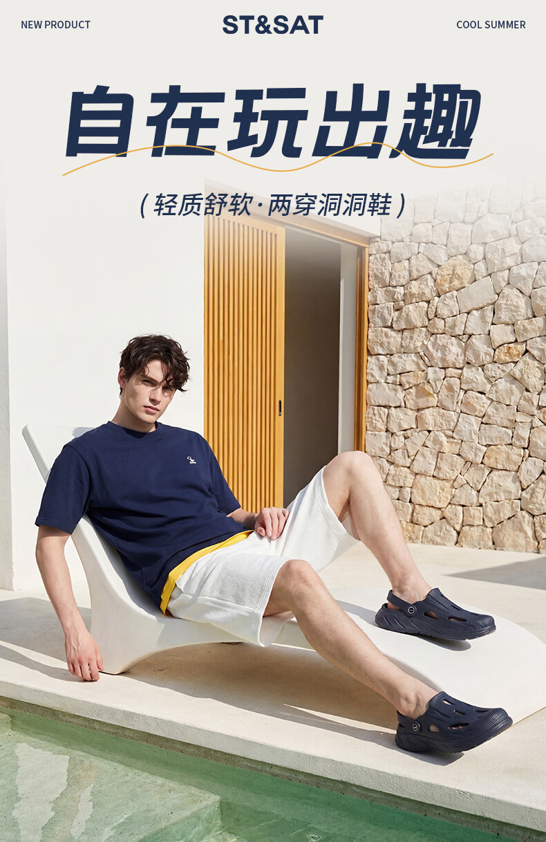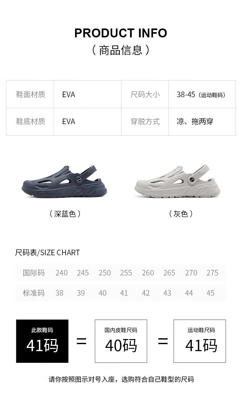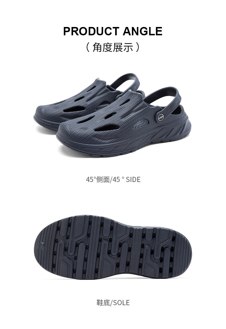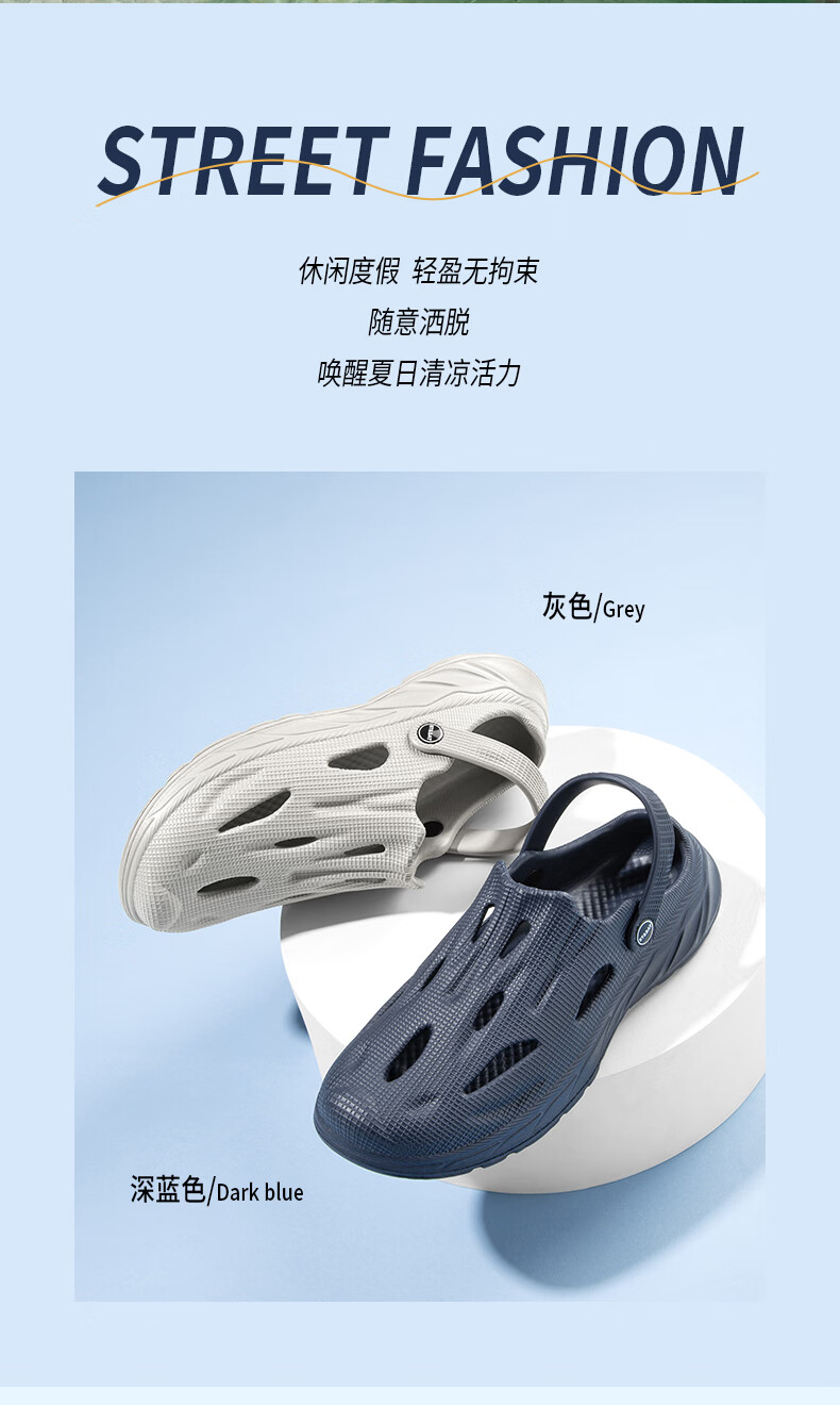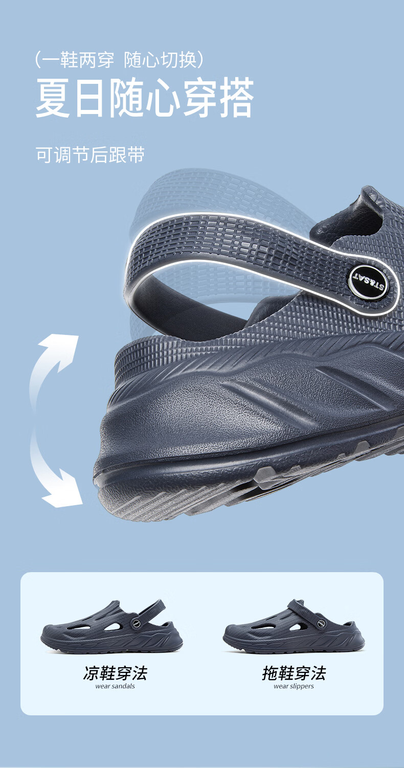 星期六(St&Sat)洞洞鞋男士夏季新款户外两穿凉鞋男休闲涉水凉拖鞋男防滑沙滩鞋男 灰色 38-39 标准运动鞋尺码