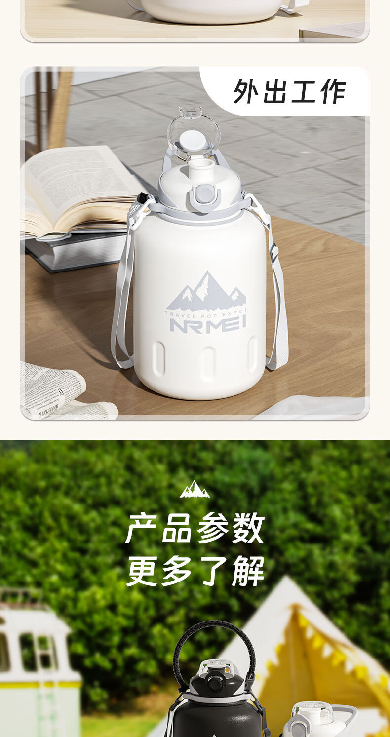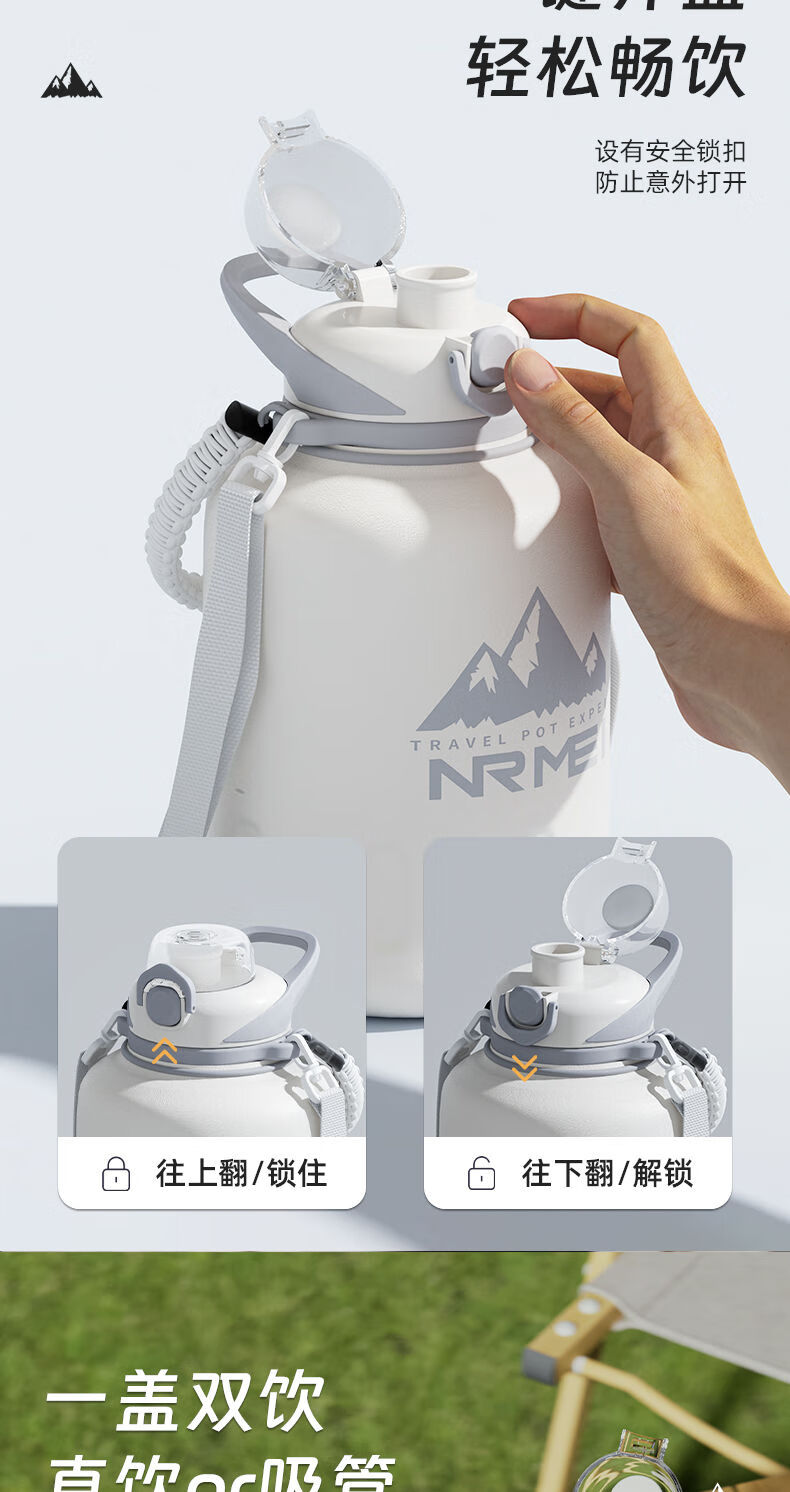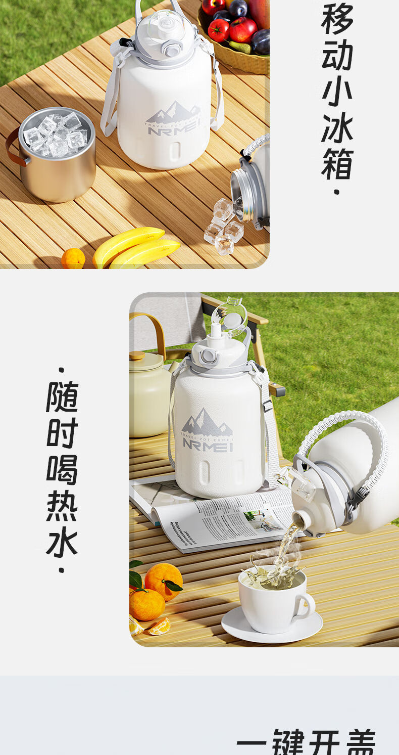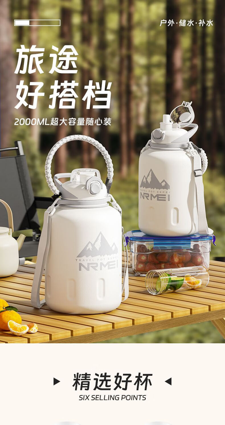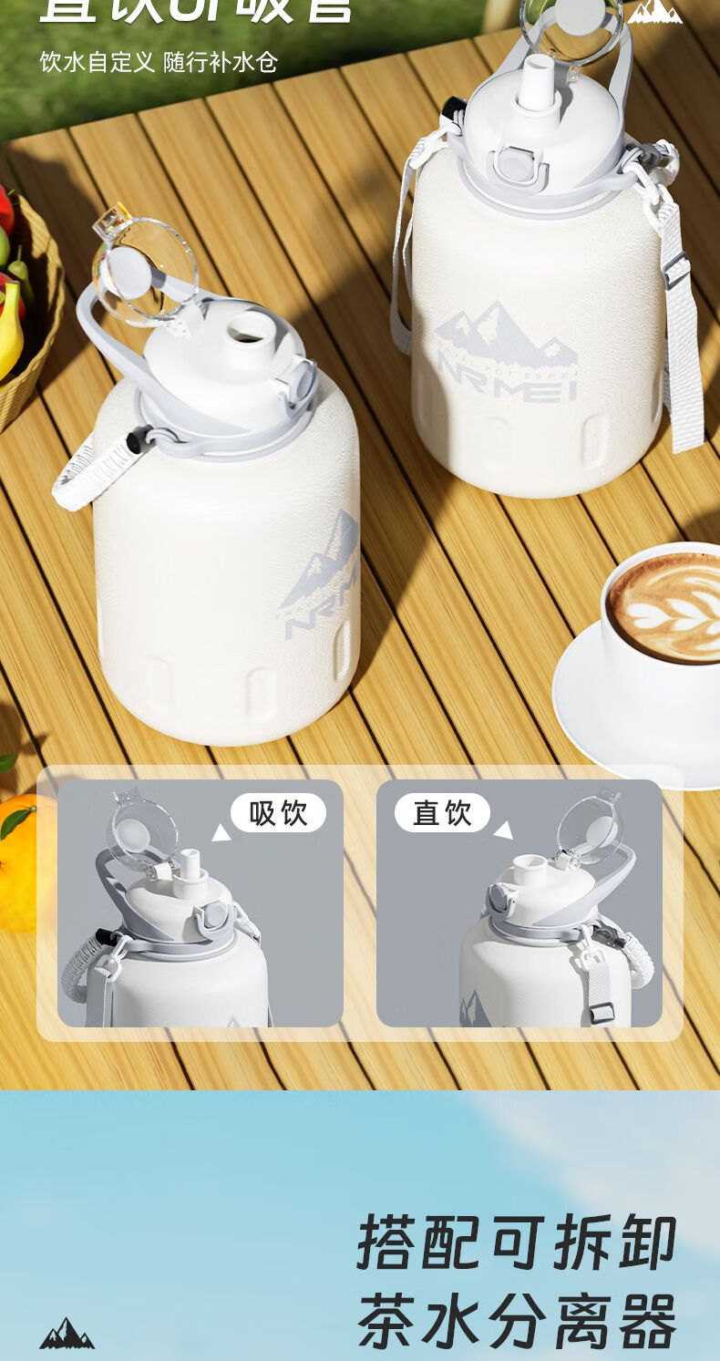 恩尔美(nRMEi)钛保温杯大容量外出便携式墩墩吨桶男女茶水分离大肚户外运动水壶 运动白2000ml【保温/冷+镀钛款】