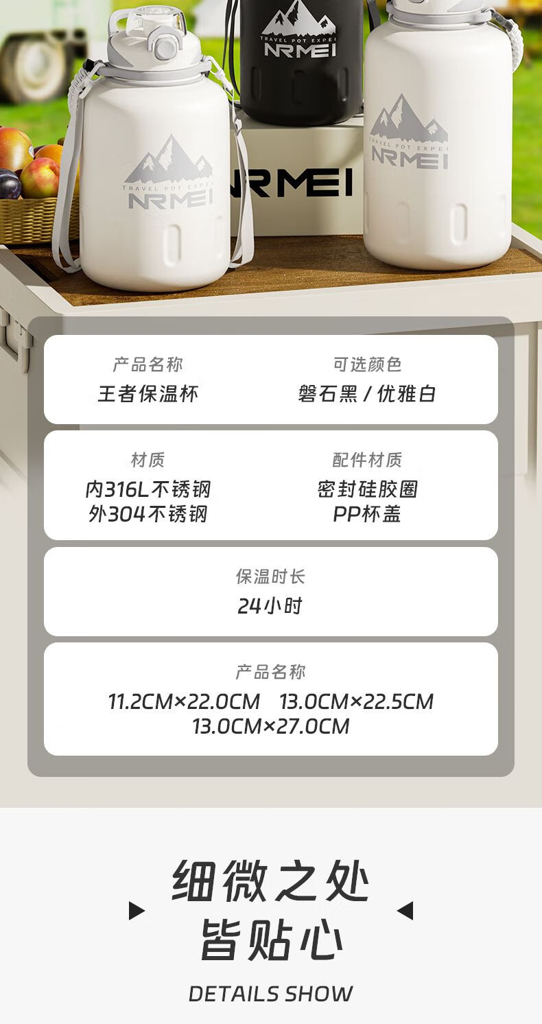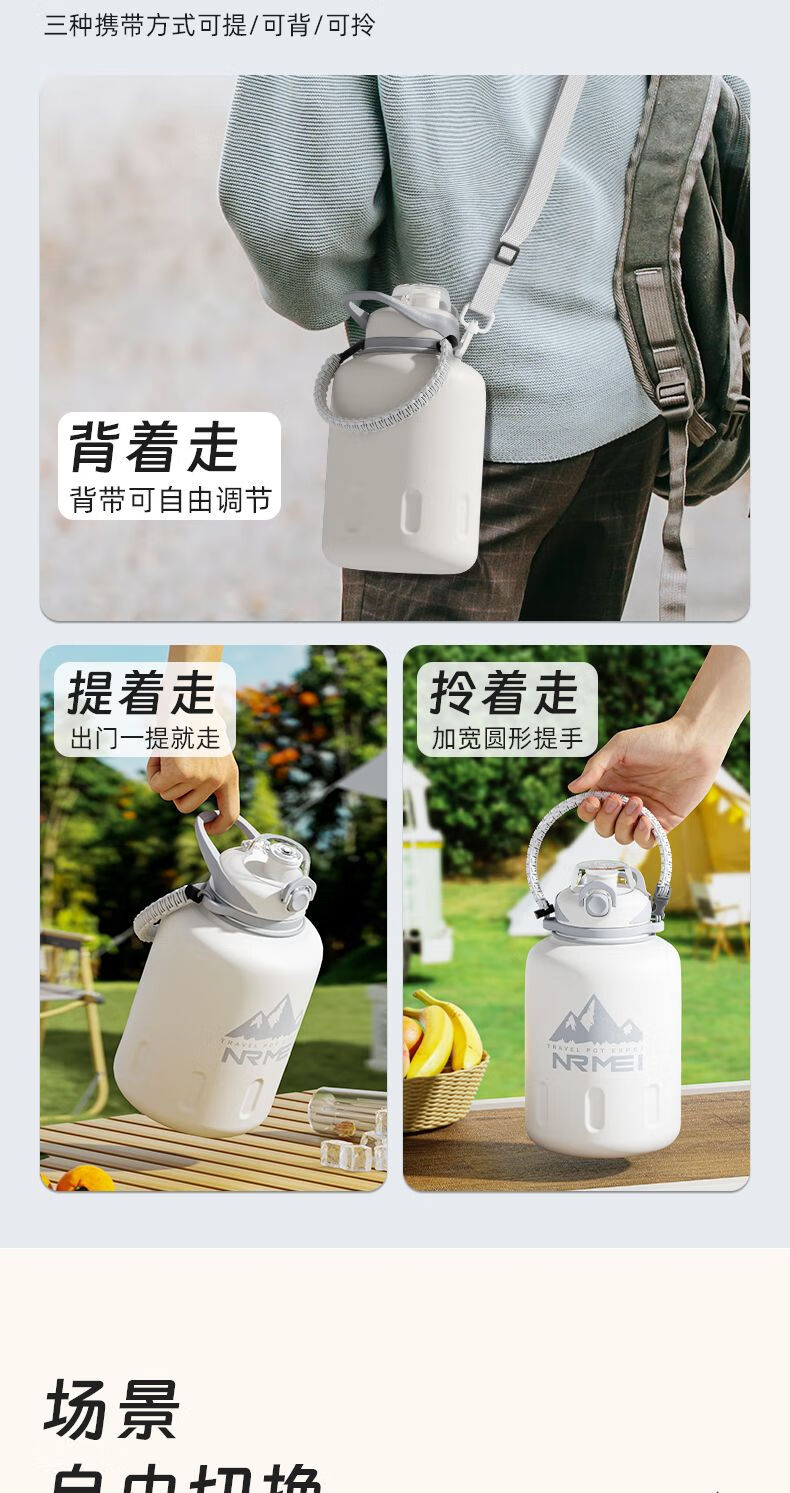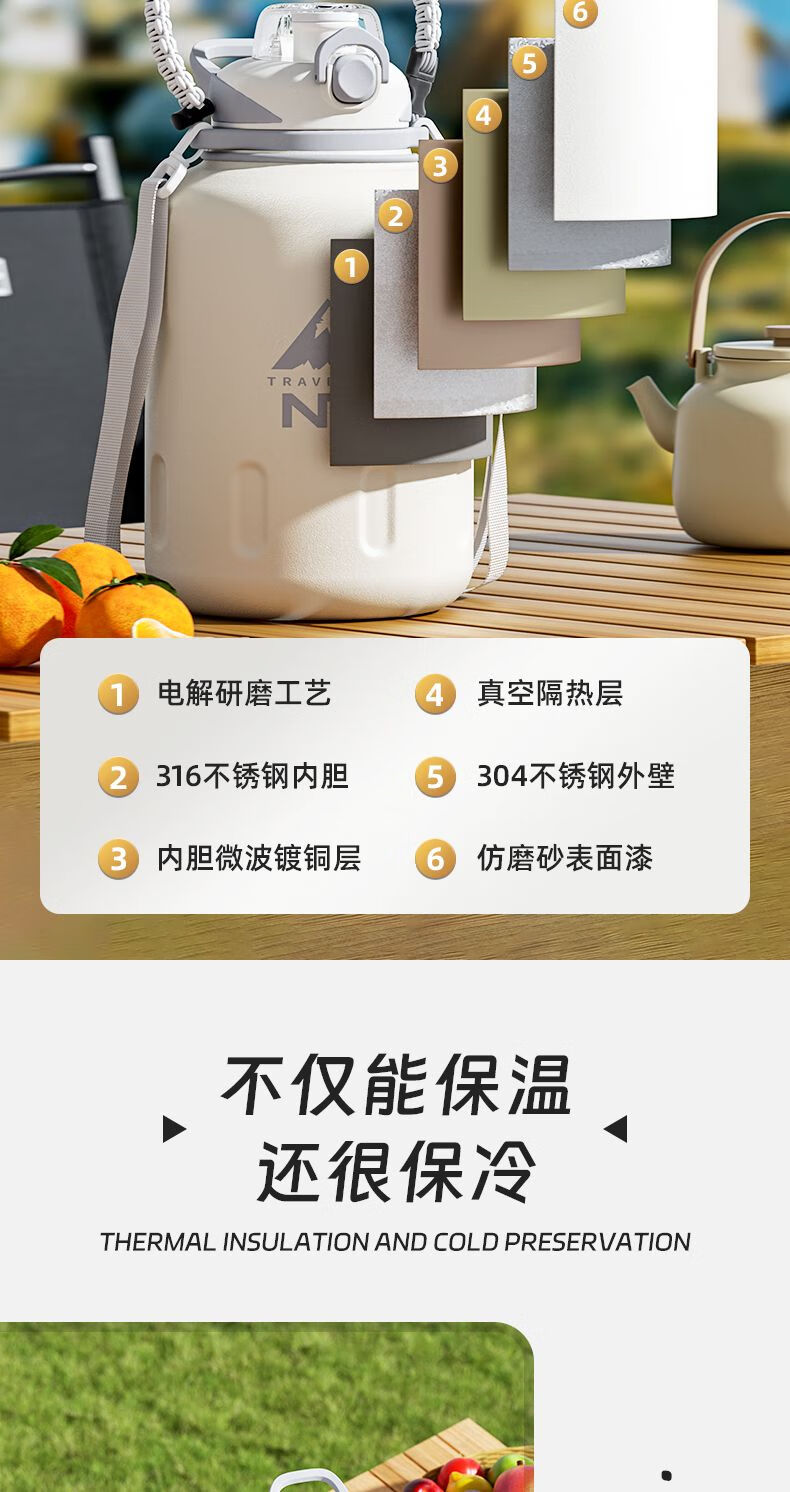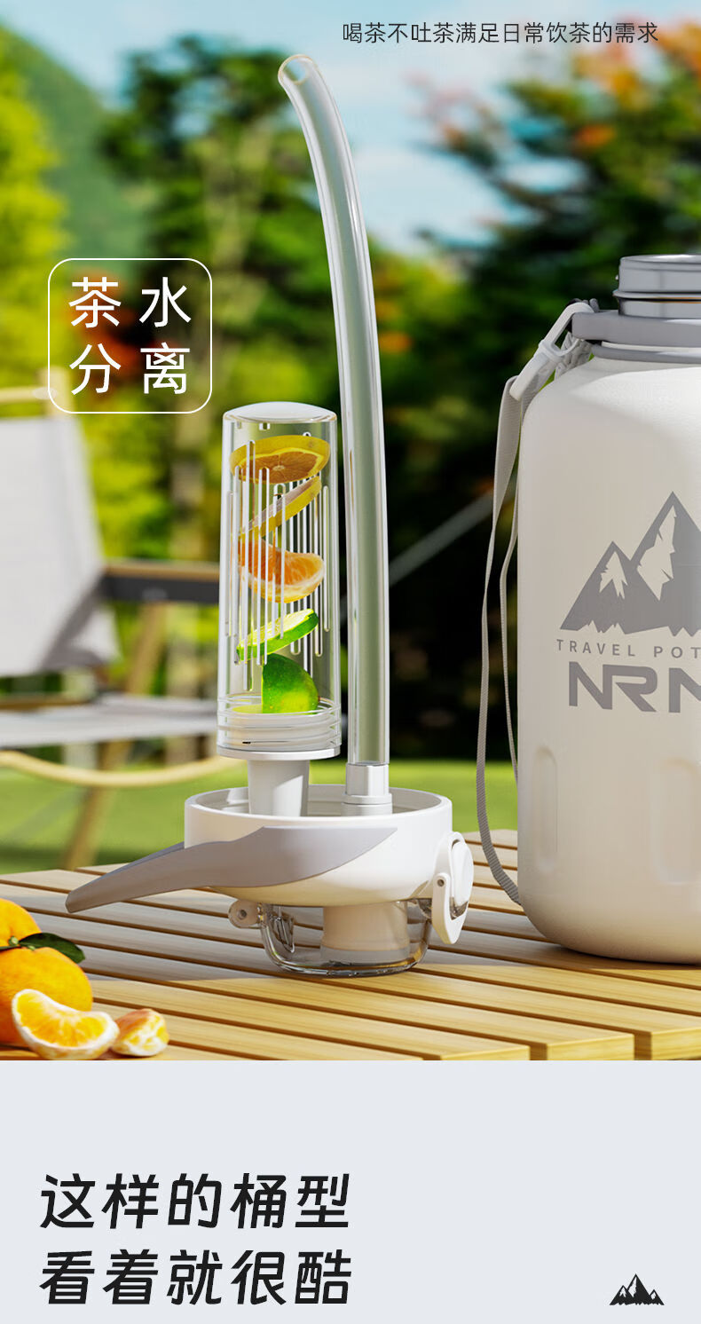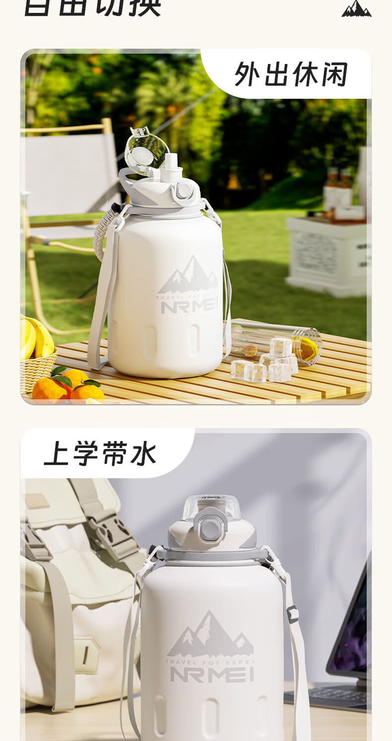 恩尔美(nRMEi)钛保温杯大容量外出便携式墩墩吨桶男女茶水分离大肚户外运动水壶 运动白2000ml【保温/冷+镀钛款】
