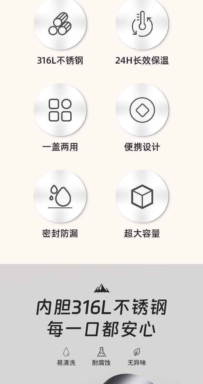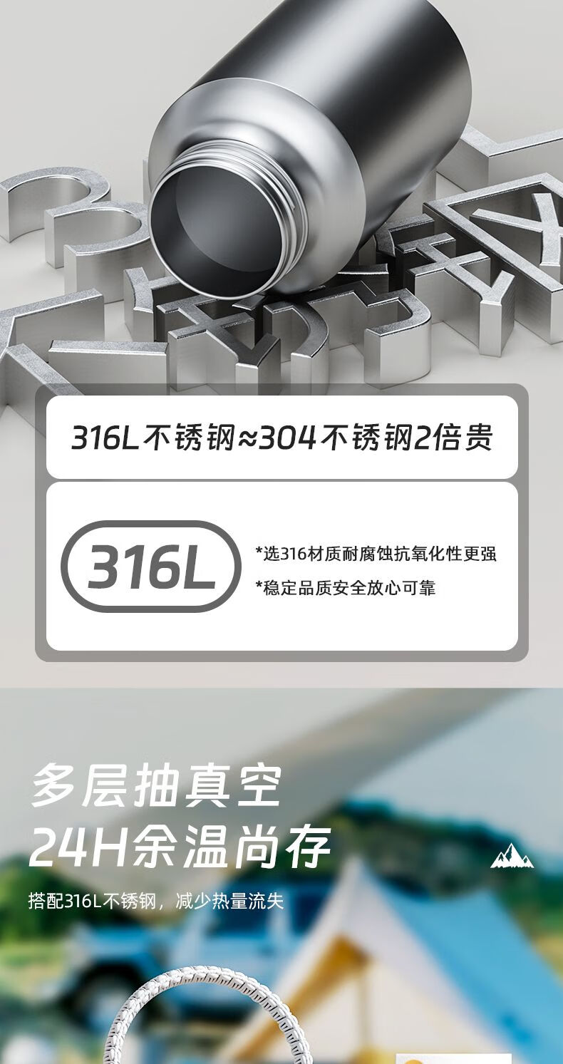 邦达(bangda)(BDH50)316不锈钢保温壶杯大容量户外泡茶水壶全钢车载水杯子 钢本色 1000ml