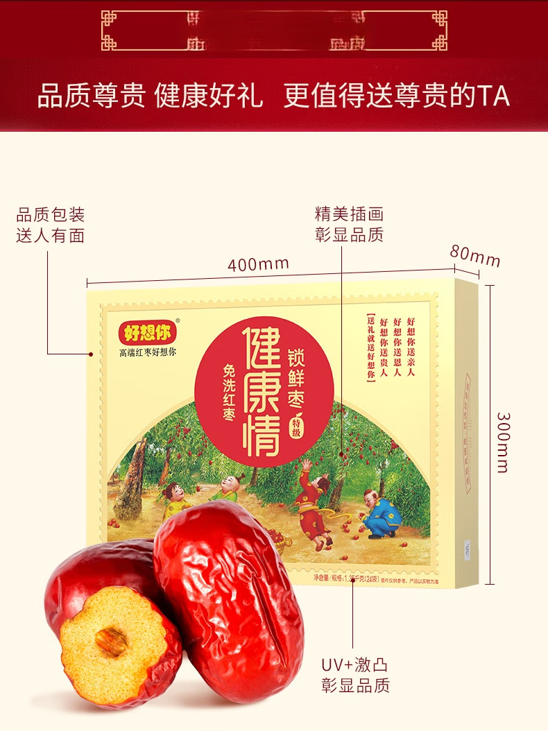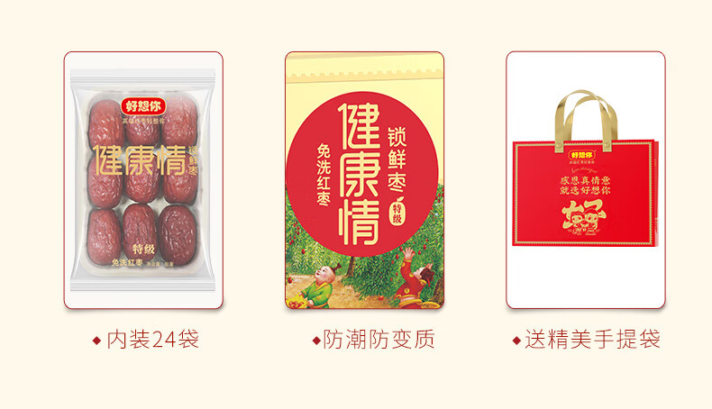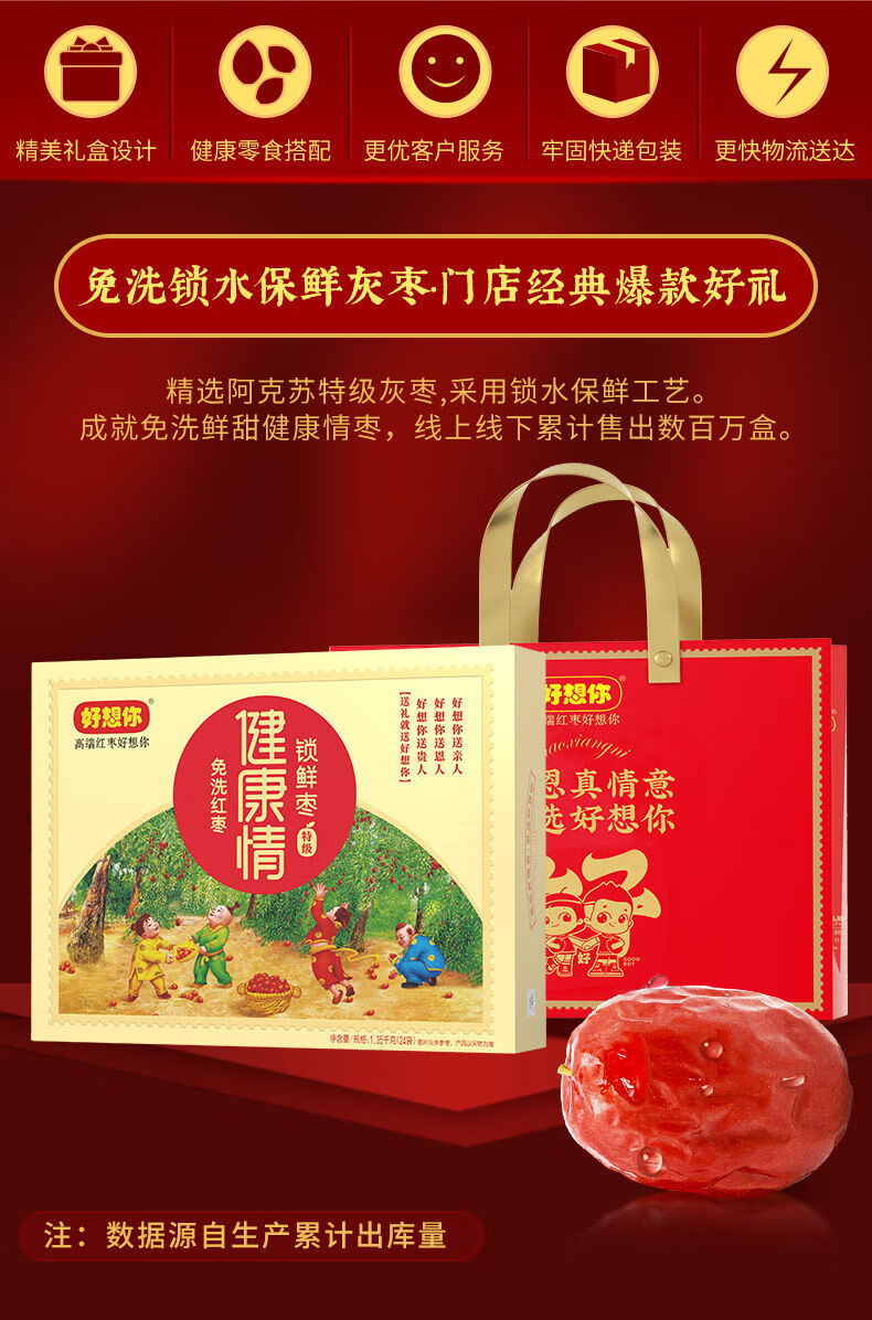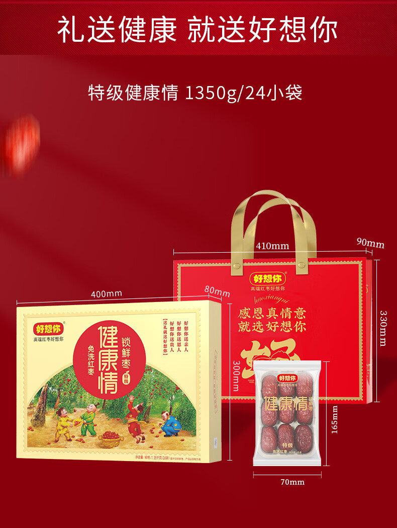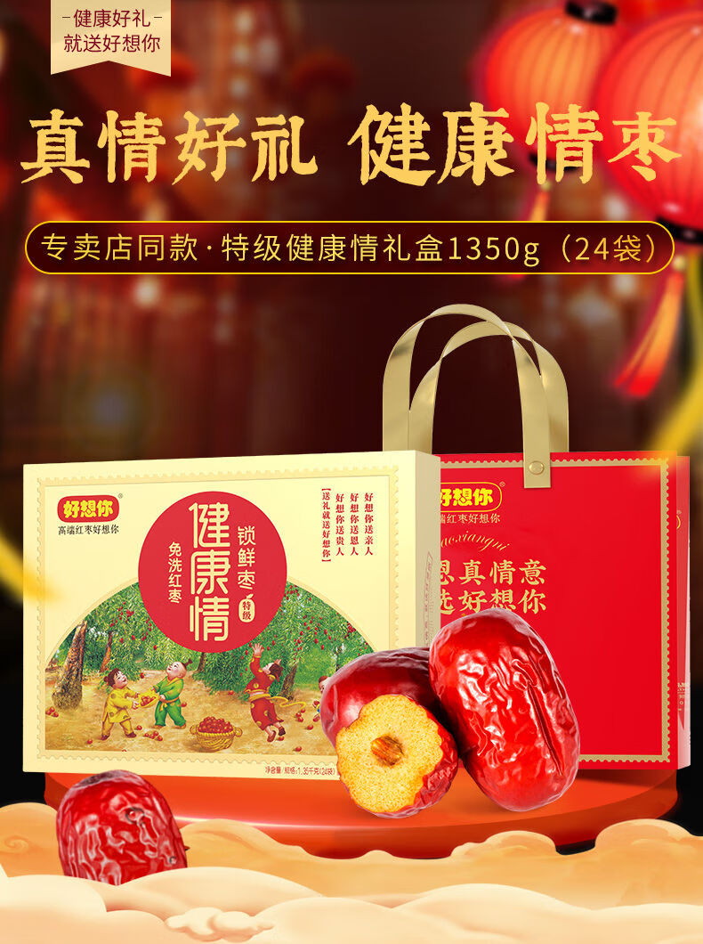 好想你红枣特级大枣礼盒健康情即食枣1350克年货零食特产 特级健康情锁鲜枣1350克