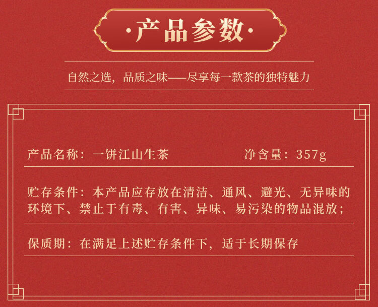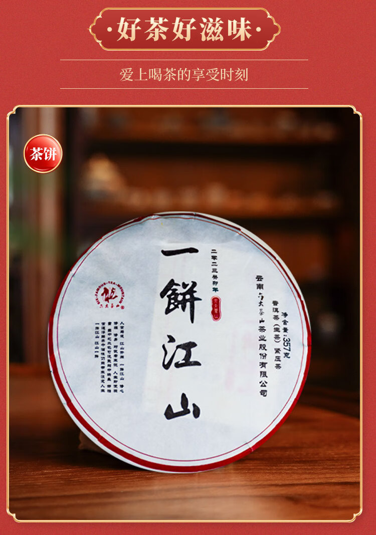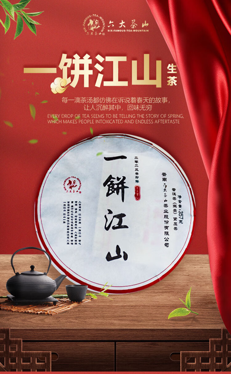 六大茶山一饼江山普洱茶/六大茶山云南普洱茶叶大叶茶生茶经典口粮茶 一饼江山生(2023)/ 357g*1