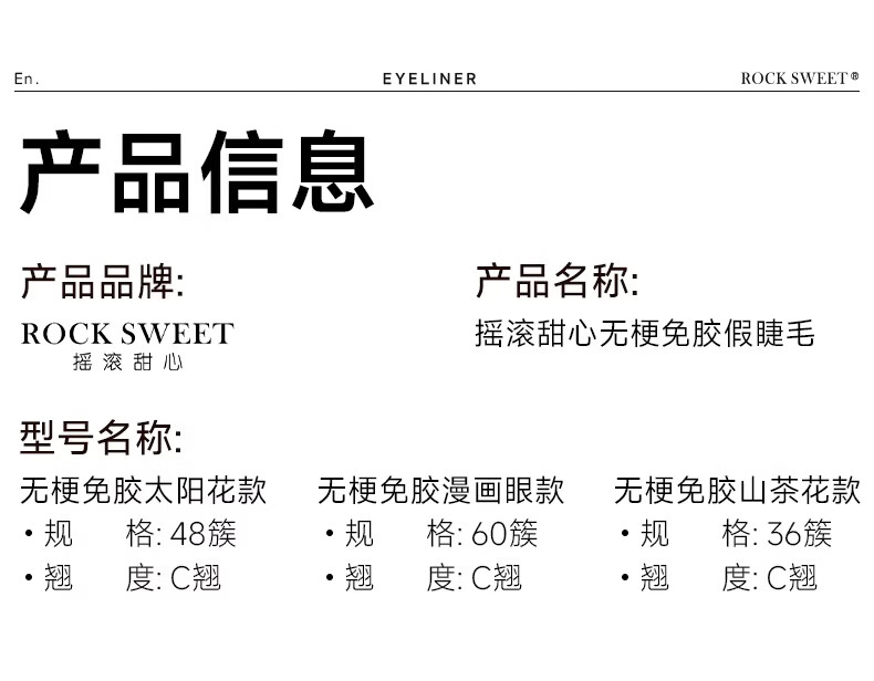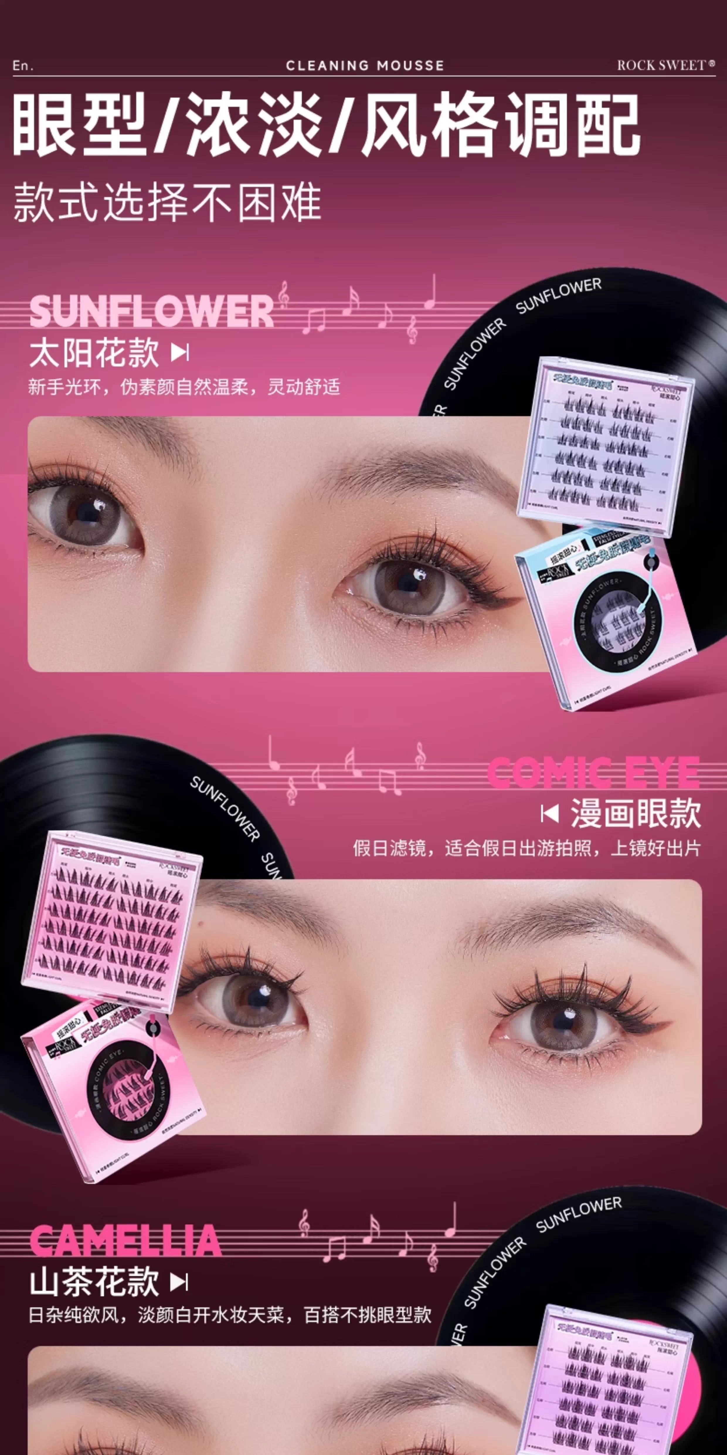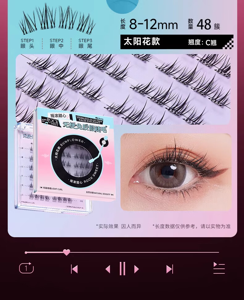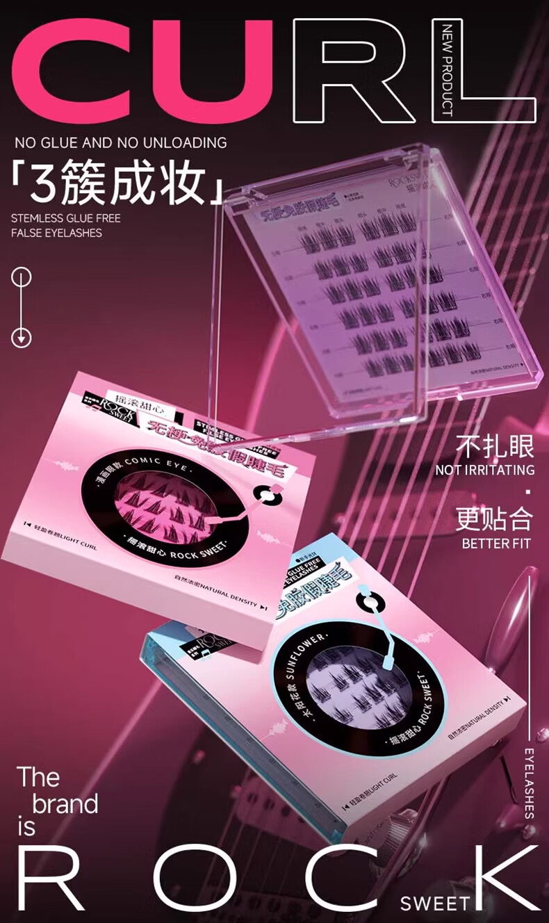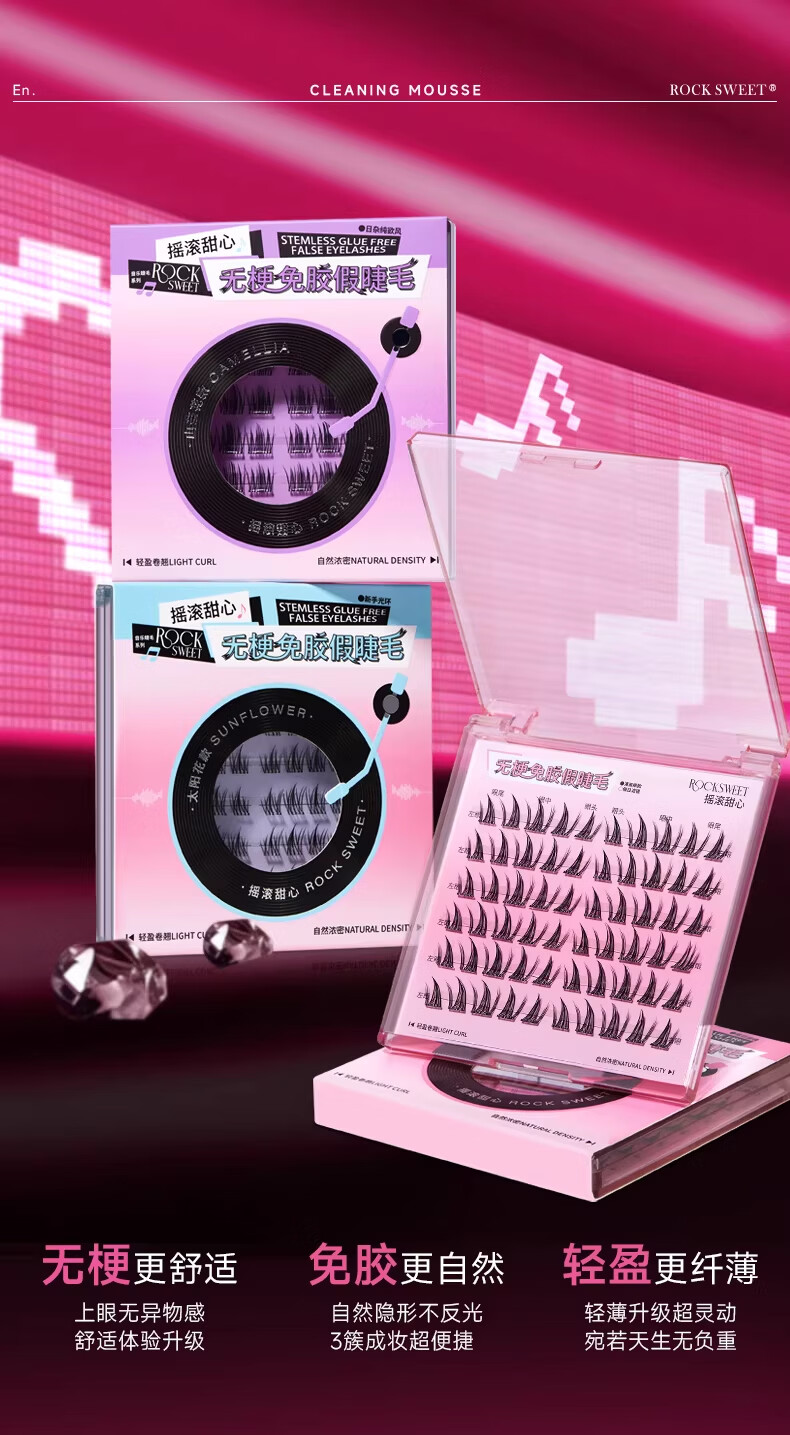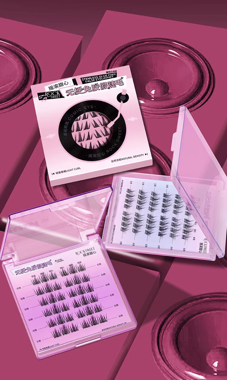 摇滚甜心 ROCK SWEET无梗款免胶假睫毛女自然仿真分段式自粘太阳花睫毛贴送女友礼物 【无梗免胶】 漫画眼-60簇/盒