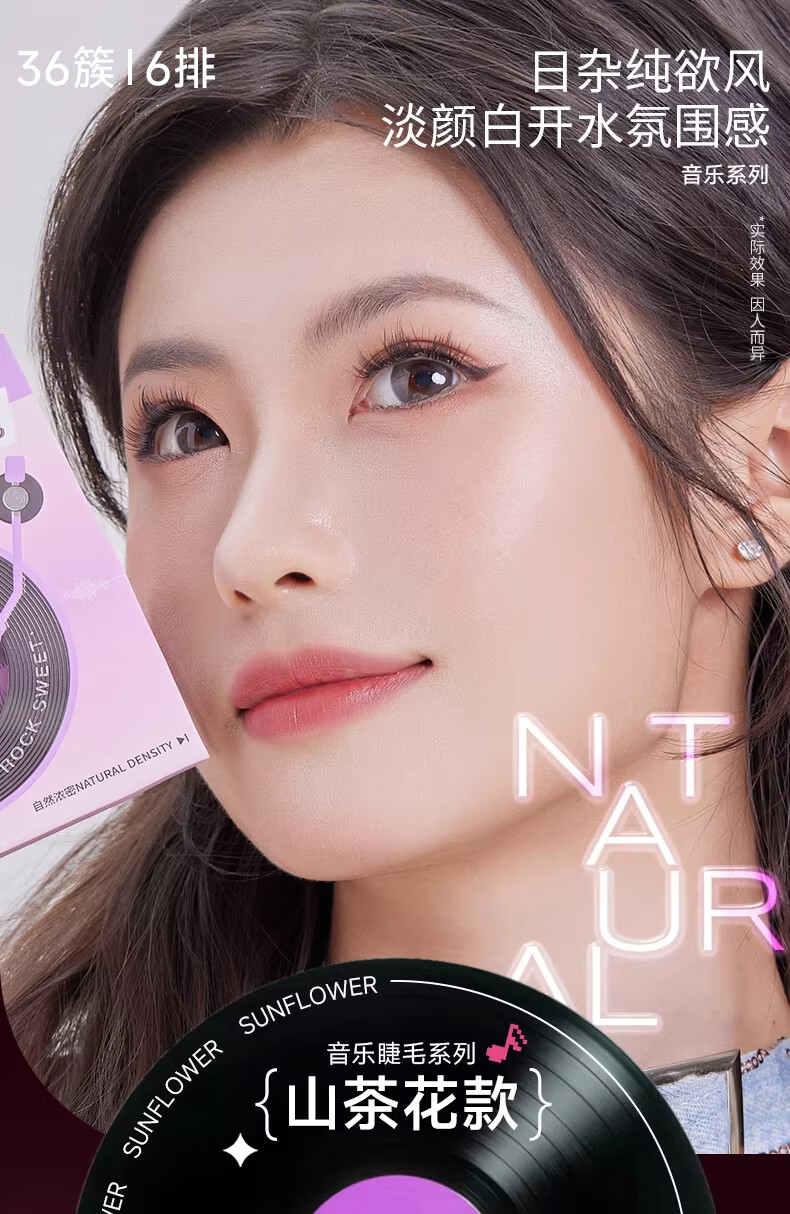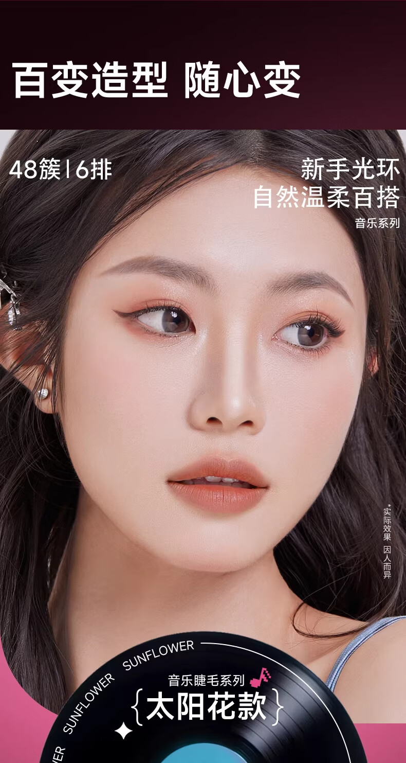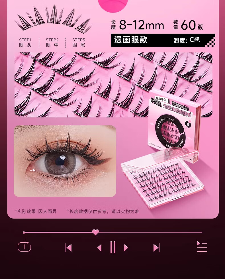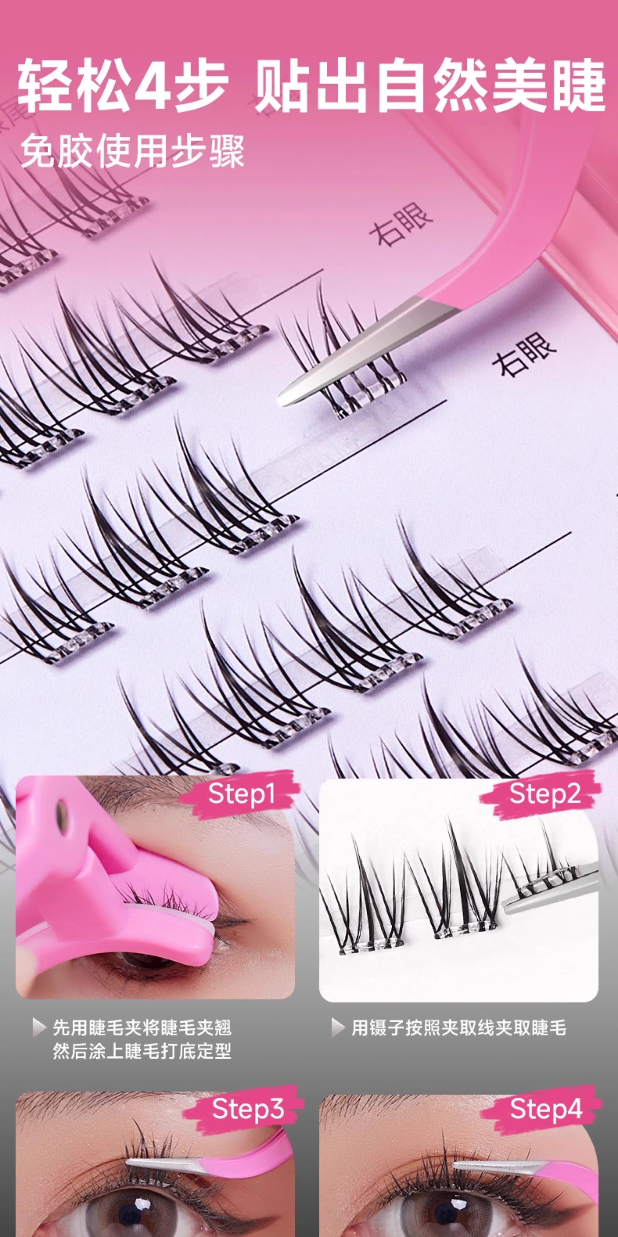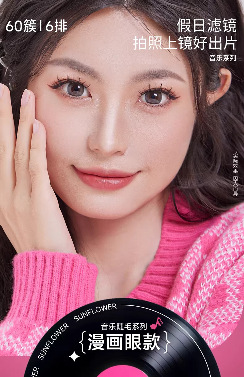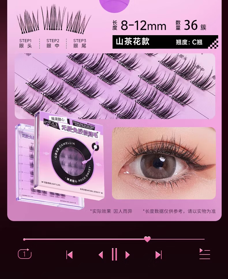 摇滚甜心 ROCK SWEET无梗款免胶假睫毛女自然仿真分段式自粘太阳花睫毛贴送女友礼物 【无梗免胶】 漫画眼-60簇/盒