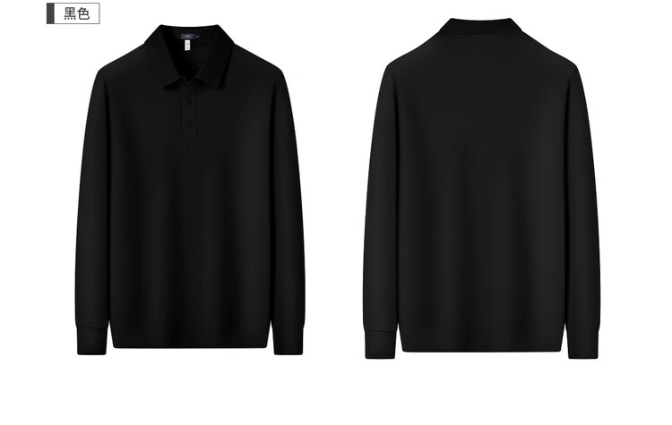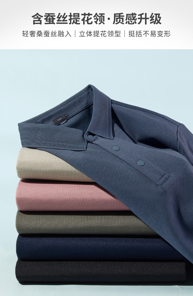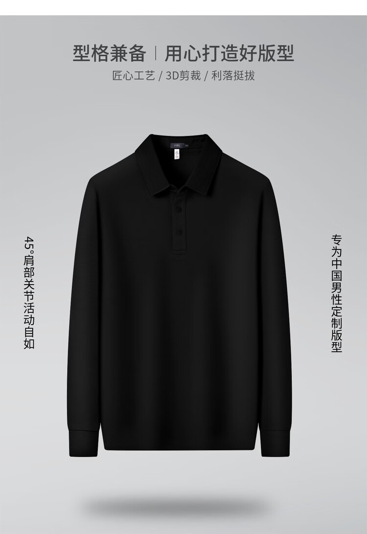 杉杉(FIRS)【含桑蚕丝】春季T恤舒适定型提花领亲肤百搭透气长袖男士Polo衫 黑色 M 170/88A