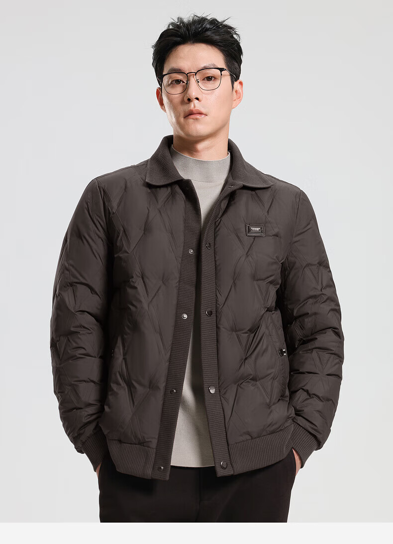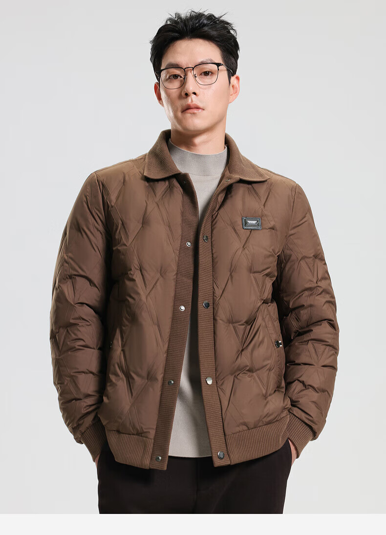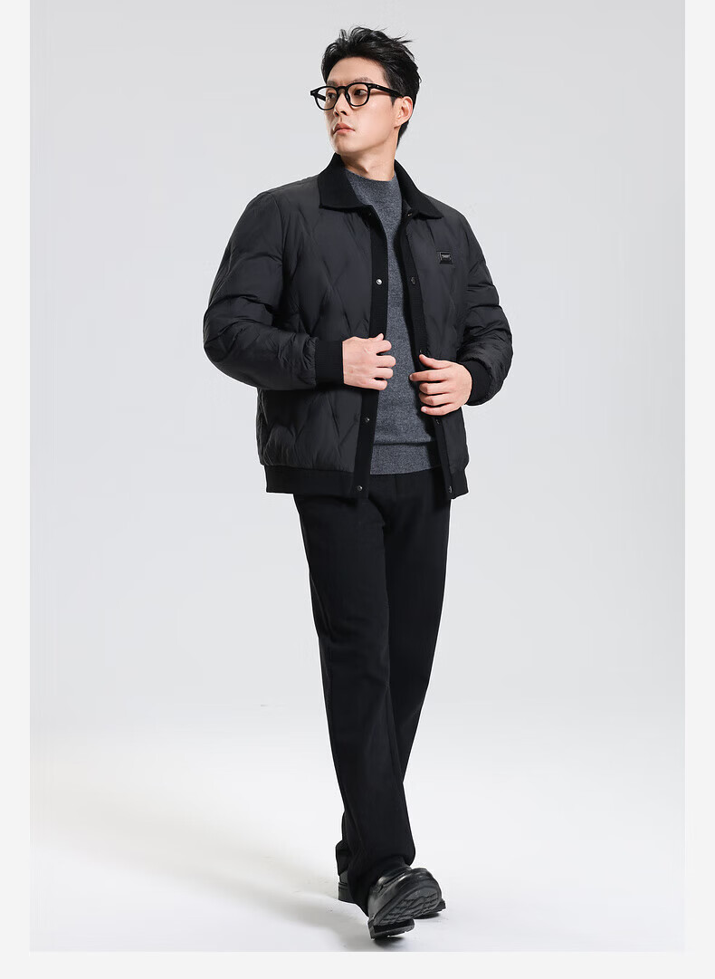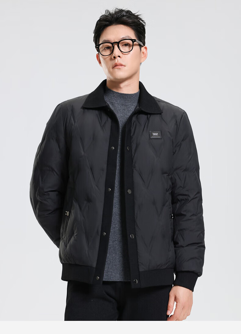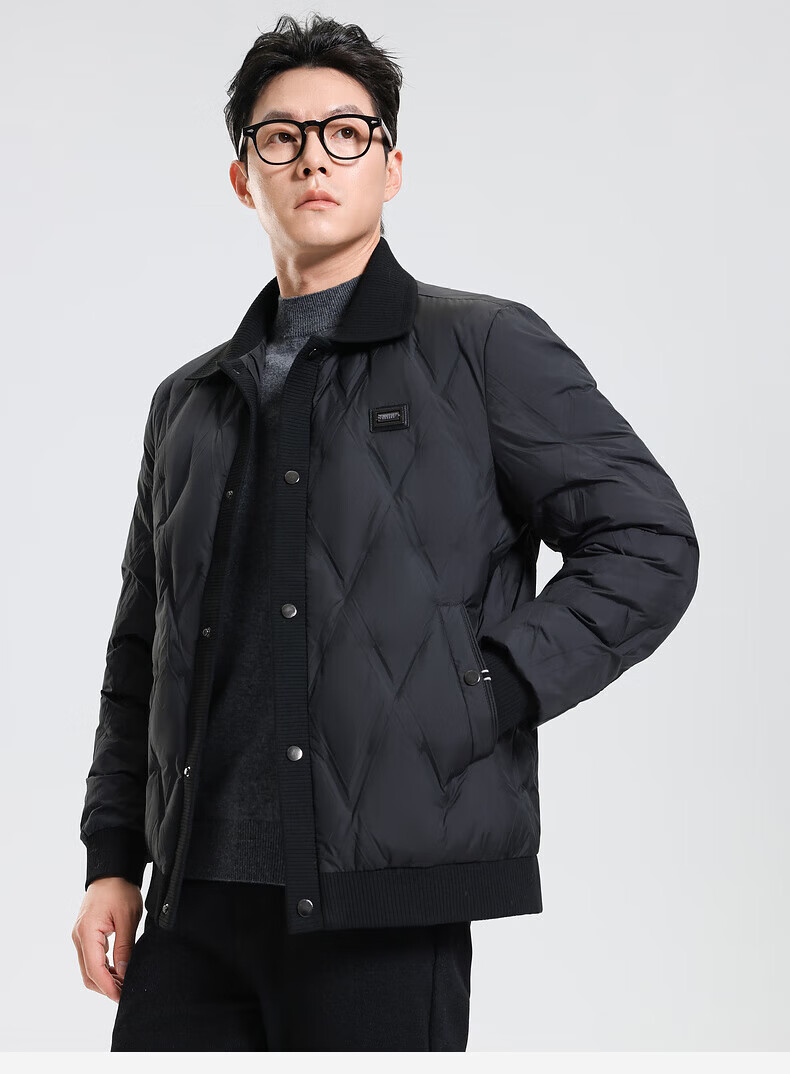 SHANSHAN羽绒服男秋冬季翻领加厚日常休闲保暖鸭绒短款舒适外套 黑色 M /170