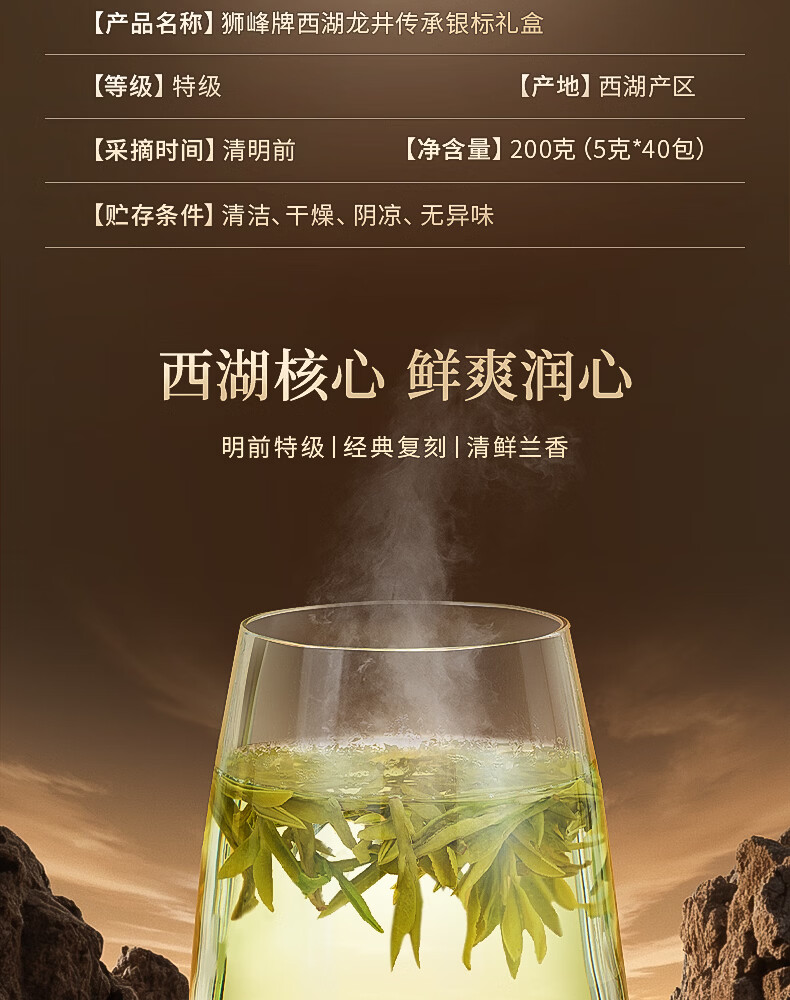 狮峰2026新茶预售明前特级西湖龙井茶叶150g+50g组合装绿茶春茶自己喝