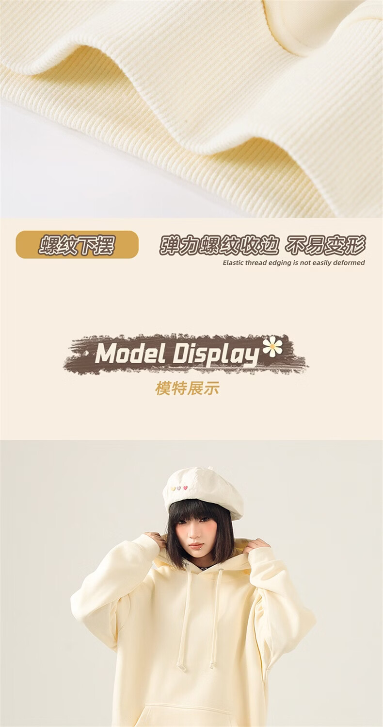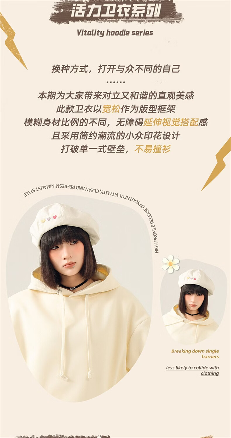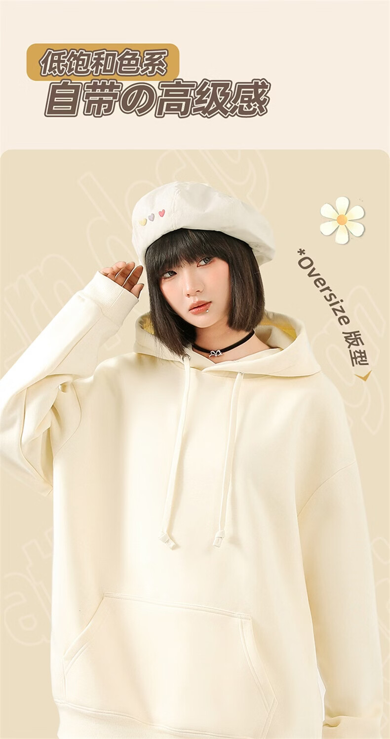 真维斯(Jeanswest)连帽卫衣女2026新款爆款春秋冬季加绒加厚上衣设计感帽衫宽松外套 米色 奇妙流星 M