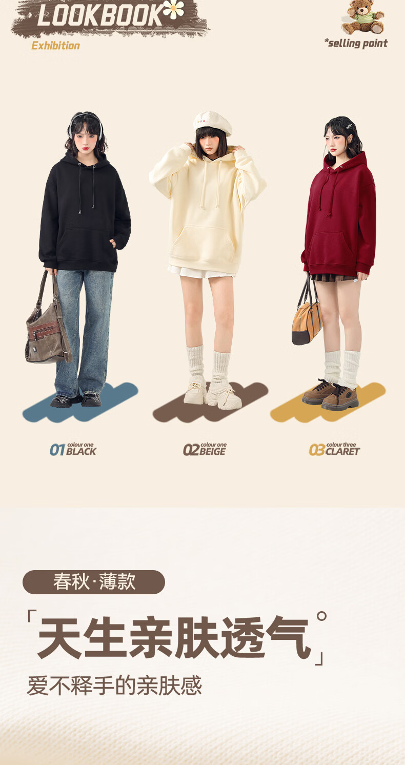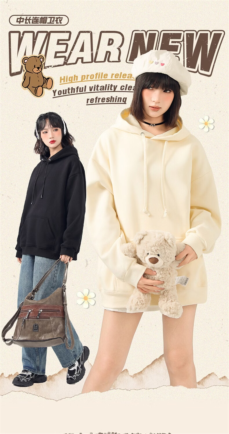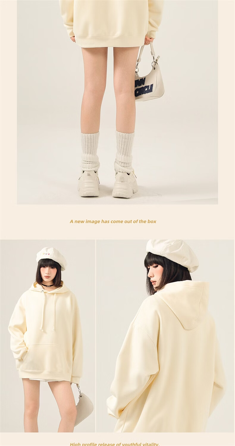 真维斯(Jeanswest)连帽卫衣女2026新款爆款春秋冬季加绒加厚上衣设计感帽衫宽松外套 米色 奇妙流星 M