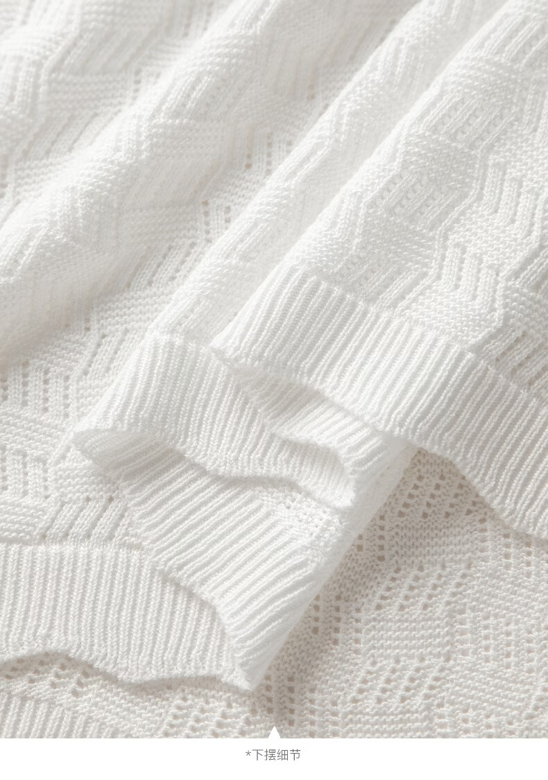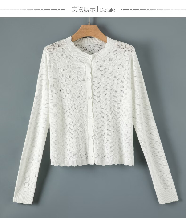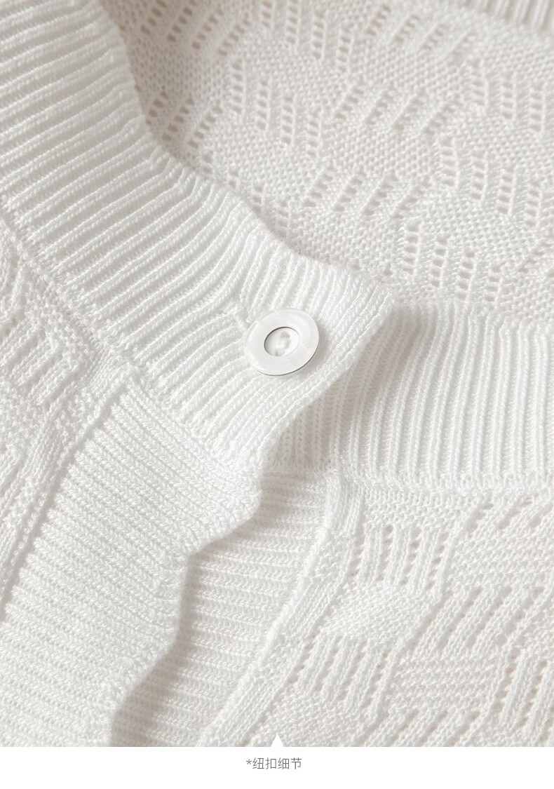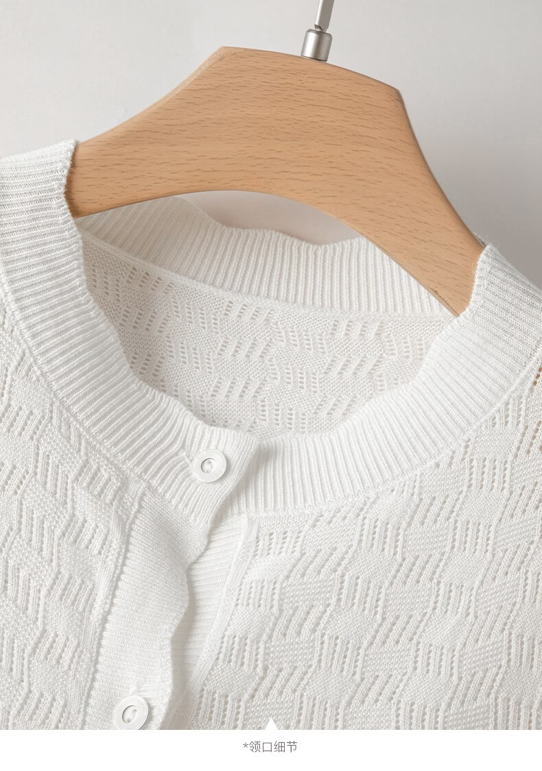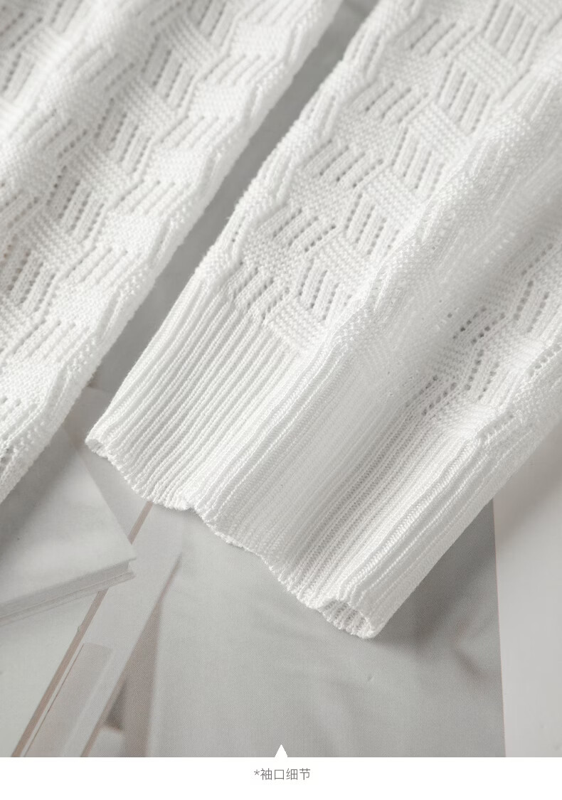 晚白【专享】2026春款经典圆领大码开衫时尚镂空提花舒适针织衫女 米白色 L