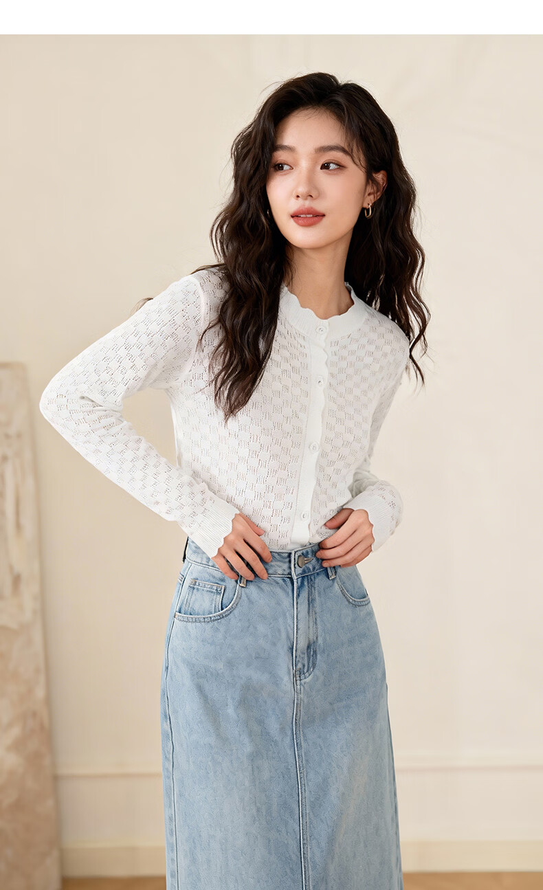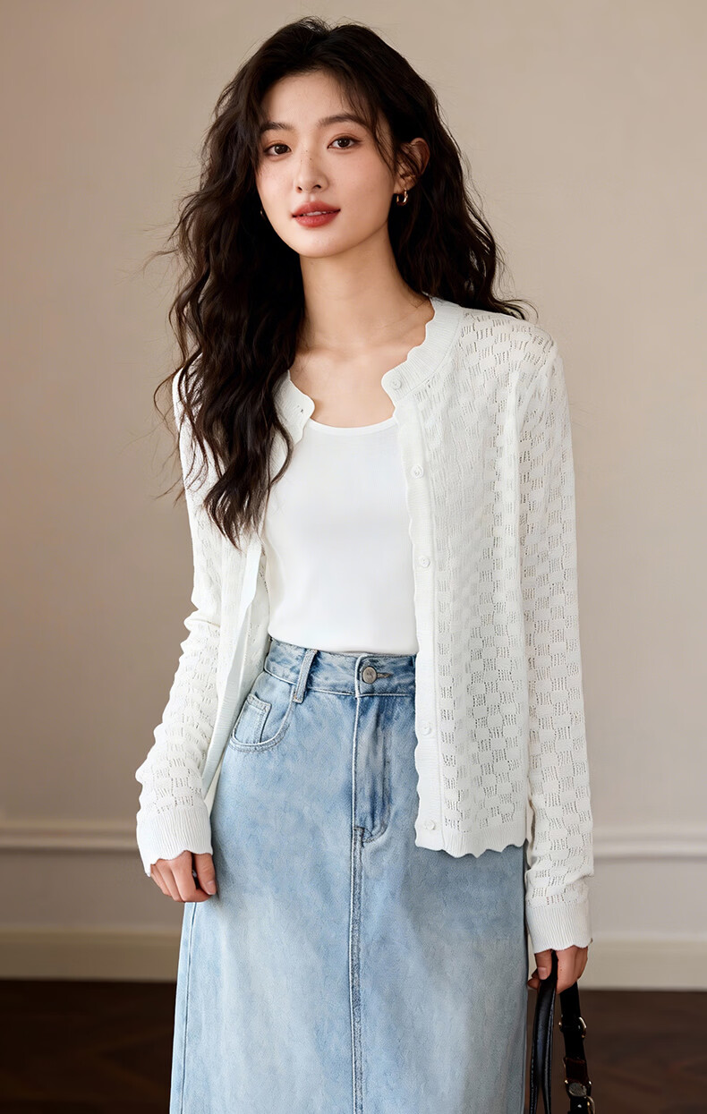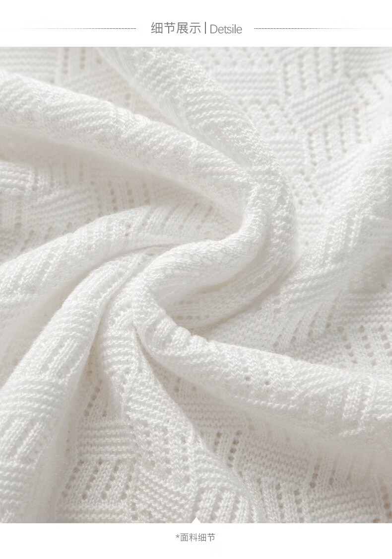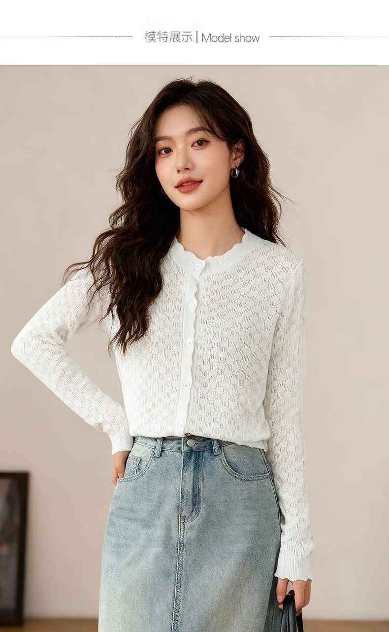 晚白【专享】2026春款经典圆领大码开衫时尚镂空提花舒适针织衫女 米白色 L