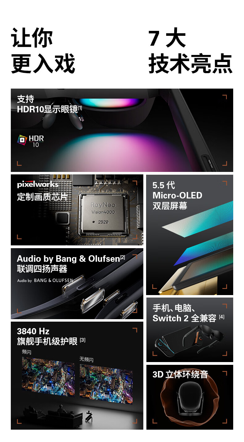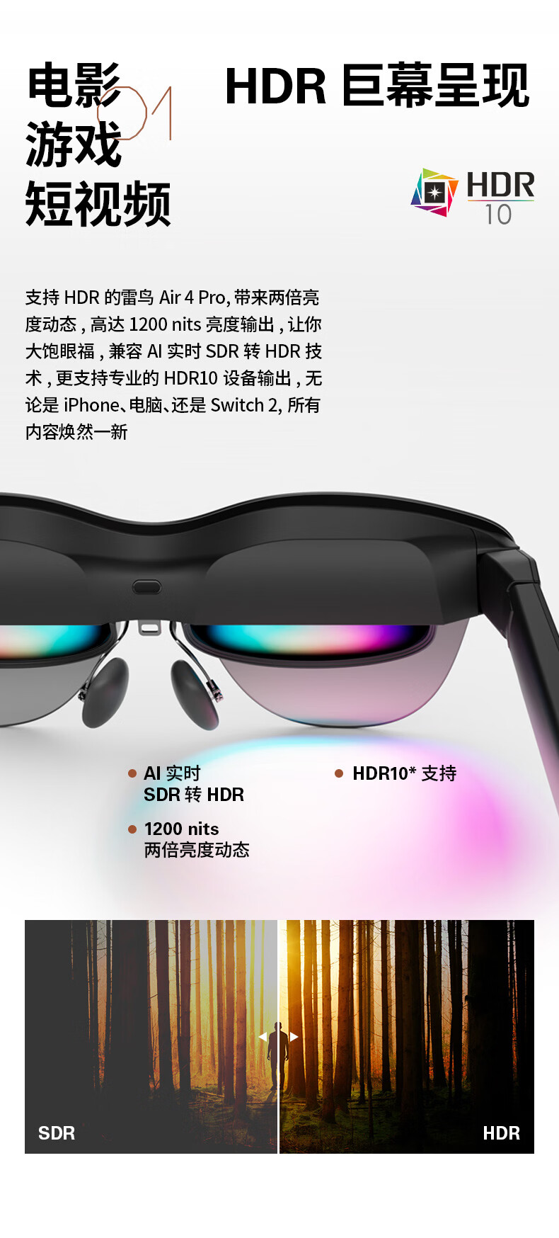 雷鸟【支持HDR10】Air4 pro智能AR眼镜 智能眼镜 高清巨幕观影眼镜 便携眼镜 非VRAI眼镜