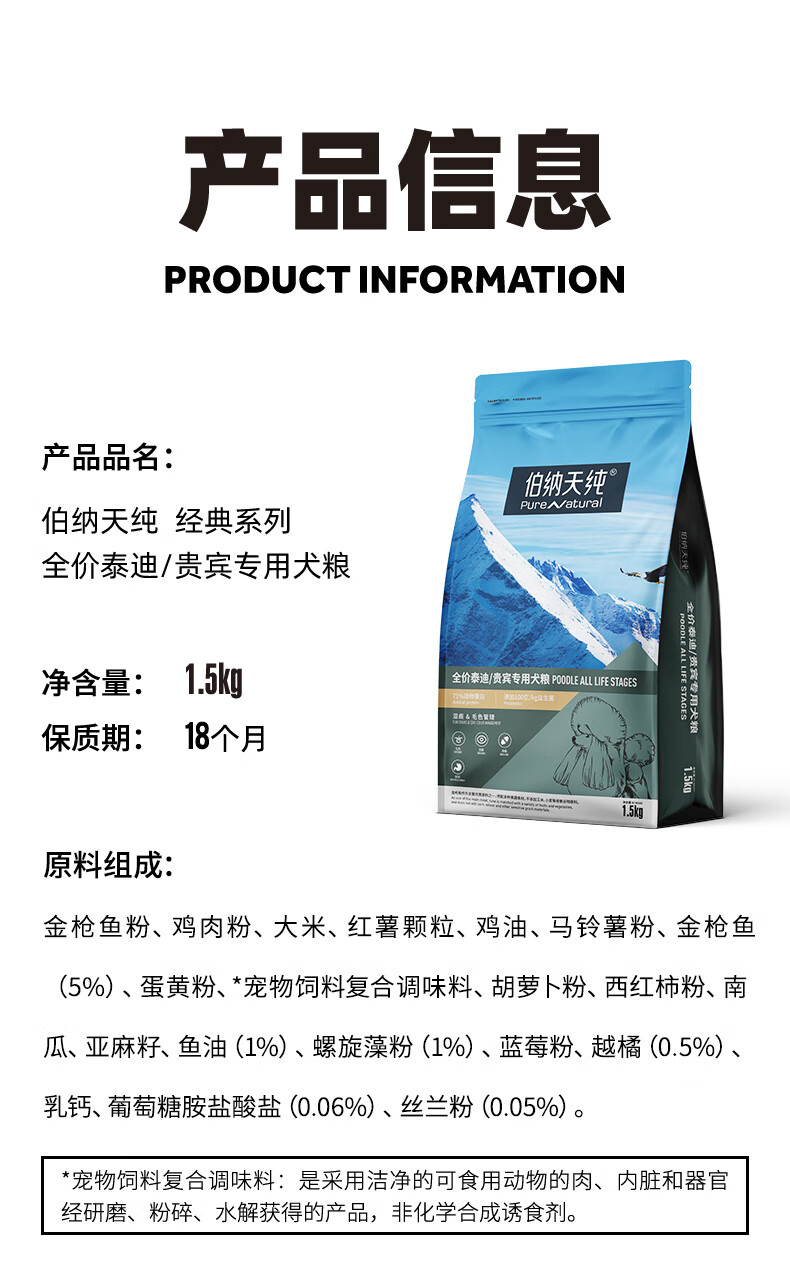 伯纳天纯狗粮经典 泰迪贵宾成犬幼犬通用犬粮1.5kg/3斤