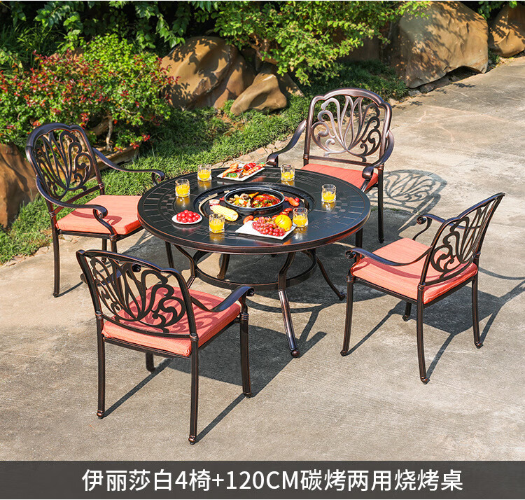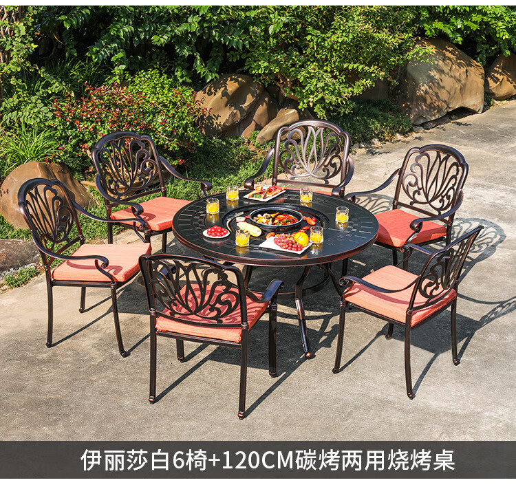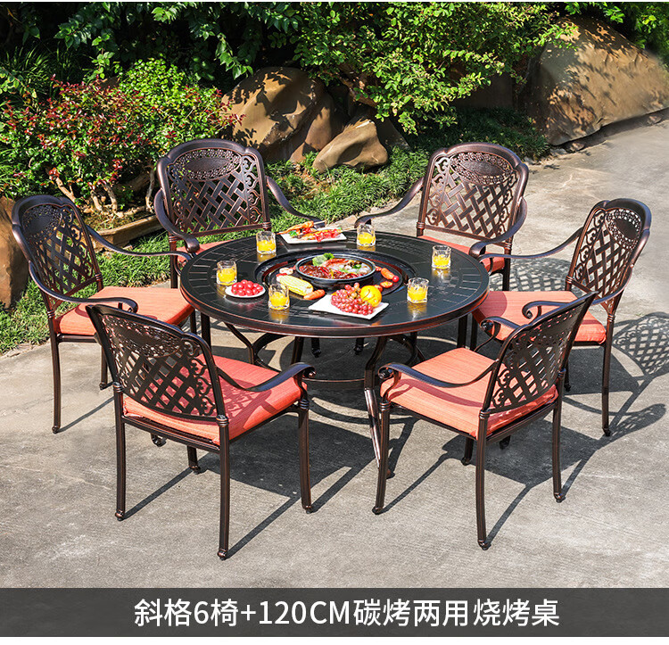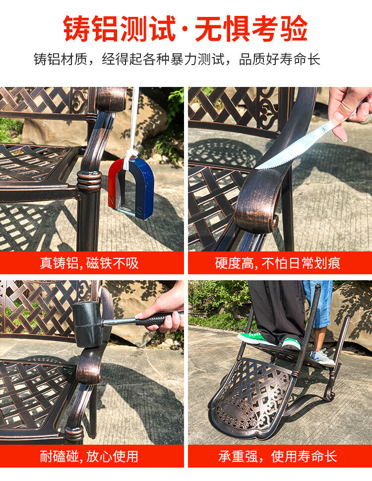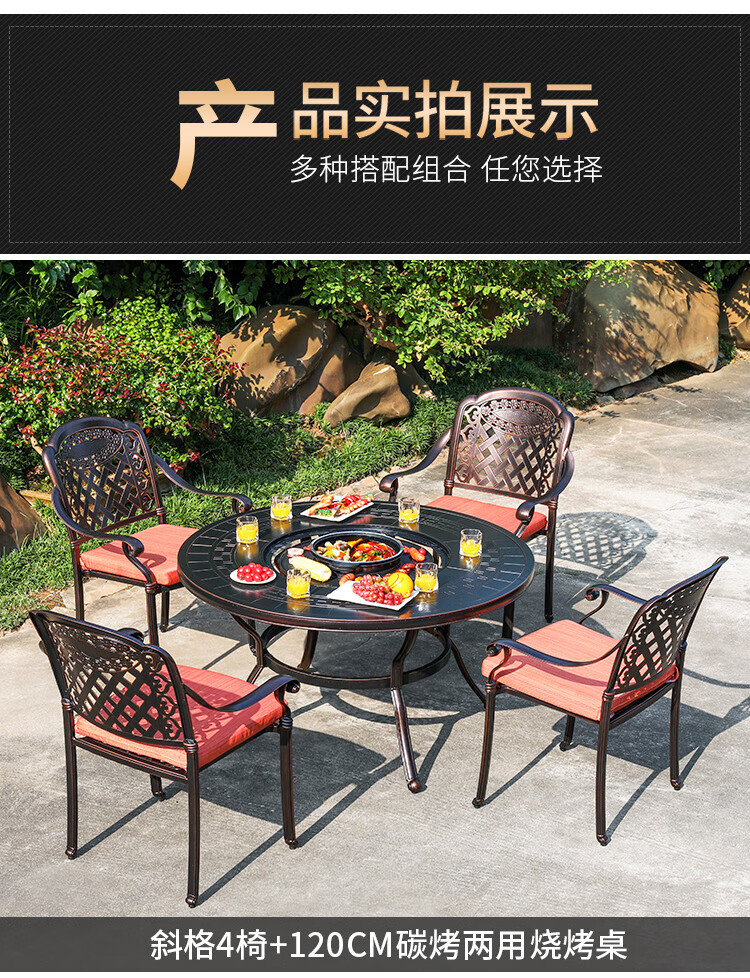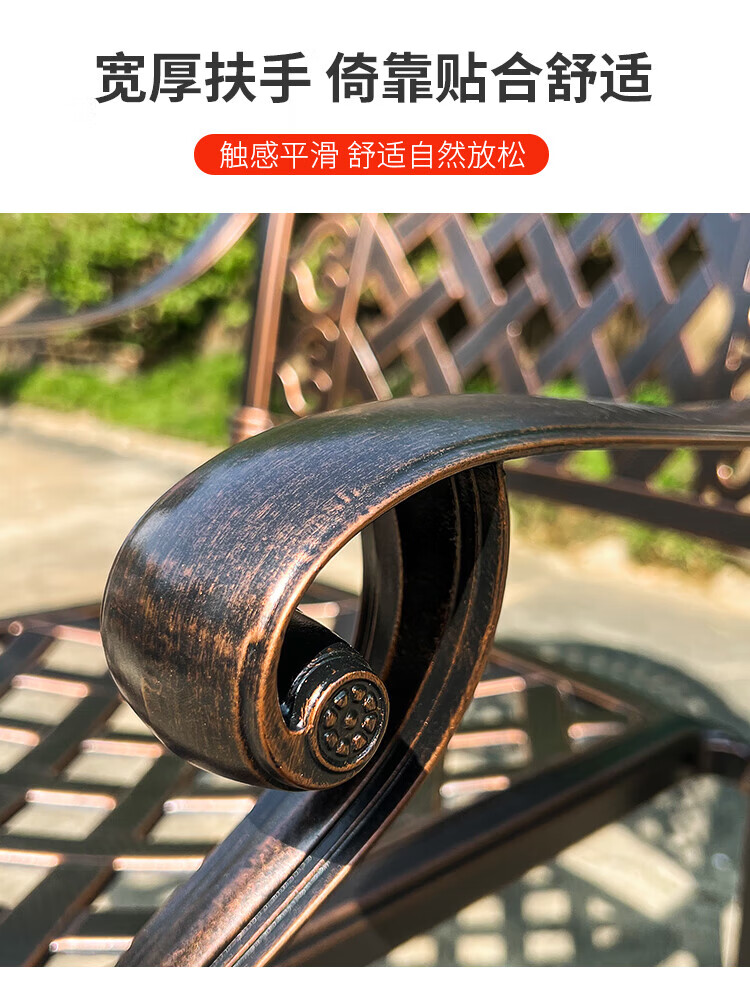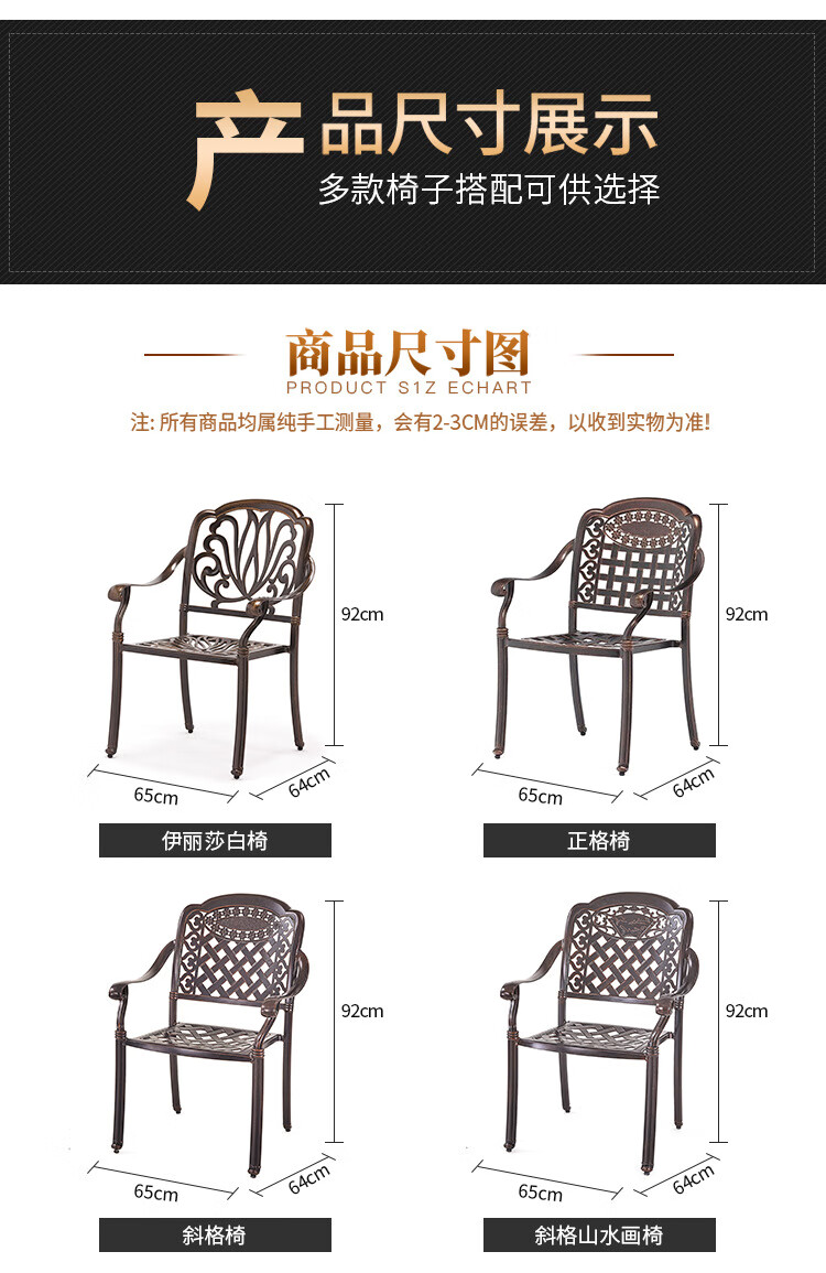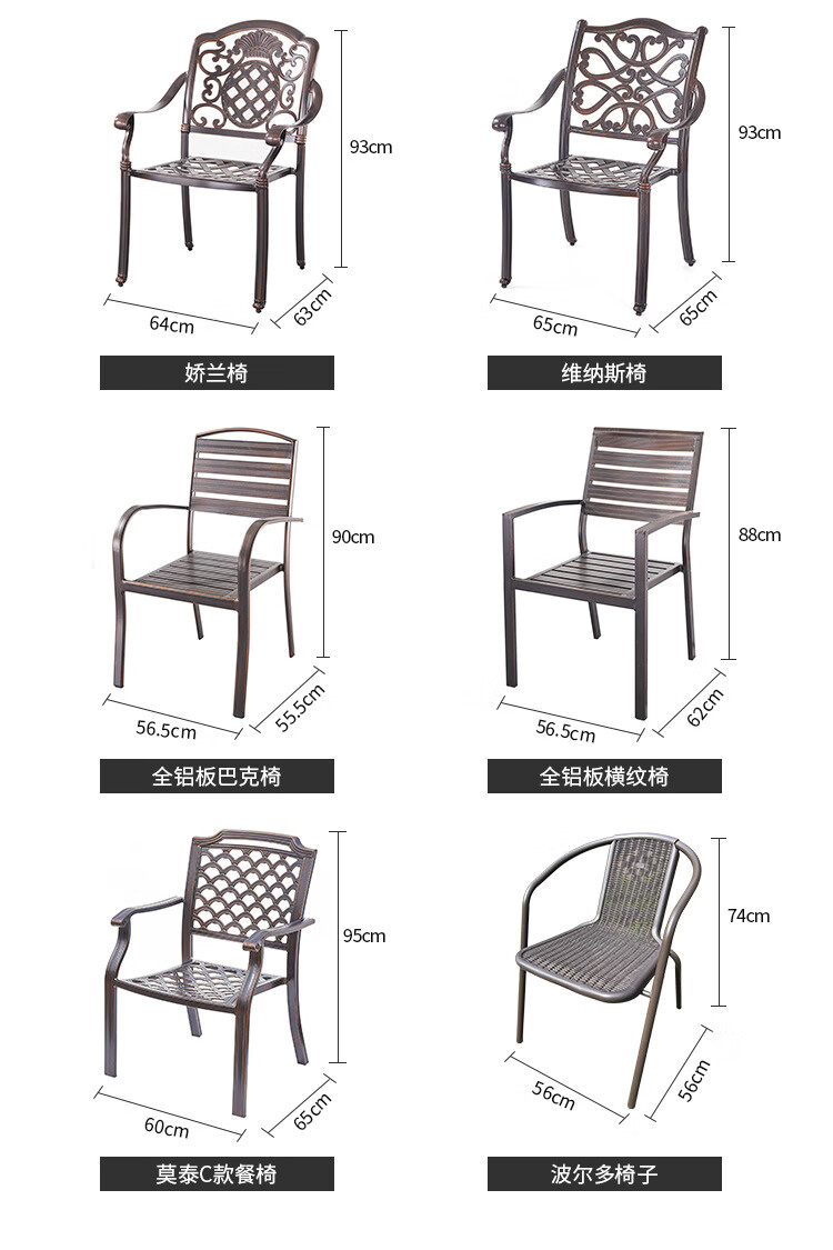 gosoo户外桌椅庭院别墅阳台休闲椅子围炉煮茶餐桌椅铸铝雕刻斜格椅