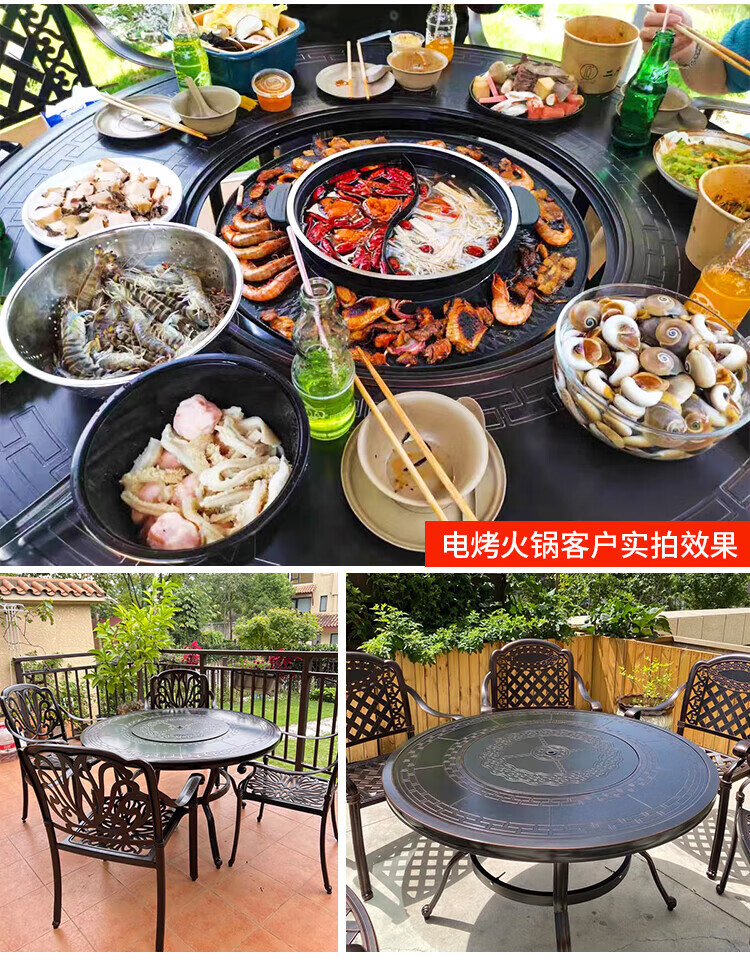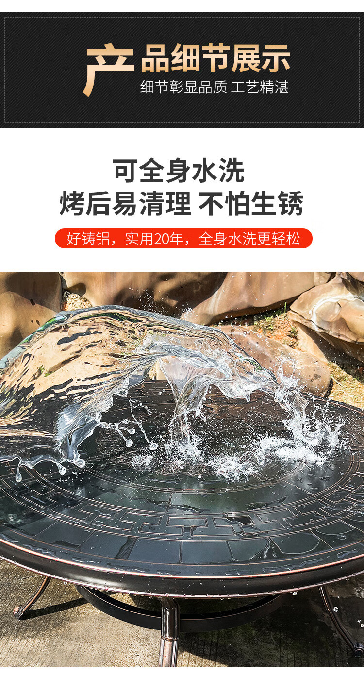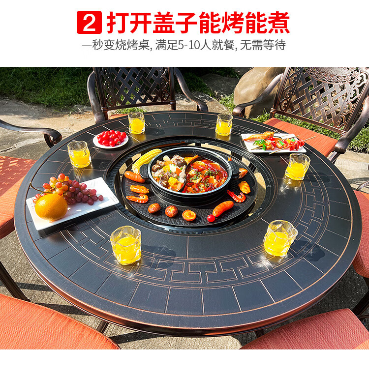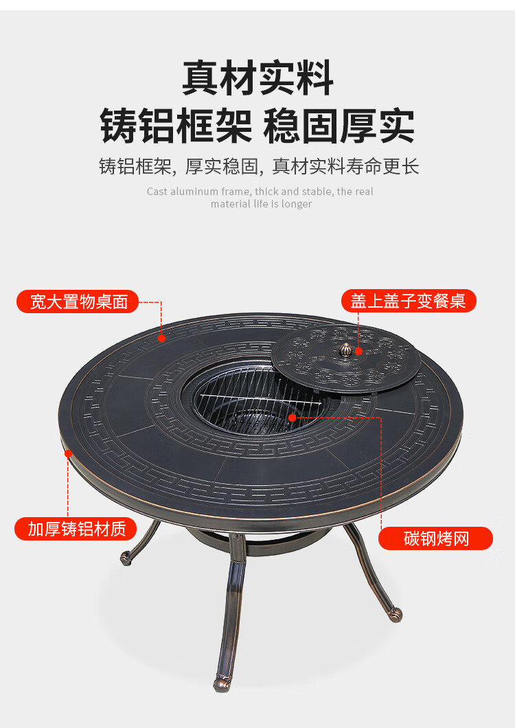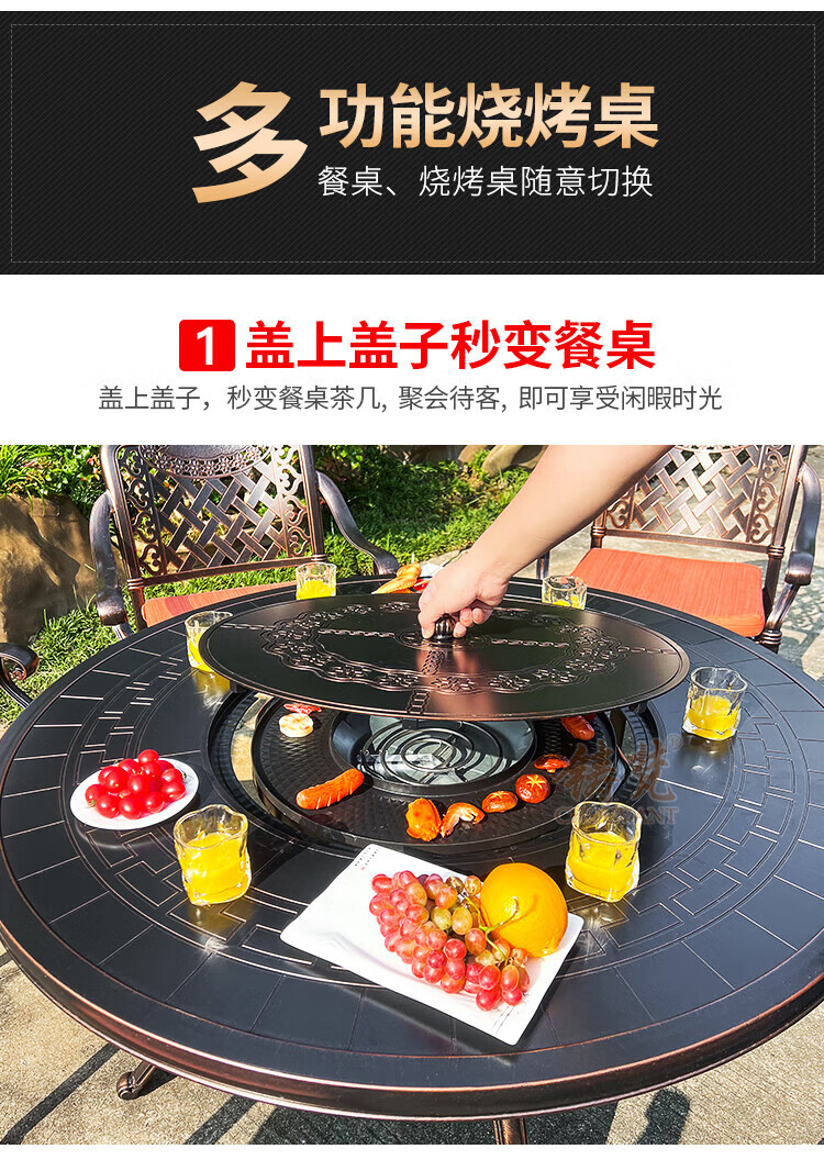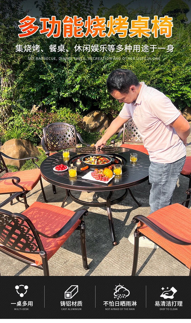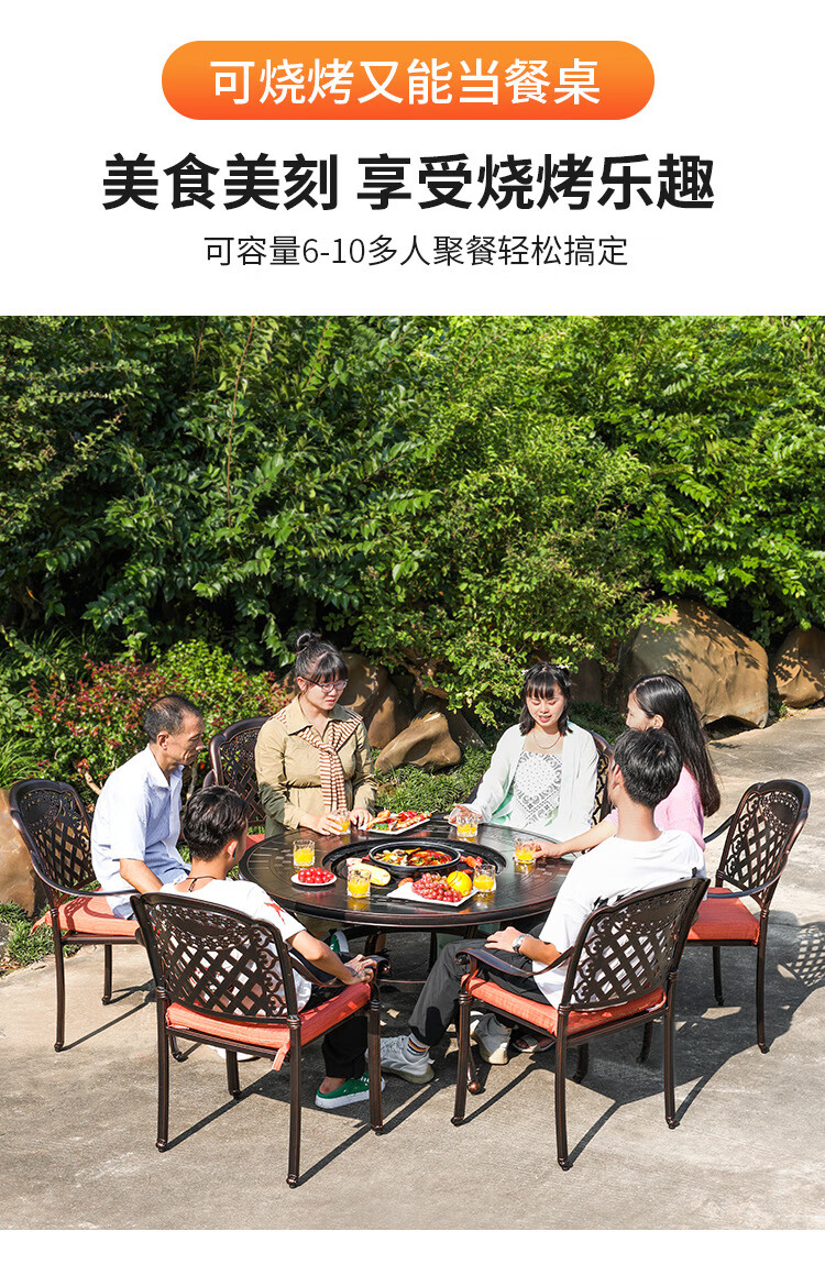 gosoo户外桌椅庭院别墅阳台休闲椅子围炉煮茶餐桌椅铸铝雕刻斜格椅