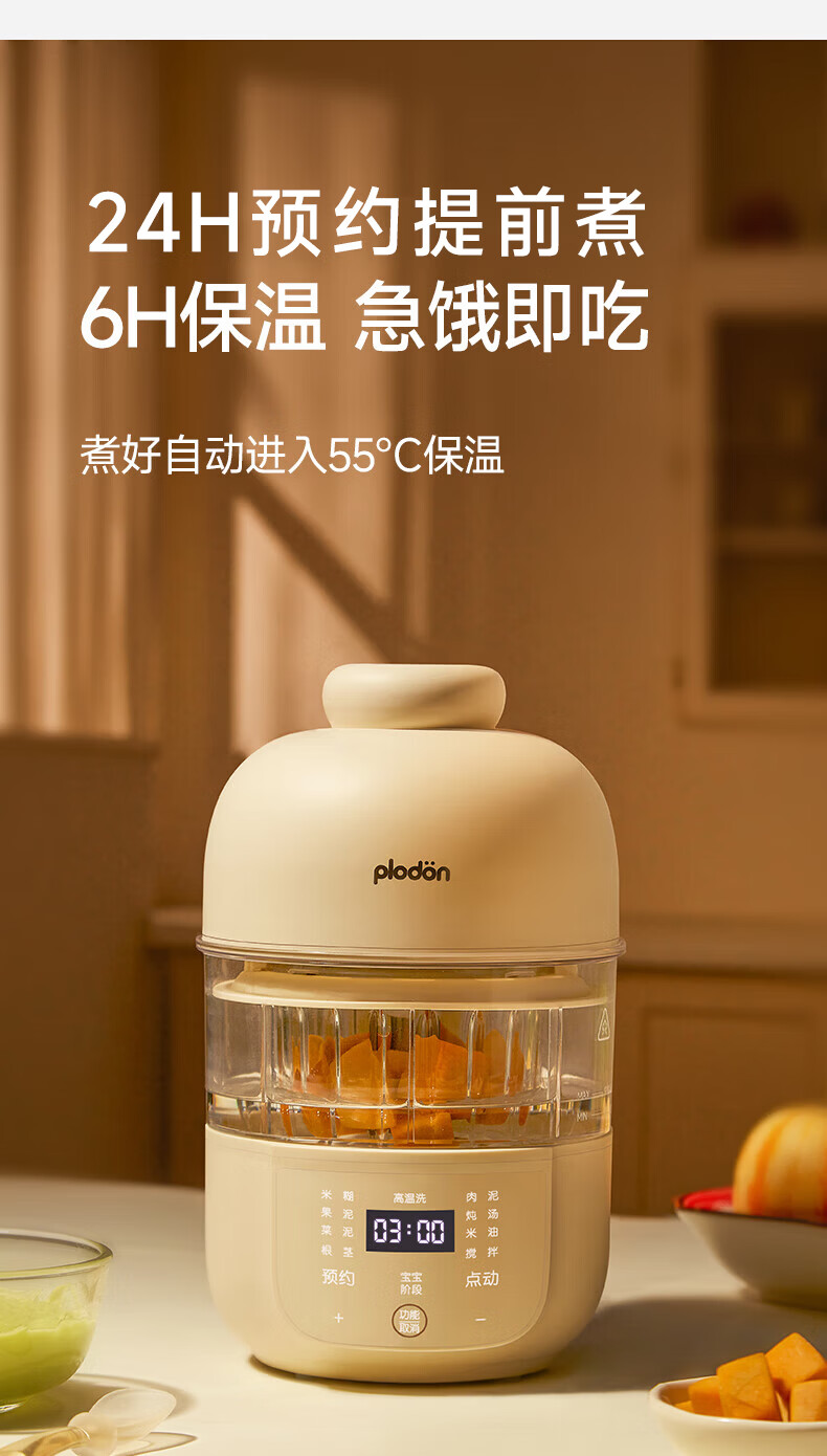 浦利顿(PLODON)婴儿蒸煮炖搅打一体多功能辅食料理机 5段分月龄辅食机 双杯双刀